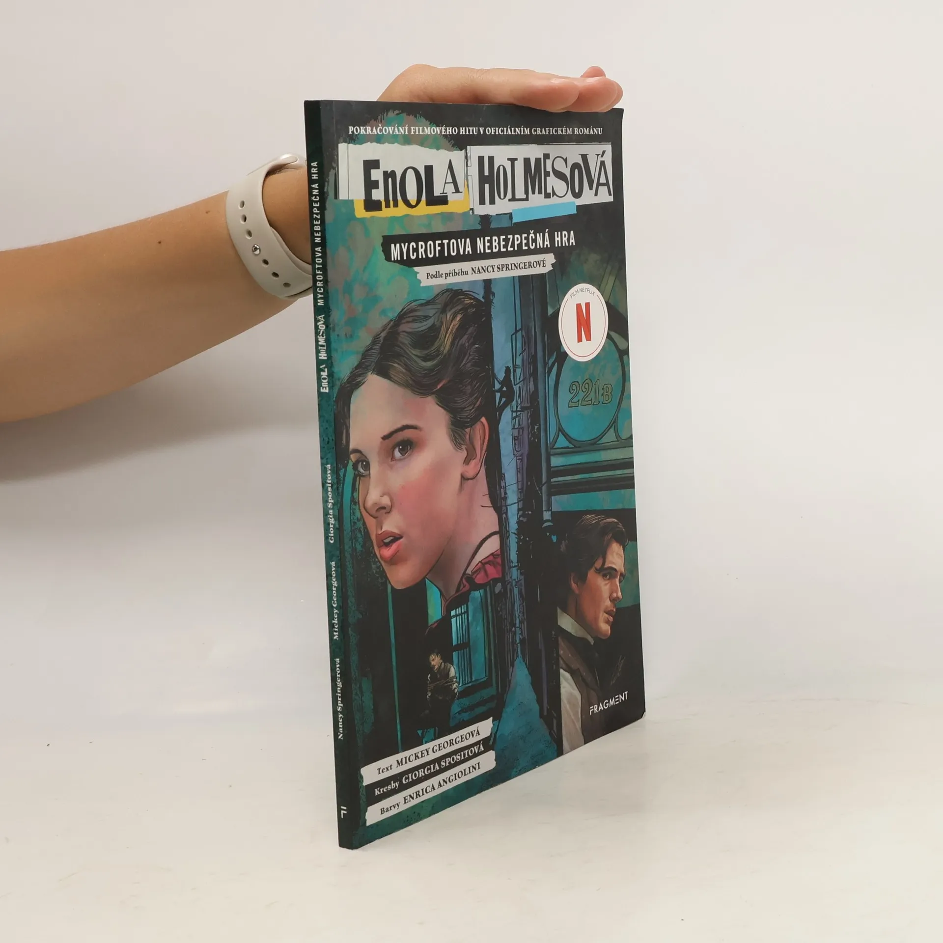 Grafický román na motivy oblíbených filmů z Netflixu a úspěšné knižní série. Enola Holmesová řeší další případ! Do pátrání se pouští poté, co tajemná skupina anarchistů unese jejího bratra Mycrofta. Doufá, že ho zachrání a zároveň získá zpět něco, co jí vzal. S pomocí lorda Tewkesburyho a pouličního poslíčka jménem Shag začne rozplétat síť záhad, která vede až do Scotland Yardu i hluboko do londýnského podzemí. Podaří se jí odhalit pravdu a překazit nekalé plány anarchistů, které ohrožují nejen Mycrofta, ale i celé město?