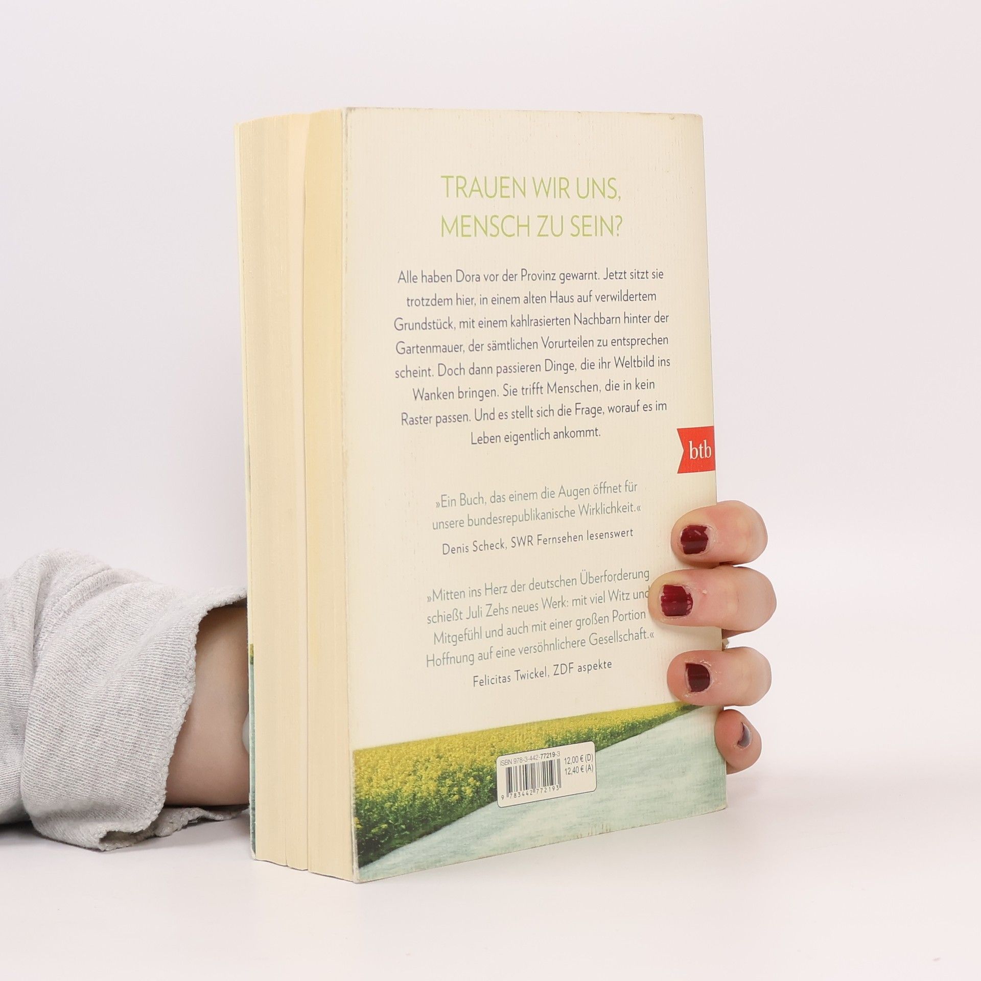 Trauen wir uns, Mensch zu sein? Dora ist mit ihrer kleinen Hündin aufs Land gezogen. Sie musste dringend raus aus der Stadt, auch wenn sie nicht genau weiß, wovor sie auf der Flucht ist. Großstadt, Lockdown, stressiger Job, ein übereifriger Freund, dazu Donald Trump, Brexit und Rechtspopulismus – wann ist die Welt eigentlich dermaßen durcheinandergeraten? Dass Bracken, dieses kleine Dorf im brandenburgischen Nirgendwo, nicht die ländliche Idylle ist, von der manche Städter träumen, war Dora klar. Alle haben sie vor der Provinz gewarnt. Jetzt sitzt sie trotzdem hier, in einem alten Haus auf einem verwilderten Grundstück, mit einem kahlrasierten Nachbarn hinter der Gartenmauer, der sämtlichen Vorurteilen zu entsprechen scheint. Doch dann passieren Dinge, die ihr Weltbild ins Wanken bringen. Sie trifft Menschen, die in kein Raster passen, und steht vor einer Herausforderung, die Antwort auf die große Frage verlangt, worauf es im Leben eigentlich ankommt. Juli Zehs neuer großer Roman erzählt von unserer unmittelbaren Gegenwart und den Menschen, die sie hervorbringt. Von ihren Befangenheiten, Schwächen und Ängsten. Und von ihren Stärken, die zum Vorschein kommen, wenn sie sich trauen, Mensch zu sein.
