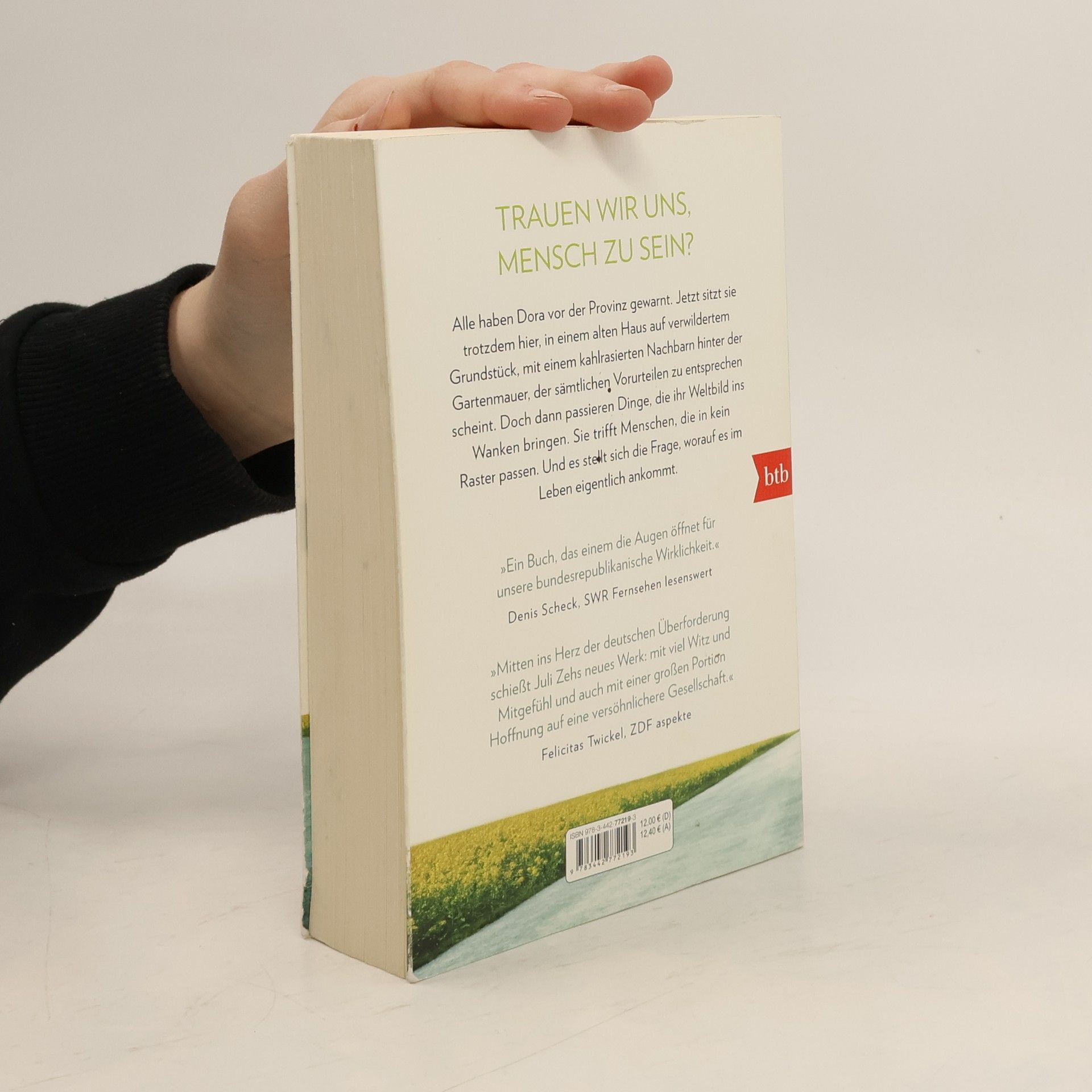 Trauen wir uns, Mensch zu sein? Dora ist mit ihrer kleinen Hündin aufs Land gezogen. Sie musste dringend raus aus der Stadt, auch wenn sie nicht genau weiß, wovor sie auf der Flucht ist. Großstadt, Lockdown, stressiger Job, ein übereifriger Freund, dazu Donald Trump, Brexit und Rechtspopulismus – wann ist die Welt eigentlich dermaßen durcheinandergeraten? Dass Bracken, dieses kleine Dorf im brandenburgischen Nirgendwo, nicht die ländliche Idylle ist, von der manche Städter träumen, war Dora klar. Alle haben sie vor der Provinz gewarnt. Jetzt sitzt sie trotzdem hier, in einem alten Haus auf einem verwilderten Grundstück, mit einem kahlrasierten Nachbarn hinter der Gartenmauer, der sämtlichen Vorurteilen zu entsprechen scheint. Doch dann passieren Dinge, die ihr Weltbild ins Wanken bringen. Sie trifft Menschen, die in kein Raster passen, und steht vor einer Herausforderung, die Antwort auf die große Frage verlangt, worauf es im Leben eigentlich ankommt. Juli Zehs neuer großer Roman erzählt von unserer unmittelbaren Gegenwart und den Menschen, die sie hervorbringt. Von ihren Befangenheiten, Schwächen und Ängsten. Und von ihren Stärken, die zum Vorschein kommen, wenn sie sich trauen, Mensch zu sein.