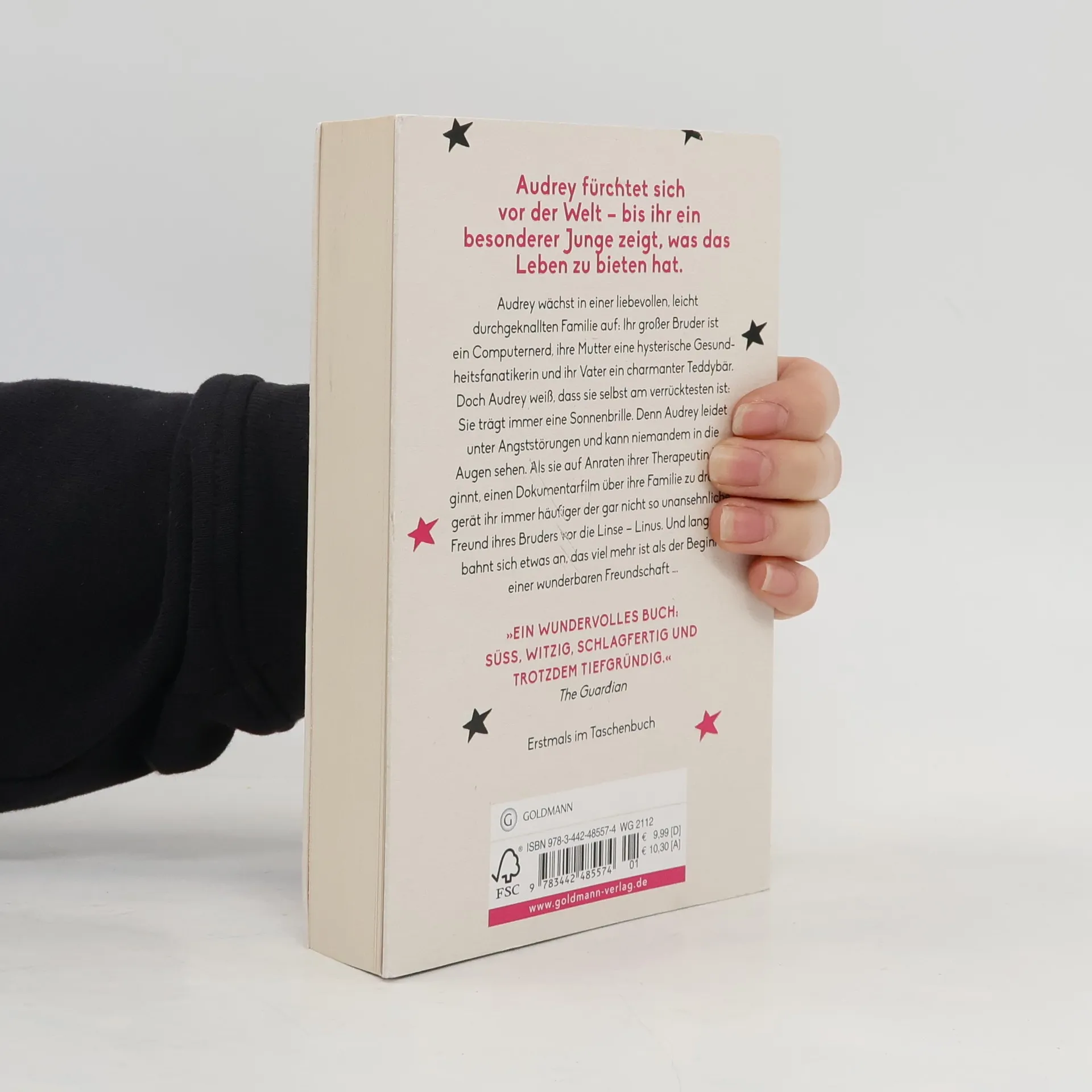 Audrey wächst in einer liebevollen, leicht durchgeknallten Familie auf: Ihr großer Bruder ist ein Computernerd, ihre Mutter eine hysterische Gesundheitsfanatikerin und ihr Vater ein charmanter Teddybär. Doch Audrey weiß, dass sie selbst am durchgeknalltesten ist – sie leidet unter Angststörungen, kann nicht mehr zur Schule gehen und niemandem in die Augen sehen, weshalb sie stets eine Sonnenbrille trägt. Als sie auf Anraten ihrer Therapeutin beginnt, einen Dokumentarfilm über ihre verrückte Familie zu drehen, gerät ihr immer häufiger der gar nicht so unansehnliche Freund ihres Bruders vor die Linse – Linus. Und langsam bahnt sich etwas an, das viel mehr ist als der Beginn einer wunderbaren Freundschaft ...