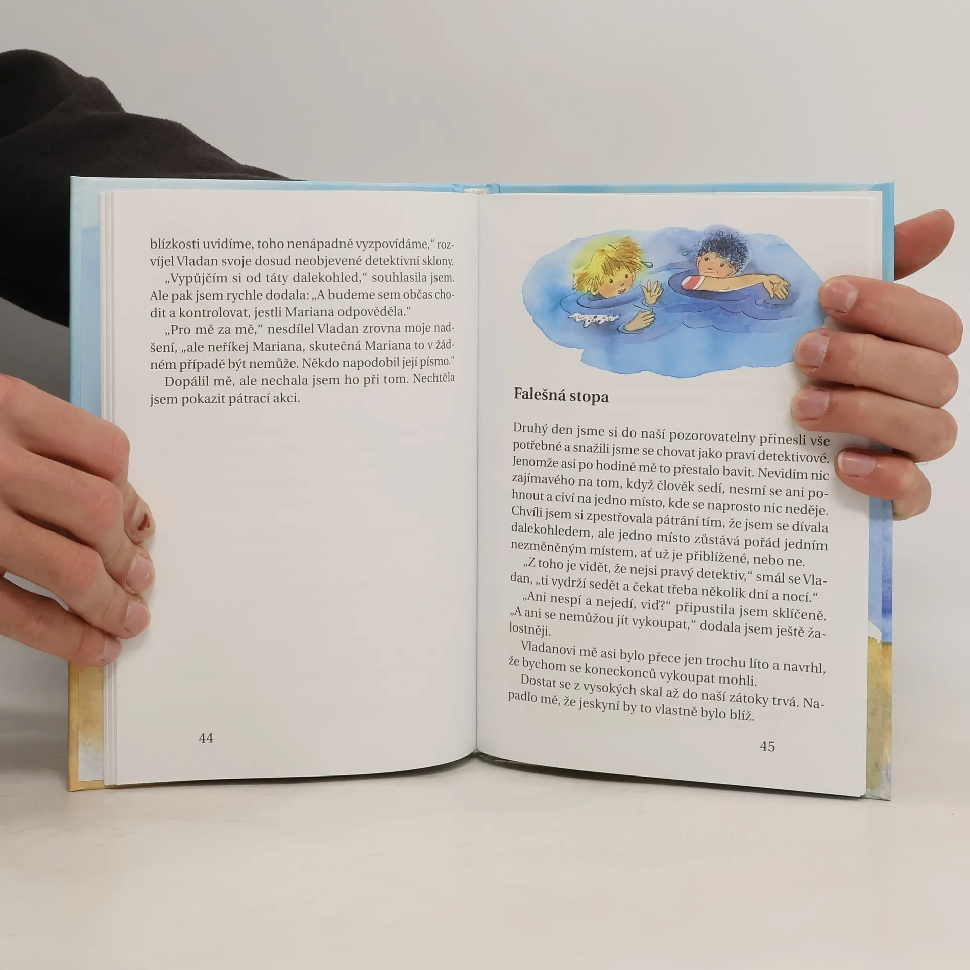 Lora jezdí s tatínkem každé prázdniny na ostrůvek do Chorvatska, protože oba milují moře. Tohle léto právě připluli a táta si při pádu ze skály poranil kotník. Lora běží do vsi pro pomoc k jejich známé Anitě a cestou potká podivuhodnou ženu – vypadá jako čarodějnice a cosi mumlá. Tatínek musí zůstat ležet, a tak má Lora dovoleno chodit na výpravy jen se starším kamarádem Vladanem, synem Anity. Lora touží prozkoumat jeskyni, kam ještě loni nesměla… Děti objeví krabici a v ní starý sešit psaný německy. Lora německy umí, protože její maminka je Němka, a tak začne nahlas číst, co se v něm píše. Zjistí, že je to válečný deník, který psala holčička na útěku. Lora a Vladan se rozhodnou vypátrat něco víc o dívce Marianě. Napínavý příběh o hledání i vzrušující příběh z deníku se nakonec nečekaně prolnou…