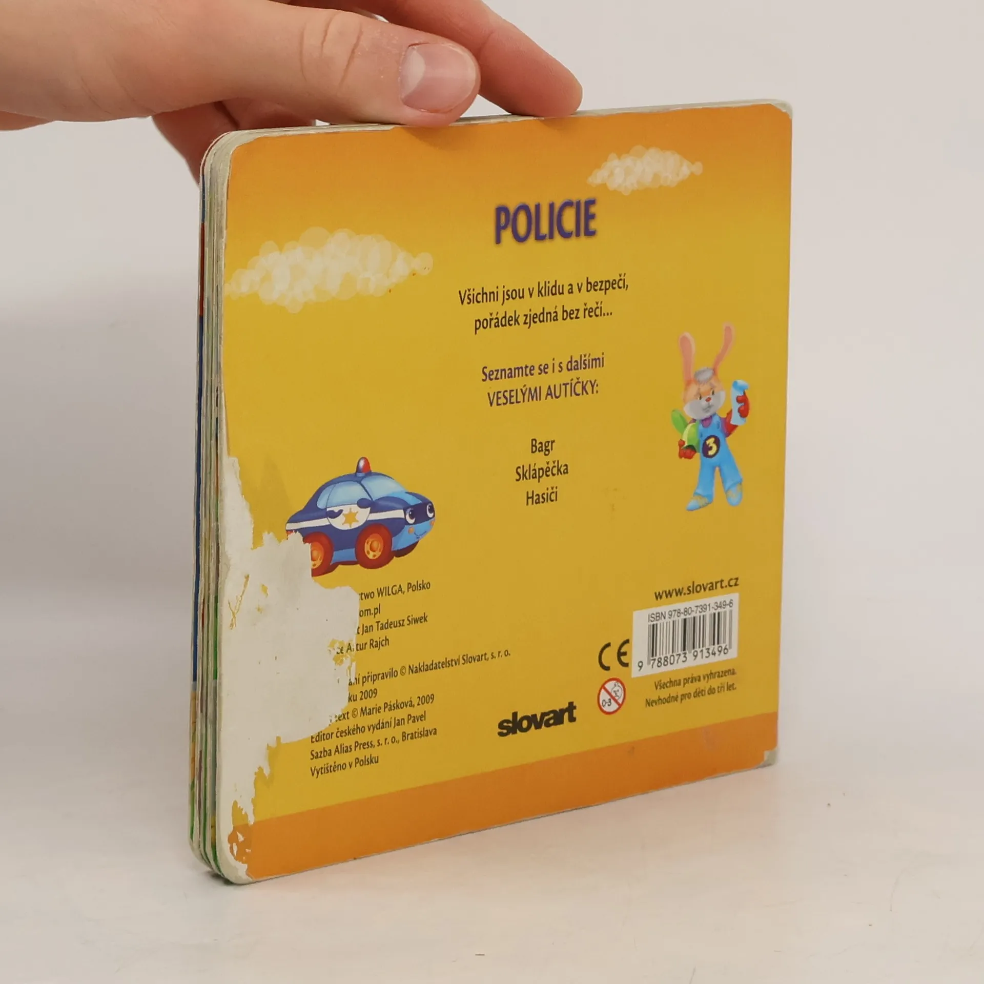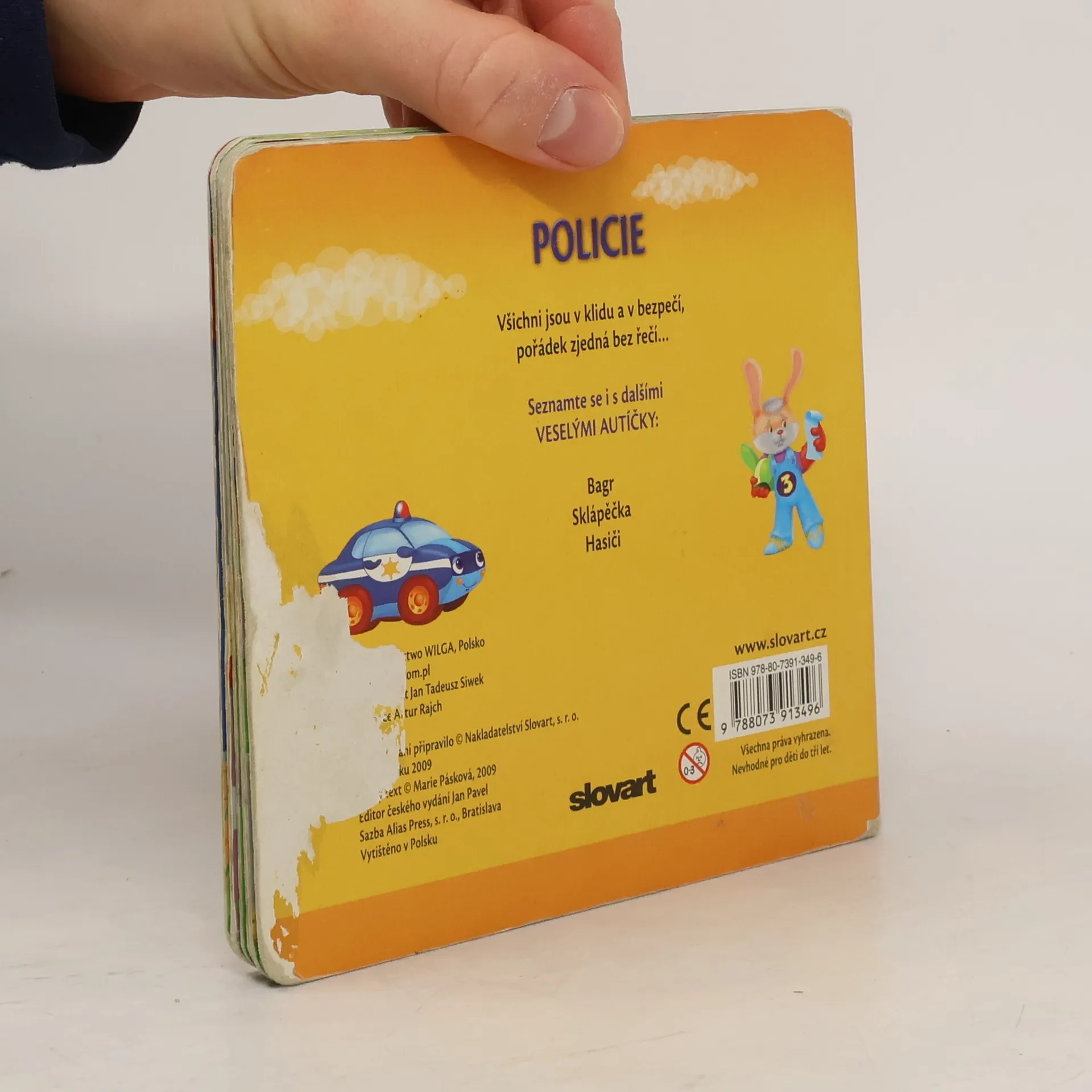 Veršované leporelo, které pomocí krátkého textu a obrázků se zvířátky seznamuje nejmenší děti s prací policie.