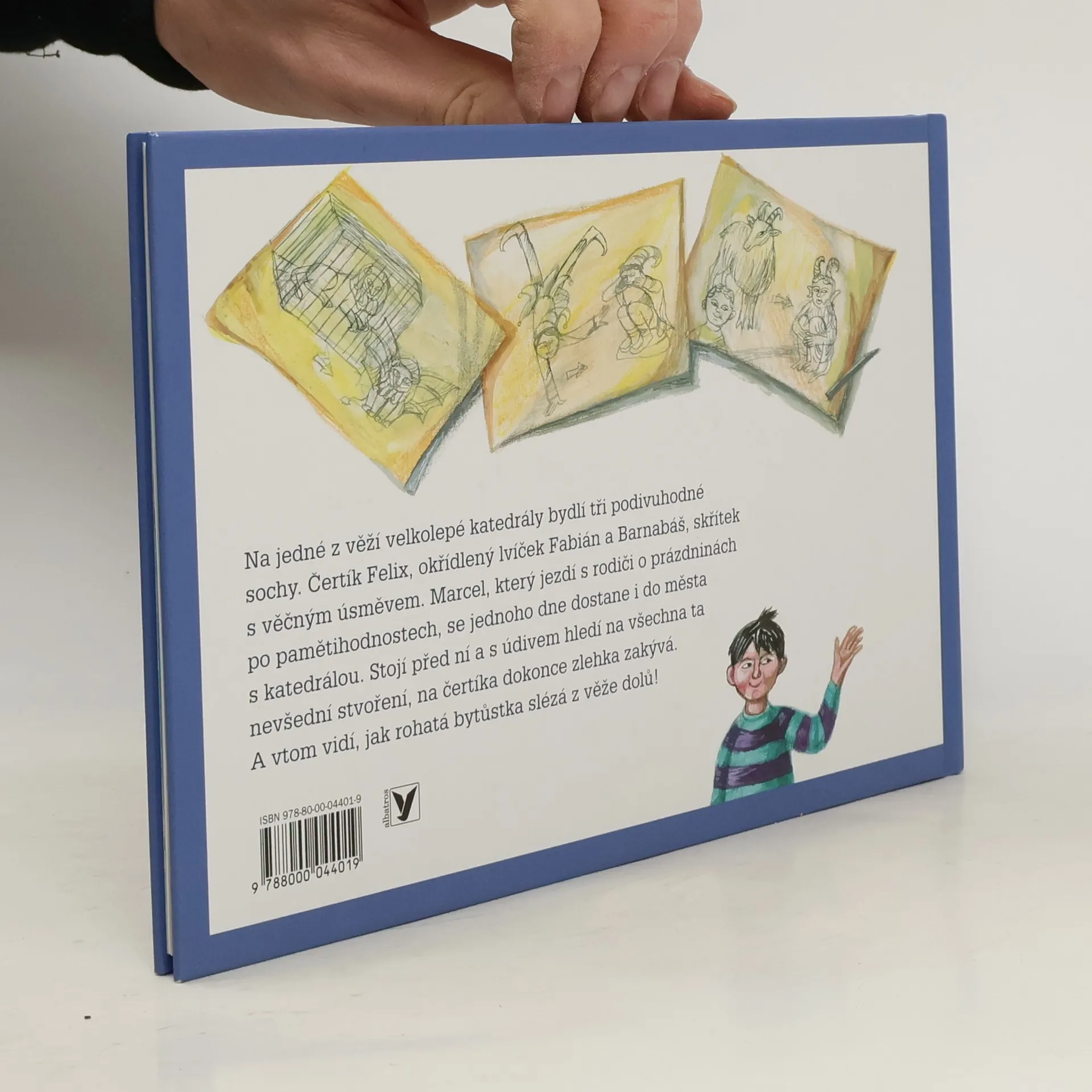 Na jedné z věží velkolepé katedrály bydlí tři podivuhodné sochy. Čertík Felix, okřídlený lvíček Fabián a Barnabáš, skřítek s věčným úsměvem. Marcel, který jezdí s rodiči o prázdninách po pamětihodnostech, se jednoho dne dostane i do města s katedrálou. Stojí před ní a s údivem hledí na všechna ta nevšední stvoření, na čertíka dokonce zlehka zakývá. A vtom vidí, jak rohatá bytůstka slézá z věže dolů! Obrázková kniha pro malé i velké.