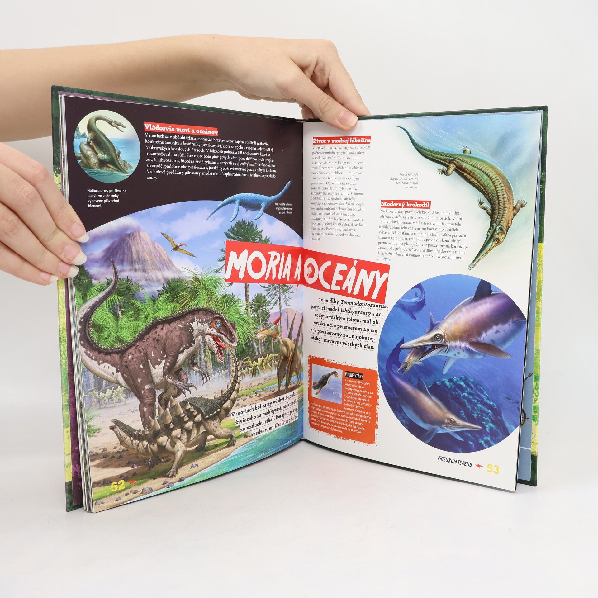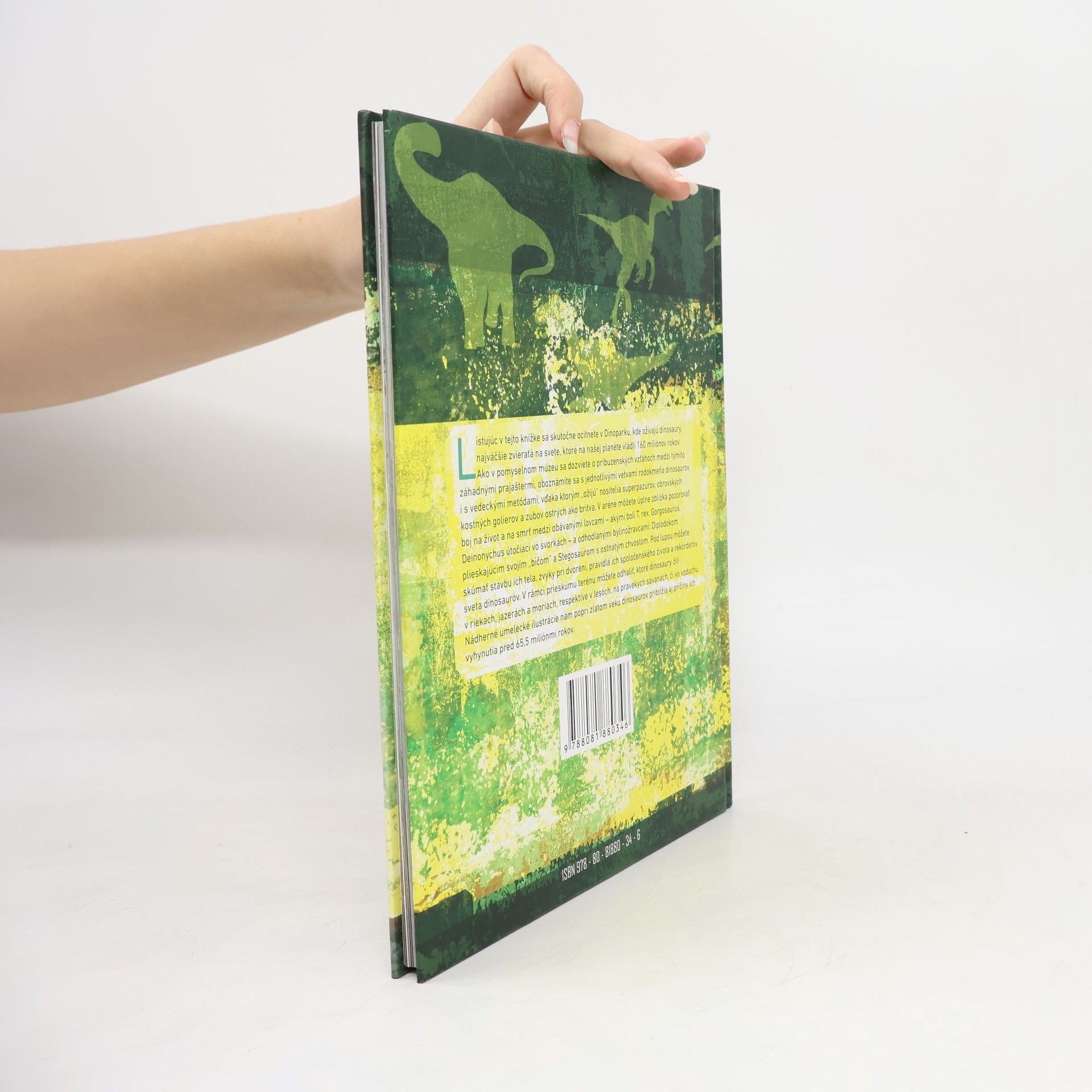 Listujúc v tejto knižke sa skutočne ocitnete v Dinoparku, kde ožívajú dinosaury, najväčšie zvieratá na svete, ktoré na našej planéte vládli 160 miliónov rokov. Ako v pomyslenom múzeu sa dozviete o príbuzenských vzťahoch medzi týmito záhadnými prajaštermi, oboznámite sa s jednotlivými vetvami rodokmeňa dinosaurov i s vedeckými metódami, vďaka ktorým "ožijú" nositelia superpazúrov, obrovských kostných golierov a zubov ostrých ako britva. V aréne úplne zblízka môžete pozorovať boj na život a na smrť medzi obávanými lovcami - akými boli T. rex, Gorgosaurus, Deinonychus útočiaci vo svorkách - a odhodlanými bylinožravcami: Diplodokom plieskajúcim svoj "bič" a Stegosaurom s ostnatým chvostom. Pod lupou môžete skúmať stavbu ich tela, zvyky pri dvorení, pravidlá ich spoločenského života a rekordérov sveta dinosaurov. V rámci prieskumu terénu môžete odhaliť, ktoré dinosaury žili v riekach, jazerách a moriach, respektíve v lesoch, na pravekých savanách, či vo vzduchu. Nádherné umelecké ilustrácie nám popri zlatom veku dinosaurov priblížia aj príčiny ich vyhynutia pred 65,5 miliónmi rokov.