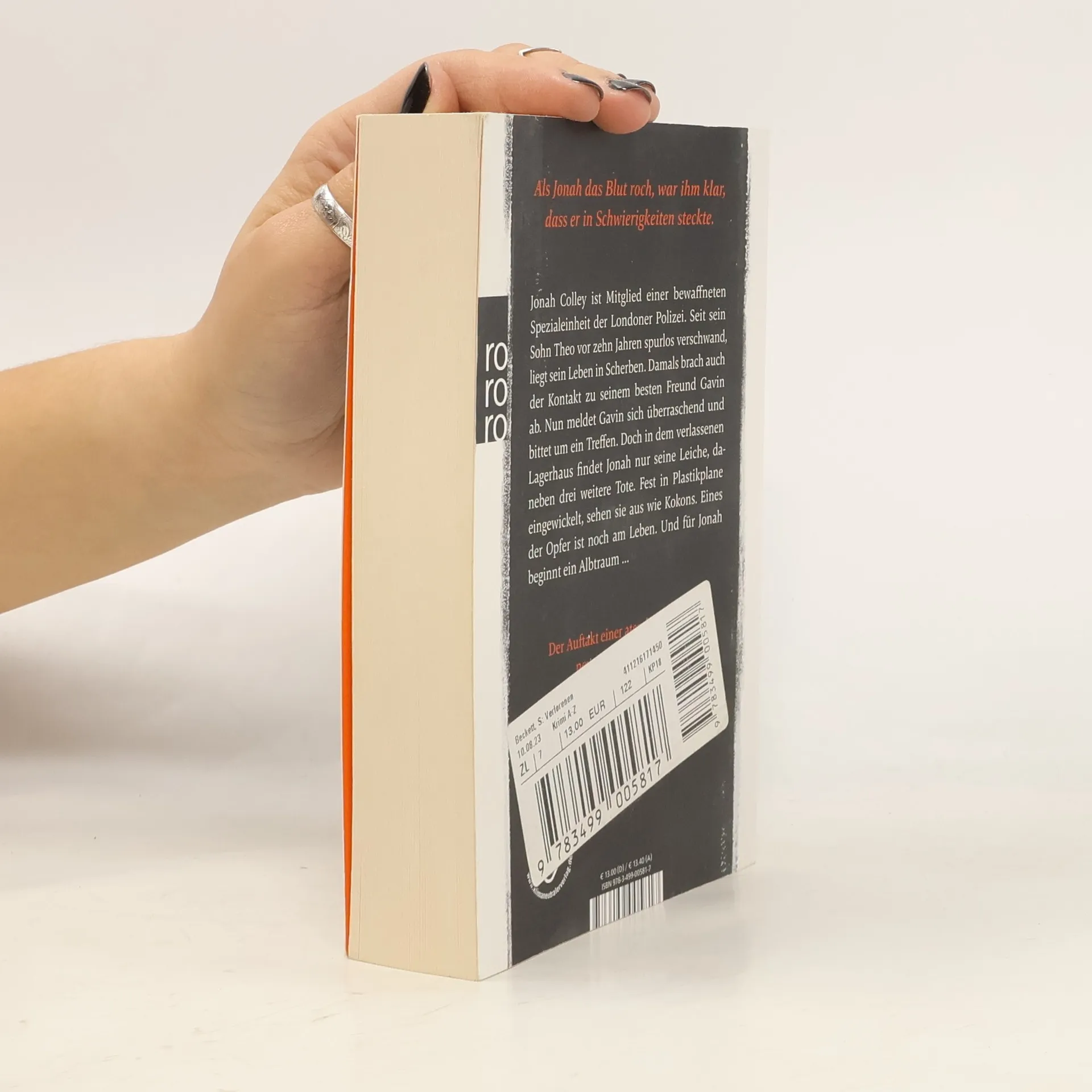 Als Jonah das Blut roch, war ihm klar, dass er in Schwierigkeiten steckte. Jonah Colley ist Mitglied einer bewaffneten Spezialeinheit der Londoner Polizei. Seit sein Sohn Theo vor zehn Jahren spurlos verschwand, liegt sein Leben in Scherben. Damals brach auch der Kontakt zu seinem besten Freund Gavin ab. Nun meldet Gavin sich überraschend und bittet um ein Treffen. Doch in dem verlassenen Lagerhaus findet Jonah nur seine Leiche, daneben drei weitere Tote. Fest in Plastikplane eingewickelt, sehen sie aus wie Kokons. Eines der Opfer ist noch am Leben. Und für Jonah beginnt ein Albtraum … Der Auftakt einer atemberaubenden neuen Thrillerserie von Bestsellerautor Simon Beckett.