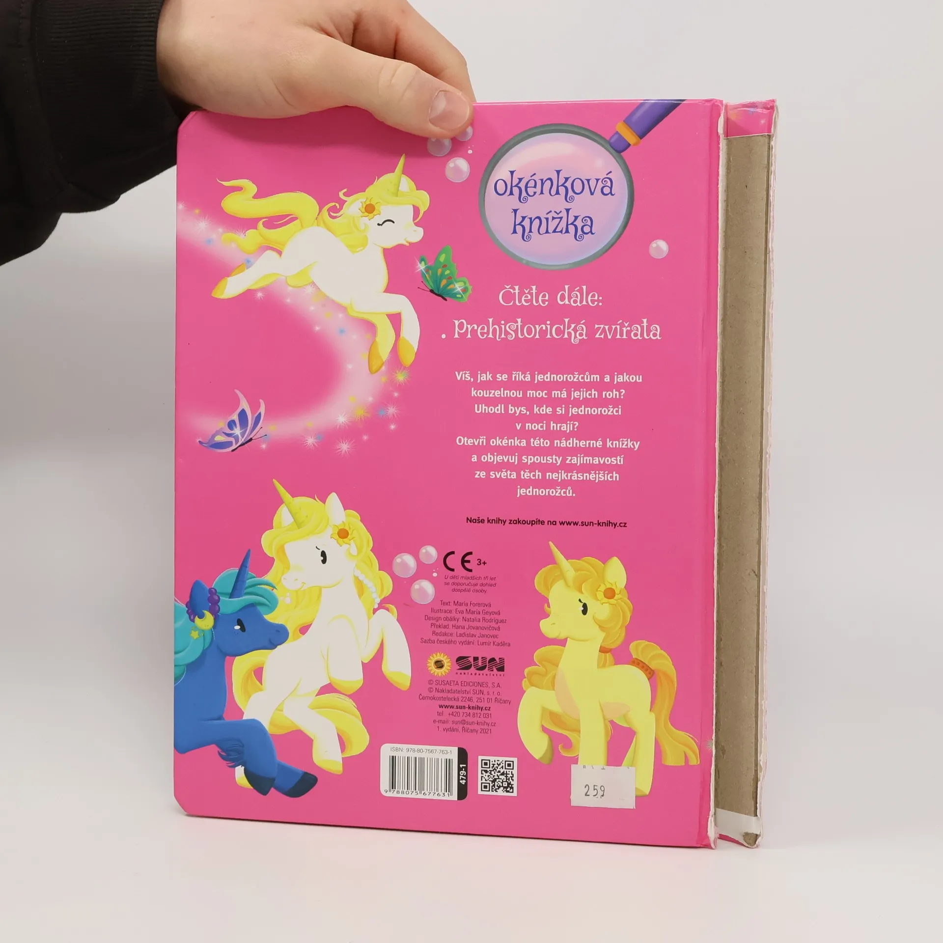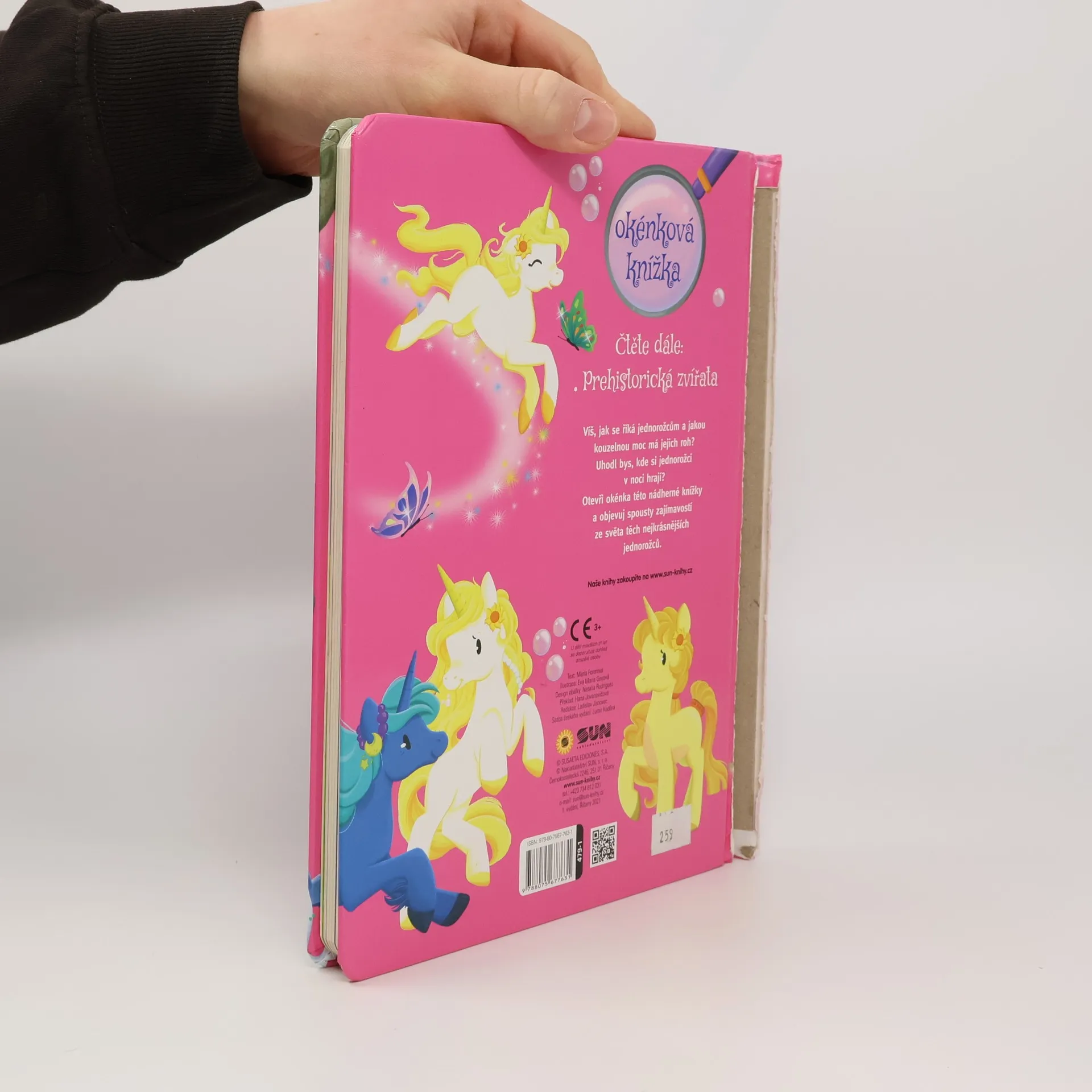 Průvodce světem jednorožců. Knížka s tuhými listy a otevíracími částmi.