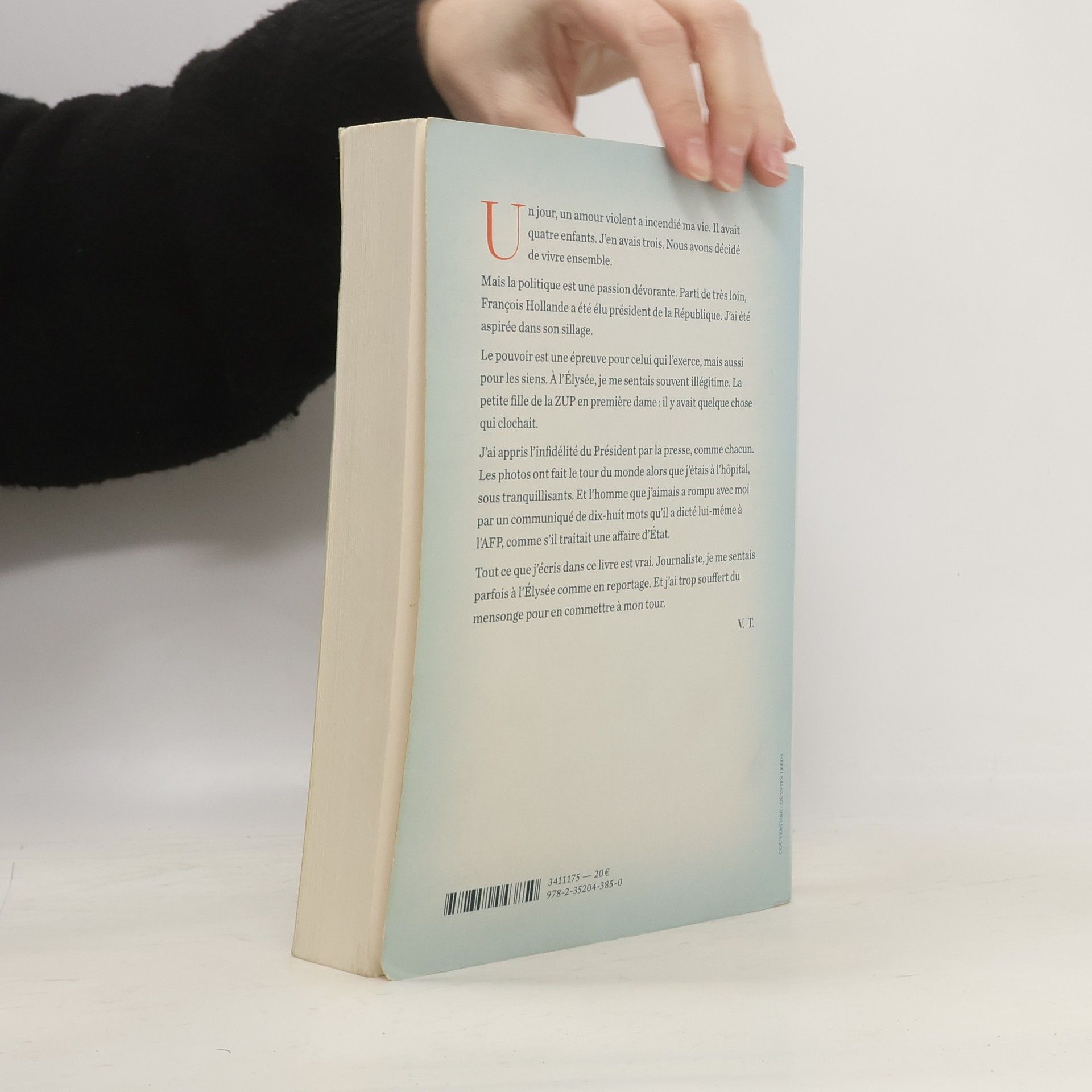 Un jour, un amour violent a incendié ma vie. Il avait quatre enfants. J’en avais trois. Nous avons décidé de vivre ensemble.Mais la politique est une passion dévorante. Parti de très loin, François Hollande a été élu Président de la République. J’ai été aspirée dans son sillage. Le pouvoir est une épreuve pour celui qui l’exerce, mais aussi pour les siens. À l’Élysée, je me sentais souvent illégitime. La petite fille de la ZUP en première dame : il y avait quelque chose qui clochait.J’ai appris l’infidélité du Président par la presse, comme chacun. Les photos ont fait le tour du monde alors que j’étais à l’hôpital, sous tranquillisants. Et l’homme que j’aimais a rompu avec moi par un communiqué de dix-huit mots qu’il a dicté lui-même à l’AFP, comme s’il traitait une affaire d’État.