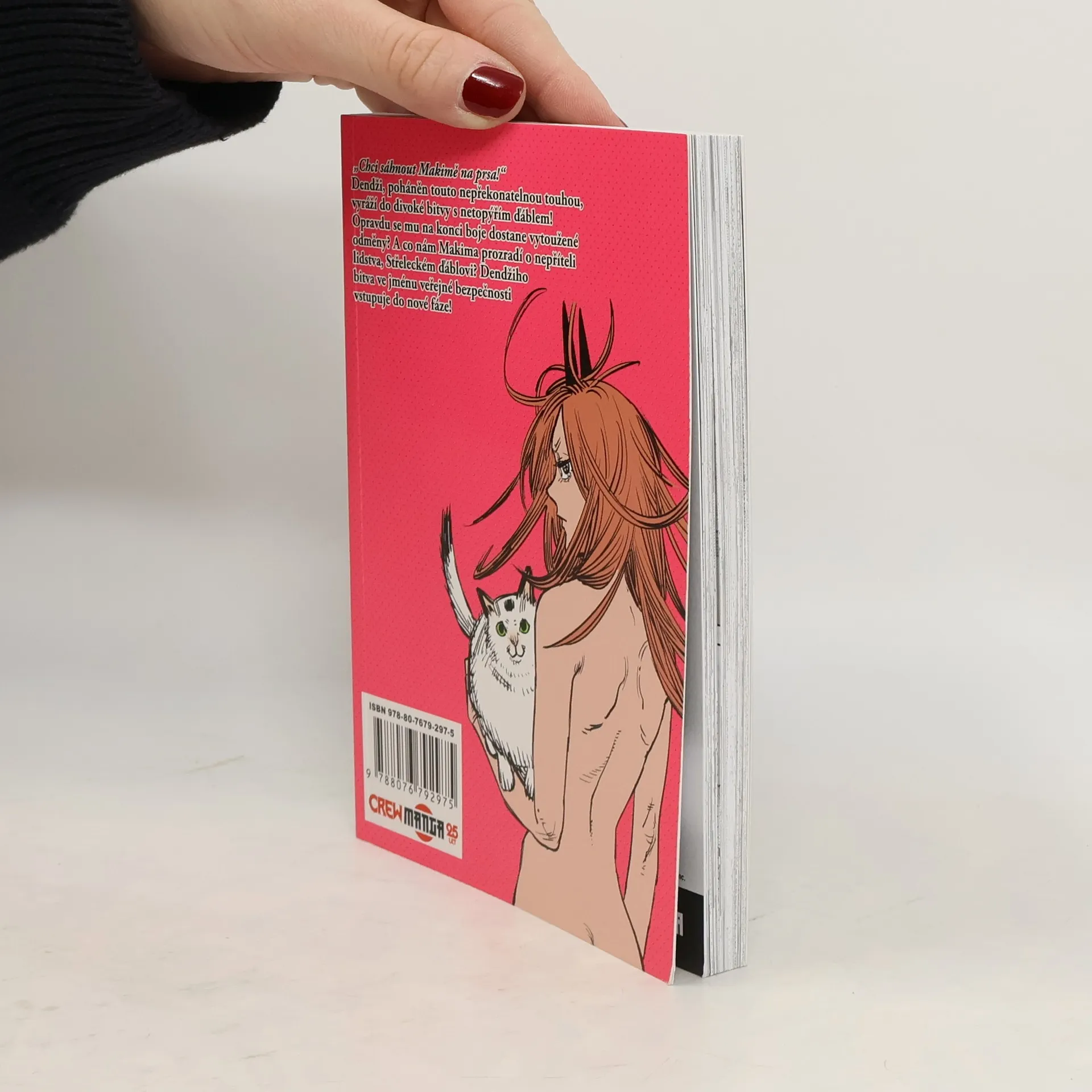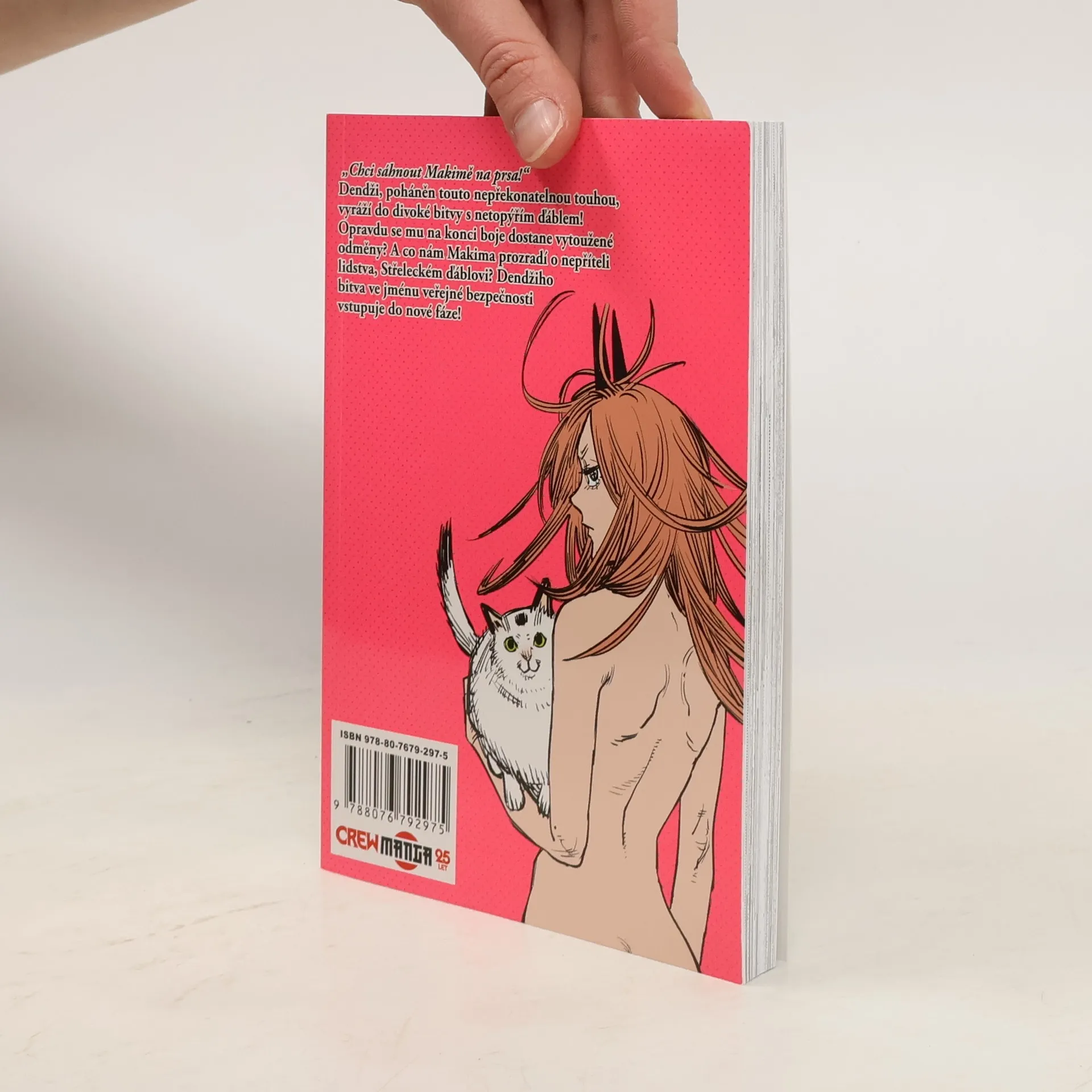 „Chci šáhnout Makimě na prsa!“Dendži, poháněn touto nepřekonatelnou touhou, vyráží do divoké bitvy s netopýřím ďáblem! Dostane se mu na konci boje opravdu vytoužené odměny? A co nám Makima prozradí o nepříteli lidstva, Střeleckém ďáblovi? Dendžiho bitva ve jménu veřejné bezpečnosti vstupuje do nové fáze!