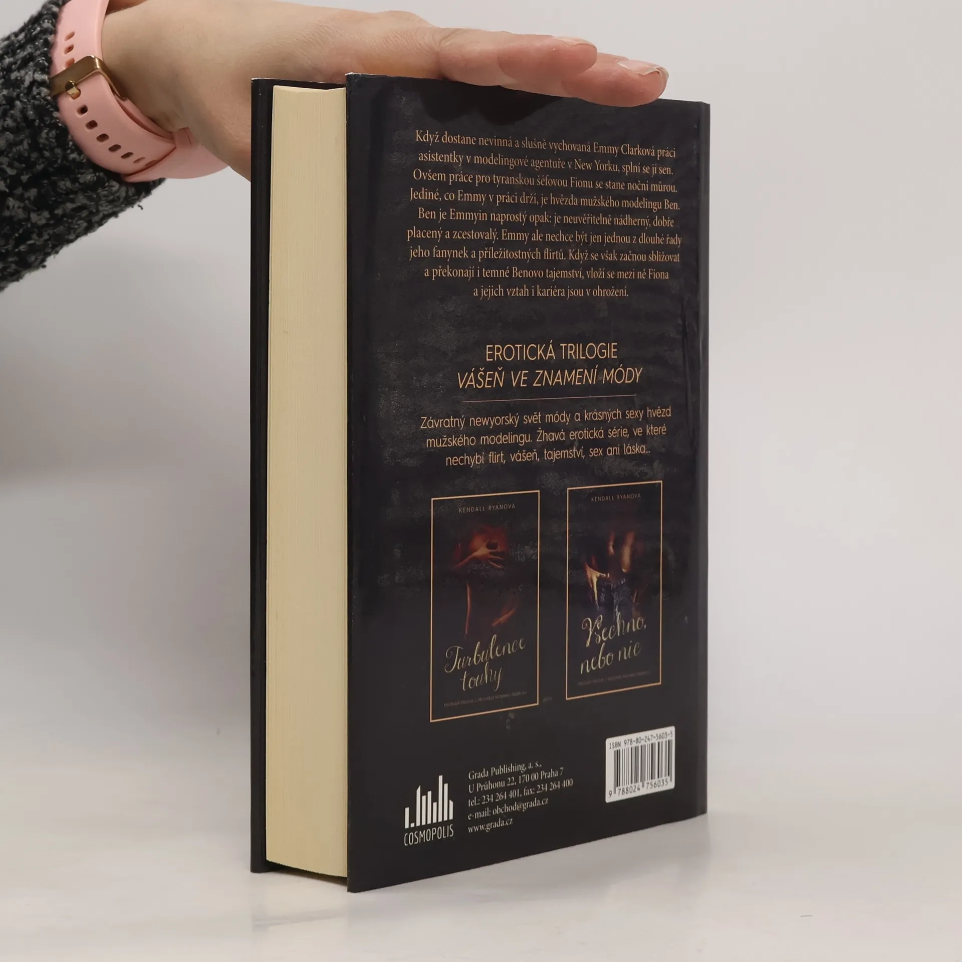 Když dostane nevinná a slušně vychovaná Emmy Clarková práci asistentky v modelingové agentuře v New Yorku, splní se jí sen. Ovšem práce po tyranskou šéfovou Fionu se stane noční můrou. Jediné, co Emmy v práci drží, je hvězda mužského modelingu Ben. Ben je Emmyin naprostý opak: je neuvěřitelně nádherný, dobře placený a zcestovalý. Emmy ale nechce být jen jednou z dlouhé řady jeho fanynek a příležitostných flirtů. Když se začnou sbližovat a překonají i temné Benovo tajemství, vloží se mezi ně Fiona a jejich vztah i kariéra jsou v ohrožení. Ohlasy kritiky: „Ďábel nosí Pradu s jemně zamženou zápletkou. Milé dámy, připravte si něco ke zchlazení, Kendall Ryanová vám totiž přináší pikantní příběh, po jehož přečtení budete prosit o další.“ – Molly McAdamsová, autorka New York Times bestselleru Taking Chances *** „Styl psaní Kendall Ryanové je zkrátka bezvadný. Romány mají neuvěřitelný spád a jsou plné emocí. Nedokázala jsem se od knih odtrhnout. Rozhodně dávám pět hvězdiček!“ – K.A. Robinsonová, autorka New York Times bestsellerů *** „Oslňující a romantické, trilogie Vášeň ve znamení módy má zkrátka všechno, co musejí skvělé erotické romány mít: okouzlující prostředí, krásného hrdinu a hrdinku, jež jsou pro sebe jako stvoření, zejména pak v těch nejerotičtějších scénách.“ – Lauren Blakelyová, autorka New York Times bestsellerů