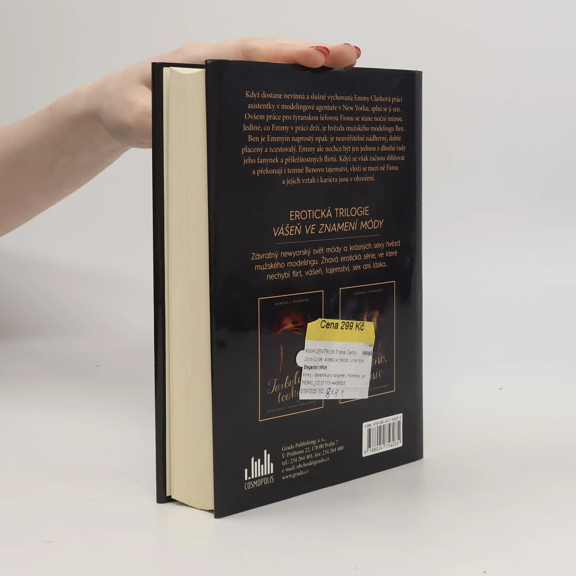 Když dostane nevinná a slušně vychovaná Emmy Clarková práci asistentky v modelingové agentuře v New Yorku, splní se jí sen. Ovšem práce po tyranskou šéfovou Fionu se stane noční můrou. Jediné, co Emmy v práci drží, je hvězda mužského modelingu Ben. Ben je Emmyin naprostý opak: je neuvěřitelně nádherný, dobře placený a zcestovalý. Emmy ale nechce být jen jednou z dlouhé řady jeho fanynek a příležitostných flirtů. Když se začnou sbližovat a překonají i temné Benovo tajemství, vloží se mezi ně Fiona a jejich vztah i kariéra jsou v ohrožení. Ohlasy kritiky: „Ďábel nosí Pradu s jemně zamženou zápletkou. Milé dámy, připravte si něco ke zchlazení, Kendall Ryanová vám totiž přináší pikantní příběh, po jehož přečtení budete prosit o další.“ – Molly McAdamsová, autorka New York Times bestselleru Taking Chances *** „Styl psaní Kendall Ryanové je zkrátka bezvadný. Romány mají neuvěřitelný spád a jsou plné emocí. Nedokázala jsem se od knih odtrhnout. Rozhodně dávám pět hvězdiček!“ – K.A. Robinsonová, autorka New York Times bestsellerů *** „Oslňující a romantické, trilogie Vášeň ve znamení módy má zkrátka všechno, co musejí skvělé erotické romány mít: okouzlující prostředí, krásného hrdinu a hrdinku, jež jsou pro sebe jako stvoření, zejména pak v těch nejerotičtějších scénách.“ – Lauren Blakelyová, autorka New York Times bestsellerů