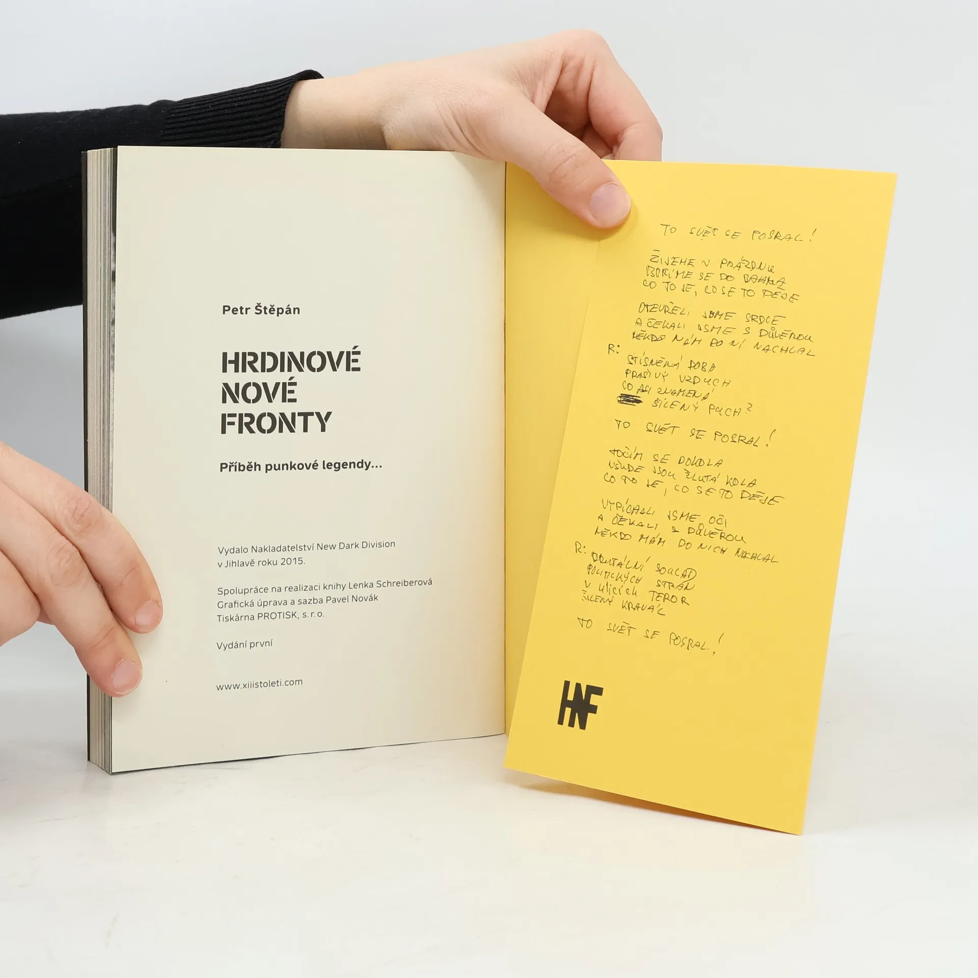 Volnou formou vyprávěný příběh této legendární punkové skupiny jistě osloví nejen její dobové fanoušky, ale i současné mladší příznivce. Petr Štěpán nás nechává nahlédnout do zákulisí událostí, které předcházely vzniku skupiny, přes její vývoj, tvorbu, nahrávky, koncerty, vzestupy a pády až po rozpad a zánik skupiny. Kniha obsahuje množství autorových zážitků a osobních vzpomínek, z nichž drtivá většina je v této knize publikována vůbec poprvé. Čtivou formou tím zároveň předkládá svědectví o životě nejen v punkové komunitě, ale též o době, kultuře a společnosti před pádem komunistického režimu. Naprostým unikátem knihy je komplet všech textů písní HNF, které jsou doplněny množstvím autentických dobových fotografií z celé éry skupiny pořízené v letech 1985 – 1988. Kniha vychází u příležitosti 30.výročí založení skupiny HNF!
