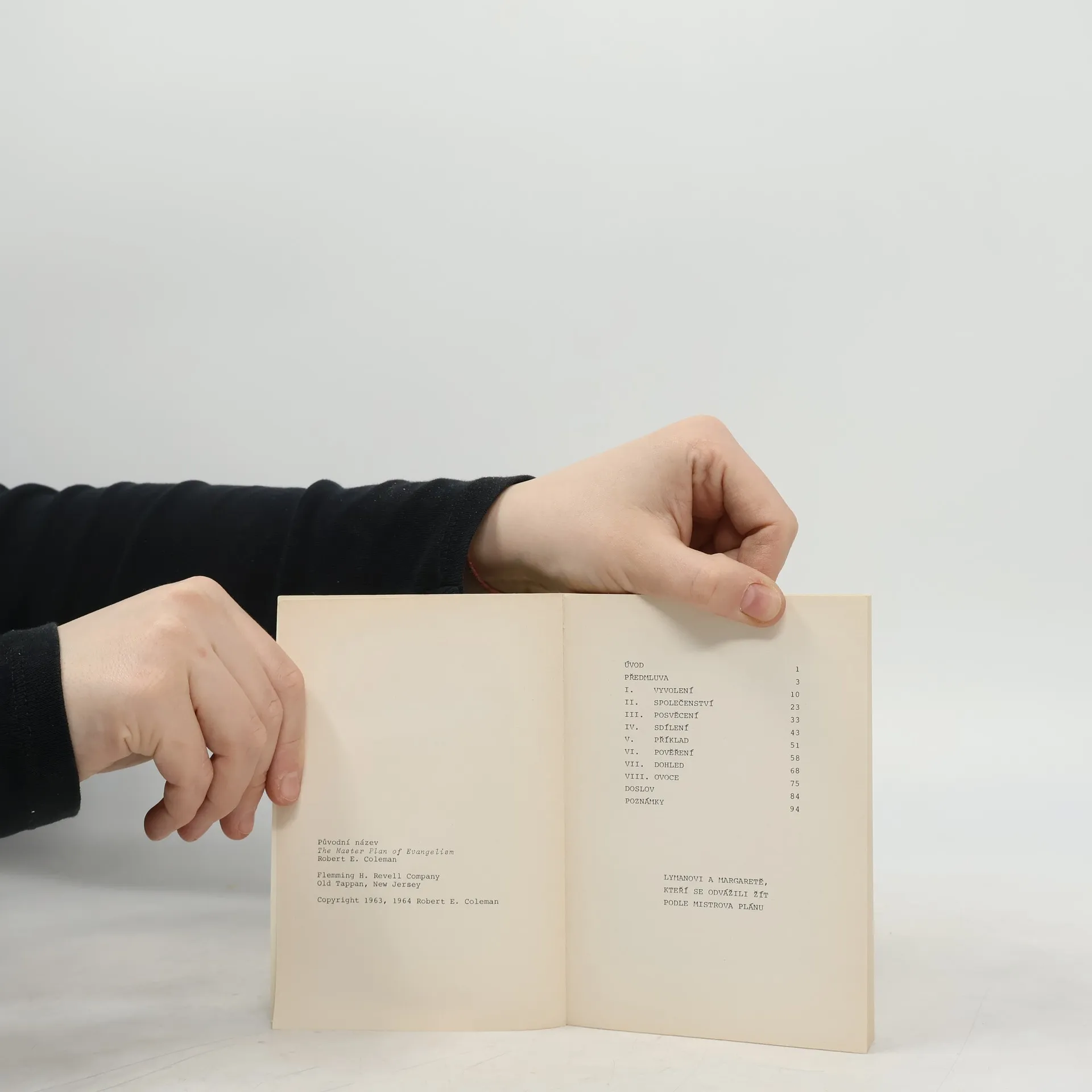 V této knize nám Robert E. Coleman, profesor evangelizace na Asburyském semináři, předkládá několik zásad a schémat, která nás při pečlivém studiu osvobodí od pohledu na evangelizaci jako na nějakou specializovanou nebo příležitostnou činnost - zařadí ji tam, kam patří: do opravdového života společenství, které roste a vydává svědectví.