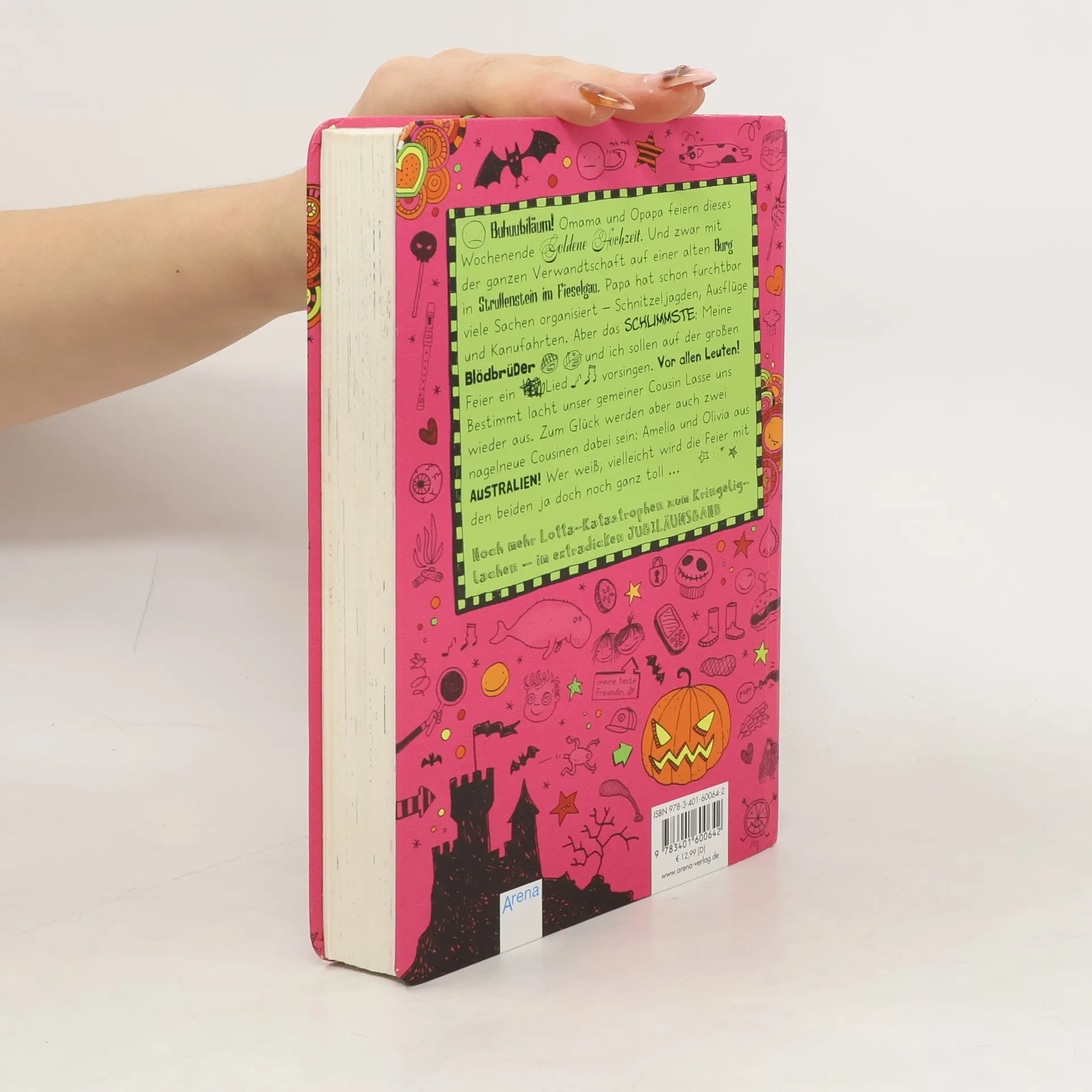 Juchuuubiläum! Omama und Opapa feiern Goldene Hochzeit auf einer alten Burg in Strullenstein im Fieselgau. Die ganze Verwandtschaft reist an und Papa hat schon alles organisiert: Schnitzeljagd, Ausflüge und einen musikalischen Auftritt von Lotta. Oh Mann! Am liebsten würde Lotta Zuhause bleiben. Dass das Wochenende doch wunderbar wird, liegt vor allem an Lottas neuen australischen Cousinen und an dem riesigen Abenteuer, das Familie Petermann bevorsteht.
