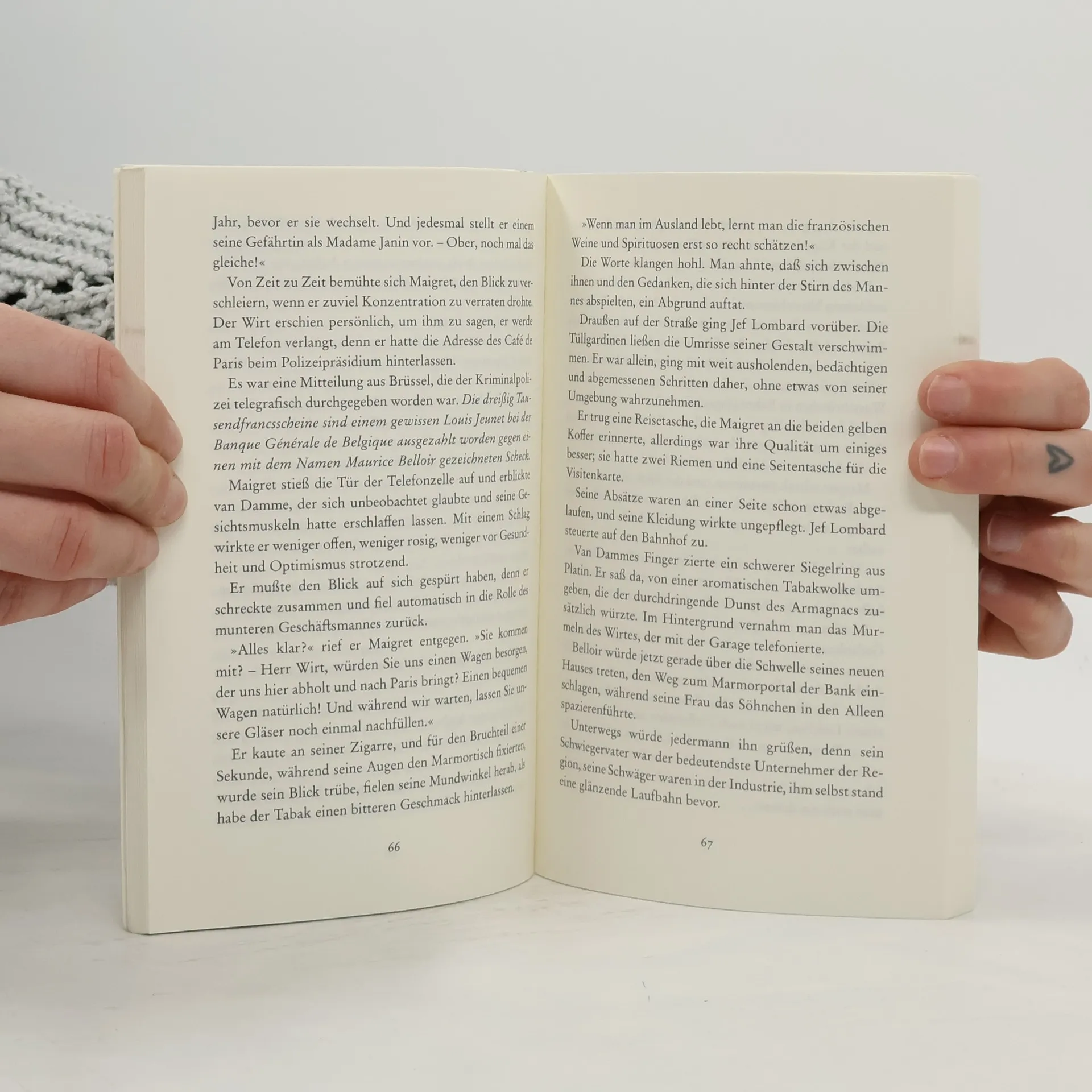 Aus einer Eingebung heraus heftet sich Maigret während einer kurzen Dienstreise an die Fersen eines schäbig gekleideten Mannes, den er in einem Café Tausendfrancsscheine zählen sieht. Aus Neugier tauscht Maigret dessen Koffer gegen einen identischen und folgt dem Unbekannten. Die Reise geht nach Bremen, wo sich der Unbekannte umbringt, nachdem er bemerkt hat, dass die Koffer vertauscht wurden. Doch Maigret findet in dem getauschten Koffer nur einen abgetragenen Anzug. Maigrets Schuldgefühle sind quälend...