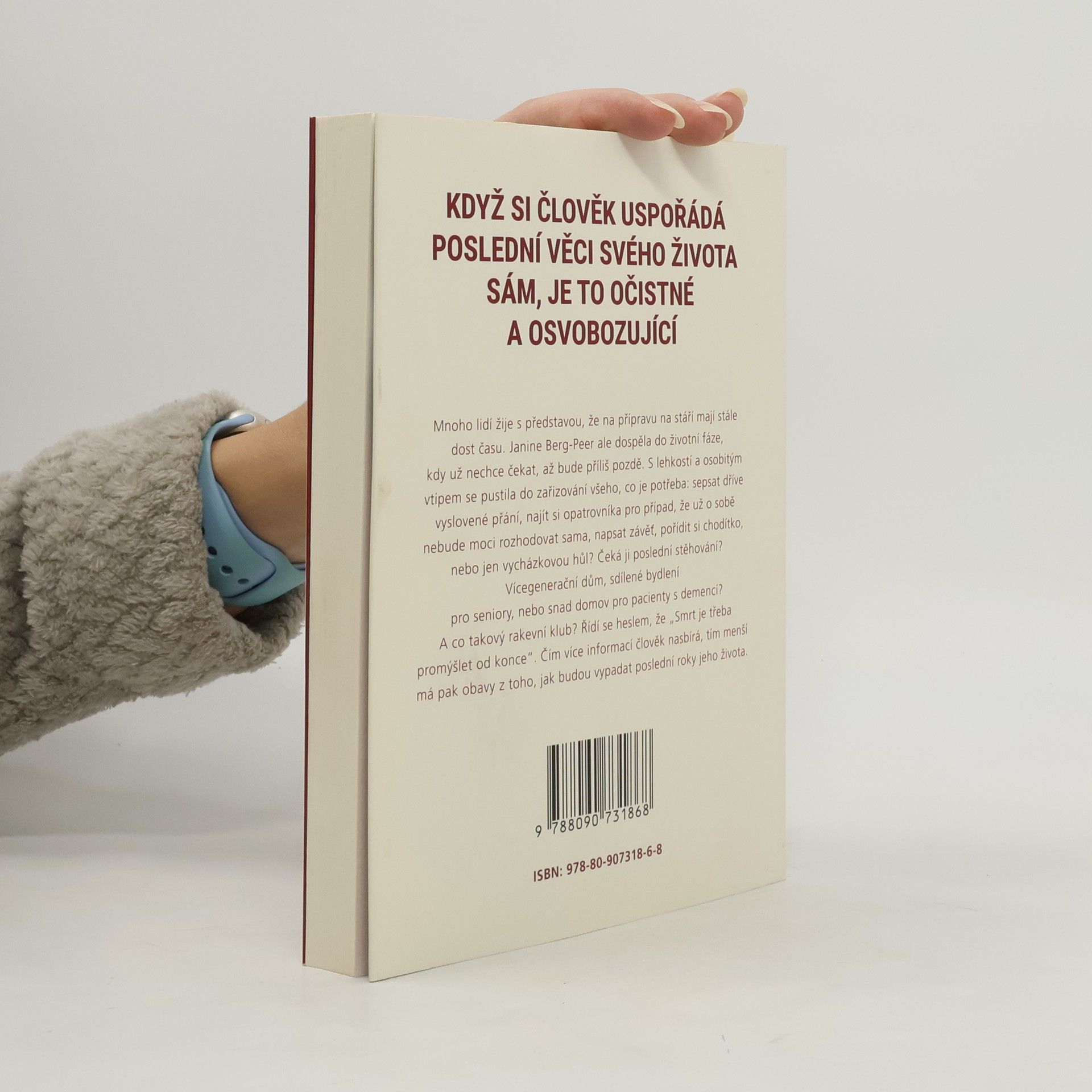 Když si člověk uspořádá poslední věci svého života, je to očistné a osvobozující. Mnoho lidí žije s představou, ze na přípravu na stáří mají stále dost času. Janine Berg-Peer ale dospěla do životní fáze, kdy už nechce čekat, až bude příliš pozdě. S lehkostí a osobitým vtipem se pustila do zařizování všeho, co je potřeba: sepsat dříve vyslovené přání, najít si opatrovníka pro případ, že už o sobě nebude moci rozhodovat sama, napsat závěť, pořídit chodítko, nebo jen vycházkovou hůl? Čeká jí poslední stěhování? Vícegenerační dům, sdílené bydlení pro seniory, nebo snad domov pro pacienty s demencí? A co takový rakevní klub? Řídí se heslem, že „Smrt je třeba promýšlet do konce“. Čím více informací člověk nasbírá, tím menší má pak obavy z toho, jak budou vypadat poslední roky jeho života.