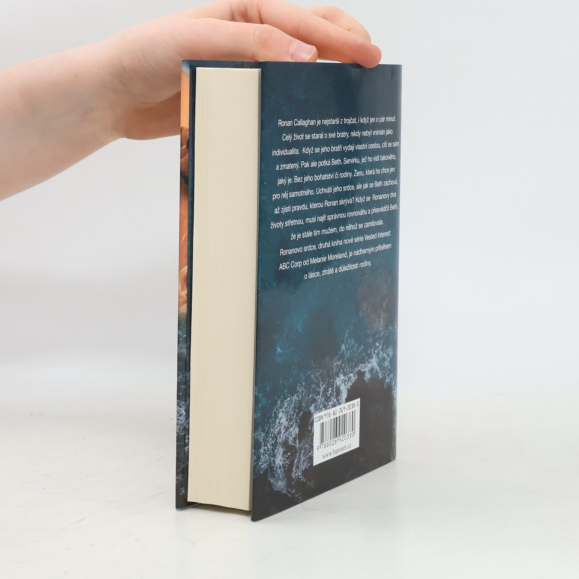 Ronan Callaghan je nejstarší z trojčat, i když jen o pár minut. Celý život se staral o své bratry, nikdy nebyl vnímán jako individualita. Když se jeho bratři vydají vlastní cestou, cítí se sám a zmatený. Pak ale potká Beth. Servírku, která ho vidí takového, jaký je. Bez jeho bohatství či rodiny. Ženu, která ho chce jen pro něj samotného. Uchvátí jeho srdce, ale jak se Beth zachová, až zjistí pravdu, kterou skrývá? Když se Ronanovy dva životy střetnou, musí najít správnou rovnováhu a přesvědčit Beth, že je stále tím mužem, do kterého se zamilovala.Ronanovo srdce, druhá kniha nové série Vested Interest: ABC Corp. od Melanie Moreland, je nádherně povznášejícím příběhem o lásce, ztrátě a důležitosti rodiny.