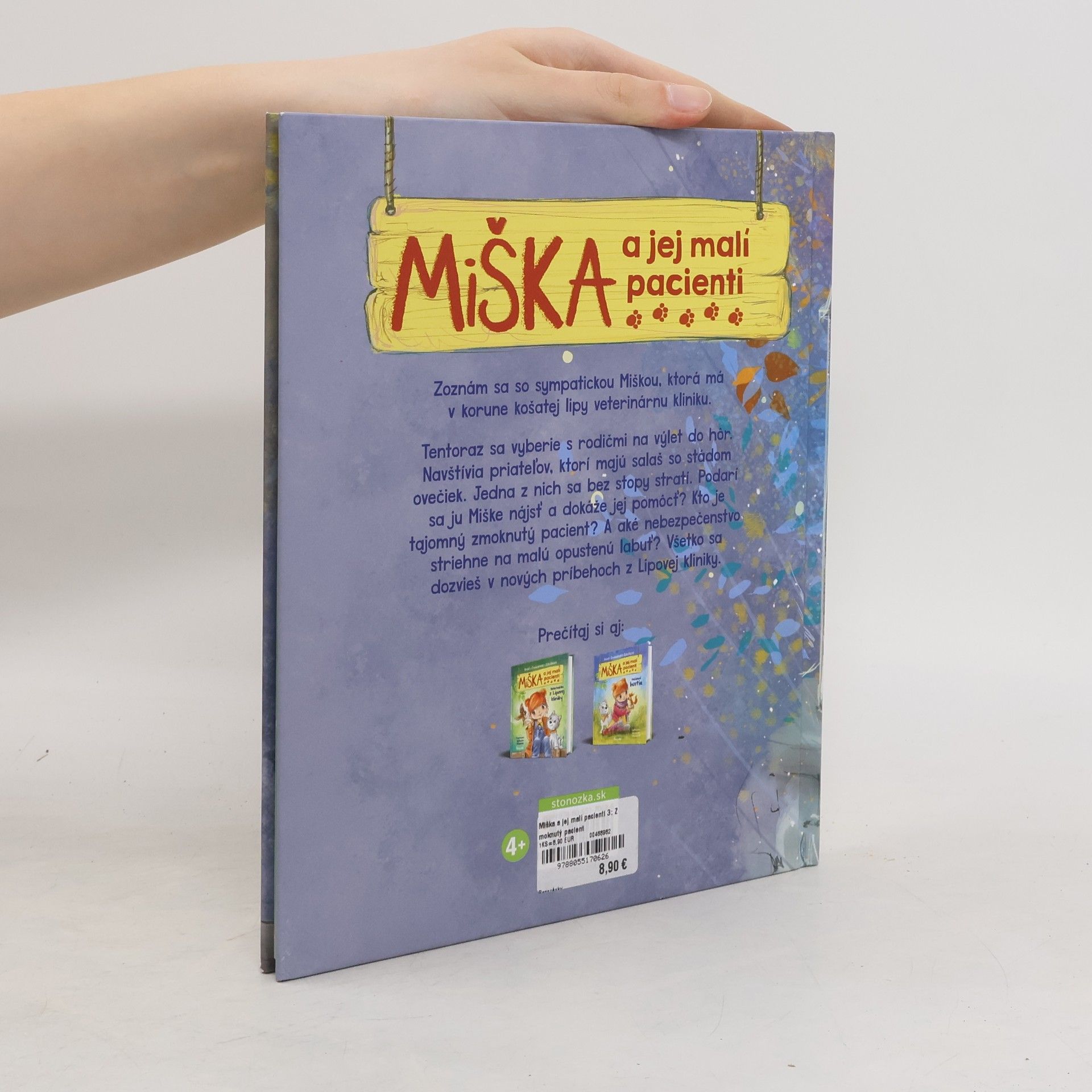Tentoraz sa vyberie s rodičmi na výlet do hôr. Navštívia priateľov, ktorí majú salaš so stádom ovečiek. Jedna z nich sa bez stopy stratí. Podarí sa ju Miške nájsť a dokáže jej pomôcť? Kto je tajomný zmoknutý pacient? A aké nebezpečenstvo striehne na malú opustenú labuť?Všetko sa dozvieš v nových príbehoch z Lipovej kliniky.