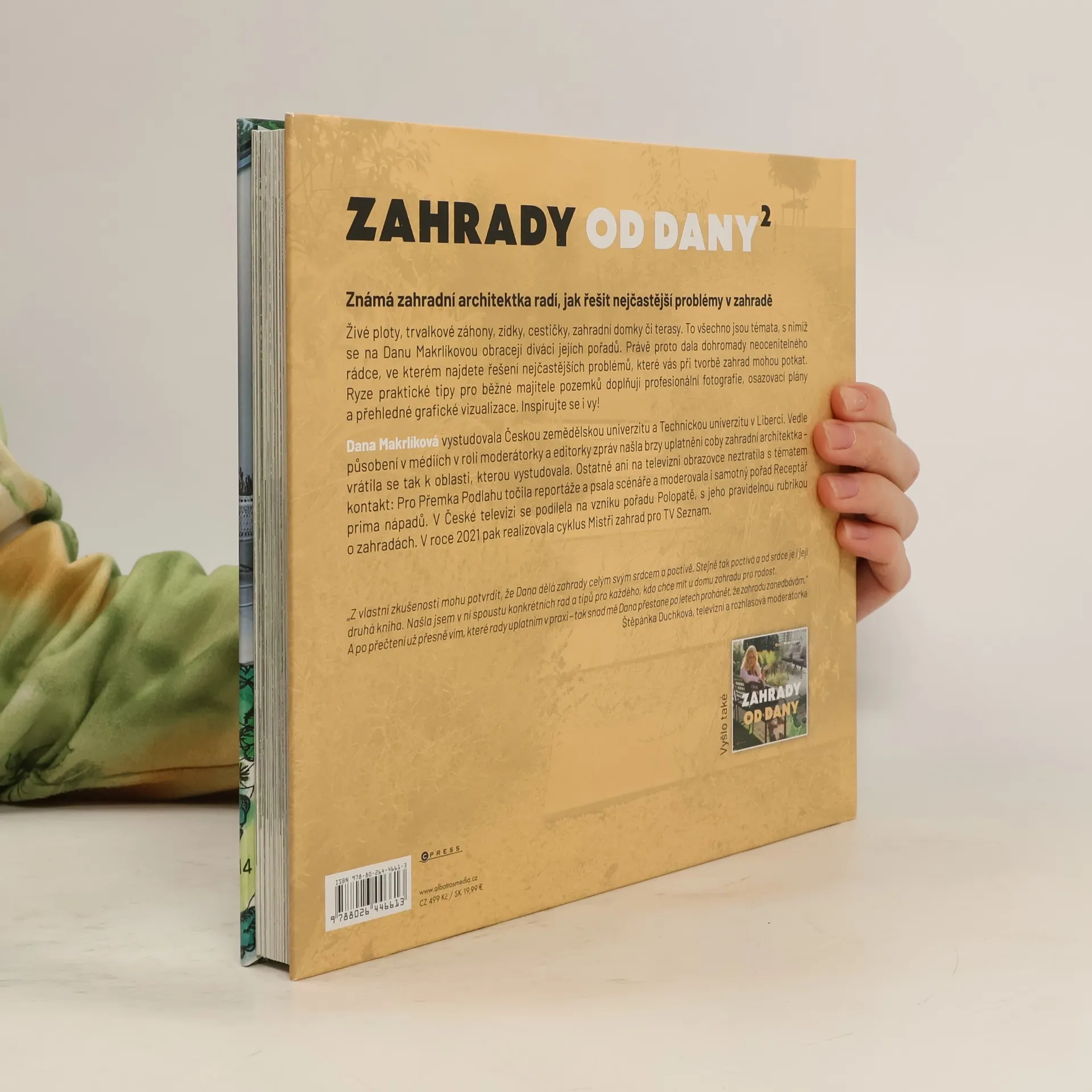 Známá zahradní architektka radí, jak na nejčastější problémy v zahradě. Živé ploty, trvalkové záhony, zídky, cestičky, zahradní domky či terasy. To všechno jsou témata, s nimiž se na Danu Makrlíkovou obracejí diváci jejích pořadů. Právě proto dala dohromady neocenitelného rádce, ve kterém najdete řešení nejčastějších problémů, které vás při tvorbě zahrad mohou potkat. Ryze praktické tipy pro běžné majitele pozemků doplňují profesionální fotografie, osazovací plány a přehledné grafické vizualizace. Inspirujte se i vy!