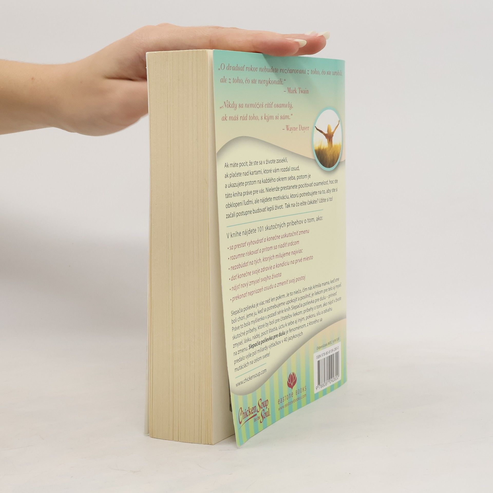 Ak máte pocit, že ste sa v živote zasekli, ak plačete nad kartami, ktoré vám rozdal osud, a ukazujete prstom na každého okrem seba, potom je táto kniha práve pre vás. Nielenže prestanete pociťovať osamelosť, hoc ste obklopení ľuďmi, ale nájdete motiváciu, ktorú potrebujete na to, aby ste si začali postupne budovať lepší život. Tak na čo ešte čakáte? Užite si to! V knihe nájdete 101 skutočných príbehov o tom, ako sa prestať vyhovárať a konečne uskutočniť zmenu, ako sa pritom riadiť srdcom, nezabúdať na tých, ktorých milujeme najviac, dať konečne svoje zdravie a kondíciu na prvé miesto, rozumne riskovať, nájsť nový zmysel svojho života, prekonať nepriazeň osudu a zmeniť svoj postoj.