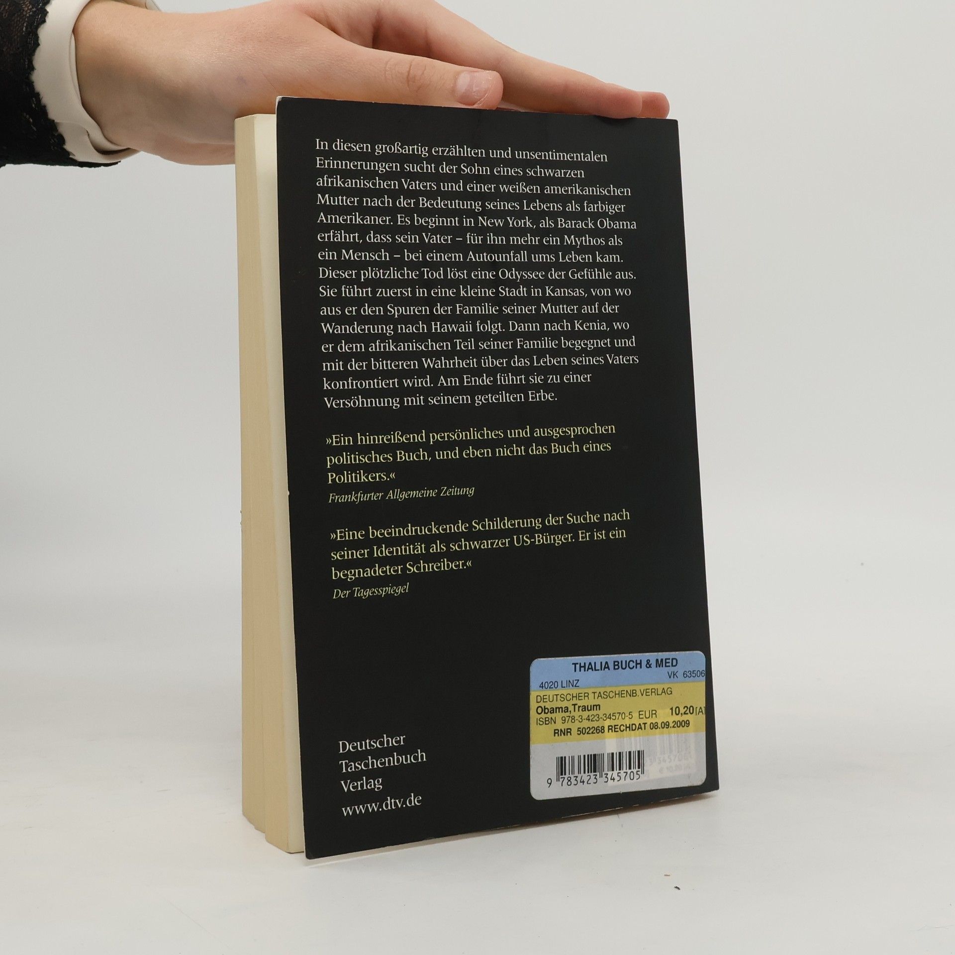 Der Präsident und sein amerikanischer Traum In diesen großartig erzählten, unsentimentalen Erinnerungen begibt sich Barack Obama auf die Suche nach seiner Identität. Aufgewachsen unter ärmlichen Verhältnissen in Hawaii und Indonesien als Sohn einer weißen Amerikanerin und eines Kenianers, wurde er als junger Mann in den USA wegen seiner Hautfarbe diskriminiert. Dies spornte ihn nur umso mehr an, den amerikanischen Traum zu leben, der ihm zunächst eine glänzende juristische Laufbahn eröffnete und dann seinen furiosen Aufstieg als Politiker der Demokraten begründete. Mit seiner Zugewandtheit und Offenheit verkörperte er als der spätere Präsident der Vereinigten Staaten und Friedensnobelpreisträger die weltweite Sehnsucht nach einer Politik der Menschlichkeit.