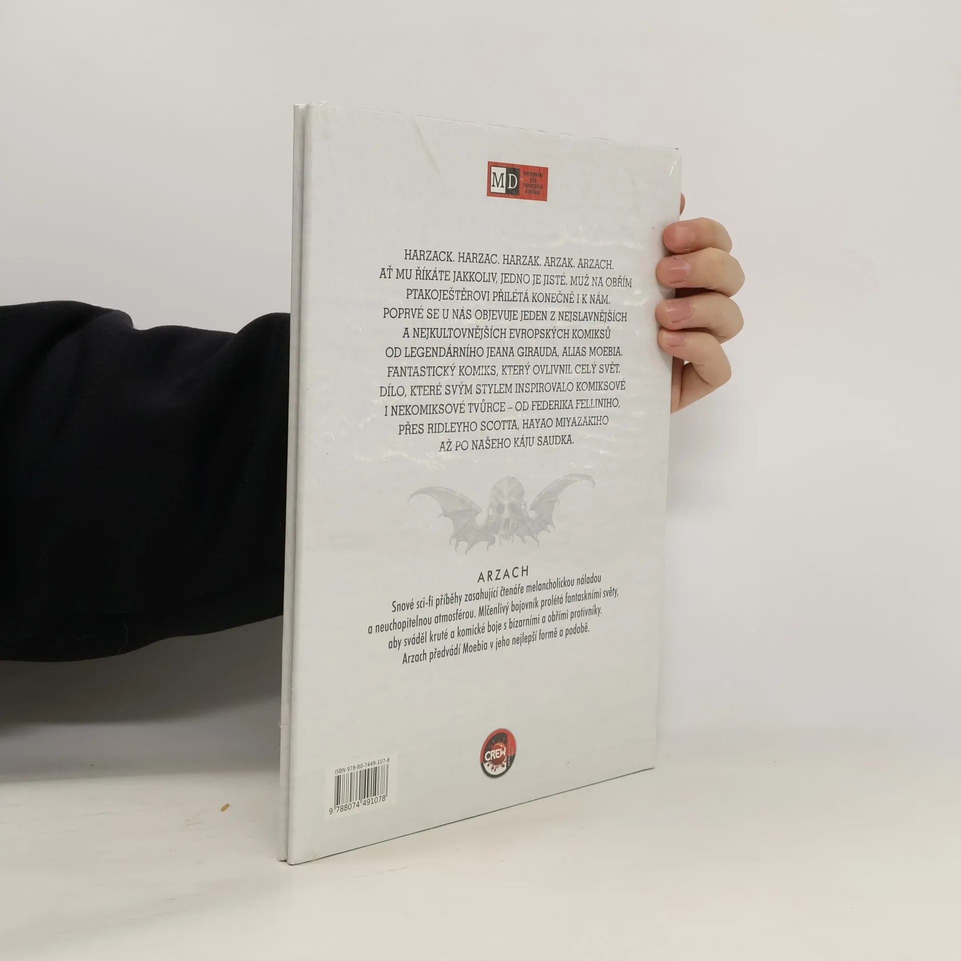 Moebius. Jedna z největších ikon světového komiksu. Kreslíř i scénárista, jehož nedávný odchod byl tragédií pro celý komiksový vesmír. Známe ho už z Incala, ale Arzach je jeho nejosobnější a nejslavnější dílo – fantastický komiks, který ovlivnil celý svět. Dílo, které svým stylem inspirovalo komiksové i nekomiksové tvůrce – od Federika Felliniho, Ridleyho Scotta, Hayao Miyazakiho až po našeho Káju Saudka. A to se v něm Moebius obešel téměř beze slov. V několika povídkách prolétá mlčenlivý bojovník fantaskními světy, aby sváděl kruté a komické boje s bizarními a obřími protivníky. Snové sci-fi příběhy zasahují čtenáře melancholickou náladou a neuchopitelnou atmosférou. Arzach předvádí Moebia v jeho nejlepší formě a podobě.