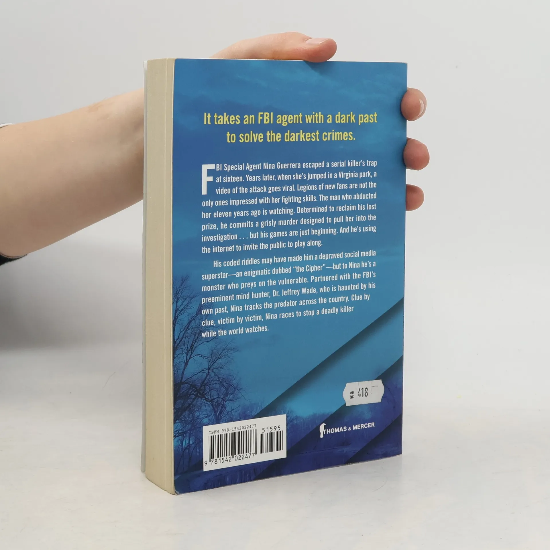 To a cunning serial killer, she was the one that got away. Until now... FBI Special Agent Nina Guerrera escaped a serial killer's trap at sixteen. Years later, when she's jumped in a Virginia park, a video of the attack goes viral. Legions of new fans are not the only ones impressed with her fighting skills. The man who abducted her eleven years ago is watching. Determined to reclaim his lost prize, he commits a grisly murder designed to pull her into the investigation...but his games are just beginning. And he's using the internet to invite the public to play along. His coded riddles may have made him a depraved social media superstar--an enigmatic cyber-ghost dubbed "the Cipher"--but to Nina he's a monster who preys on the vulnerable. Partnered with the FBI's preeminent mind hunter, Dr. Jeffrey Wade, who is haunted by his own past, Nina tracks the predator across the country. Clue by clue, victim by victim, Nina races to stop a deadly killer while the world watches.