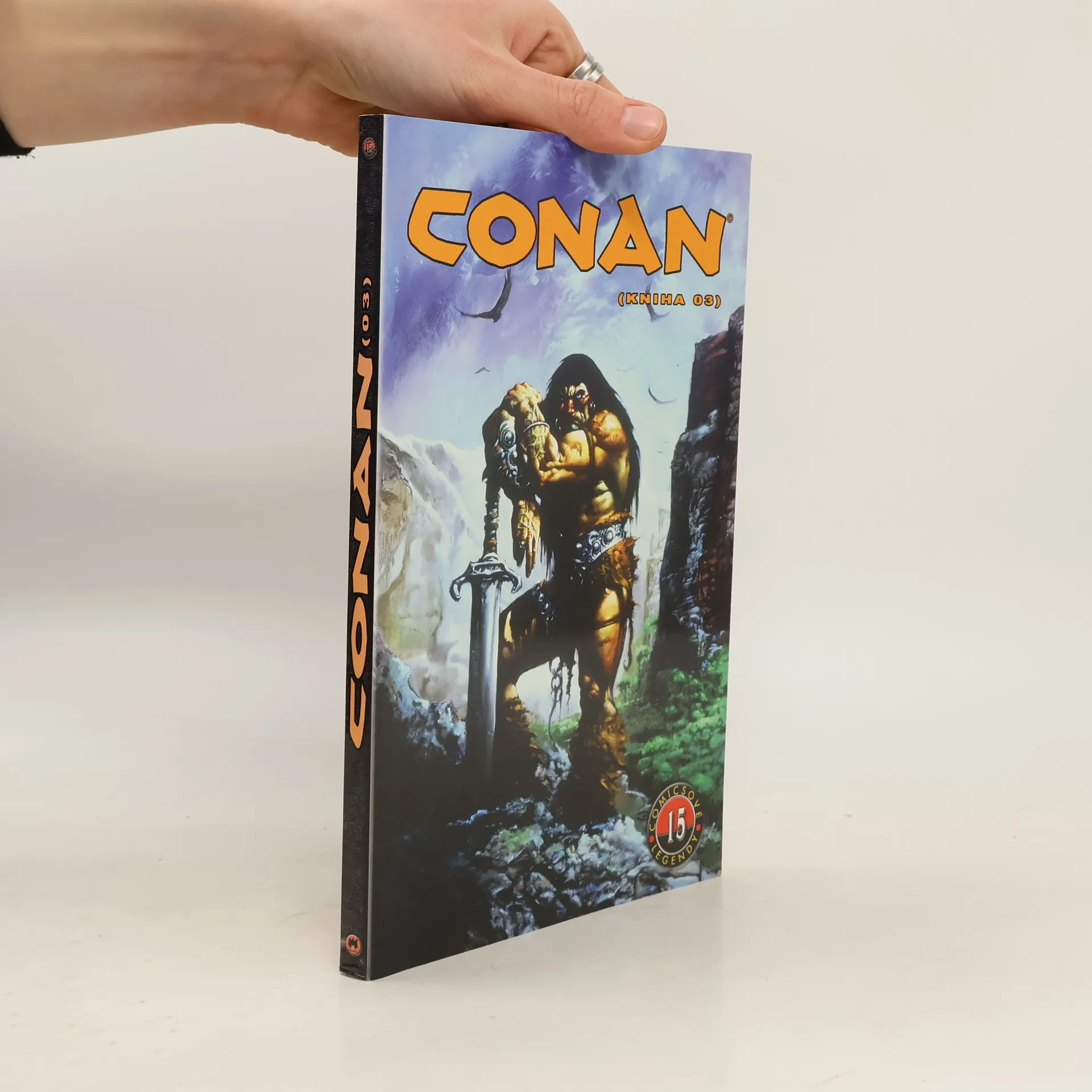 Třetí kniha komiksového zpracování epizod ze seriálu o legendárním barbarském hrdinovi v původních kresbách Barryho Windsora-Smithe a Johna Buscemiho. Jednotlivé epizody této knihy (Bohové Bal-Sagothu, Věc v chrámu, Jestřábi moře, Černý pes pomsty, Netvor z Monolitu, Stín supa, Rudá Sonja, Zrcadla Kharan-Akkada) přivádějí hrdinu do středu nejrůznějších zápasů a dobrodružství, do válek mezi smrtelníky i bohy, démony a pekelnými monstry.