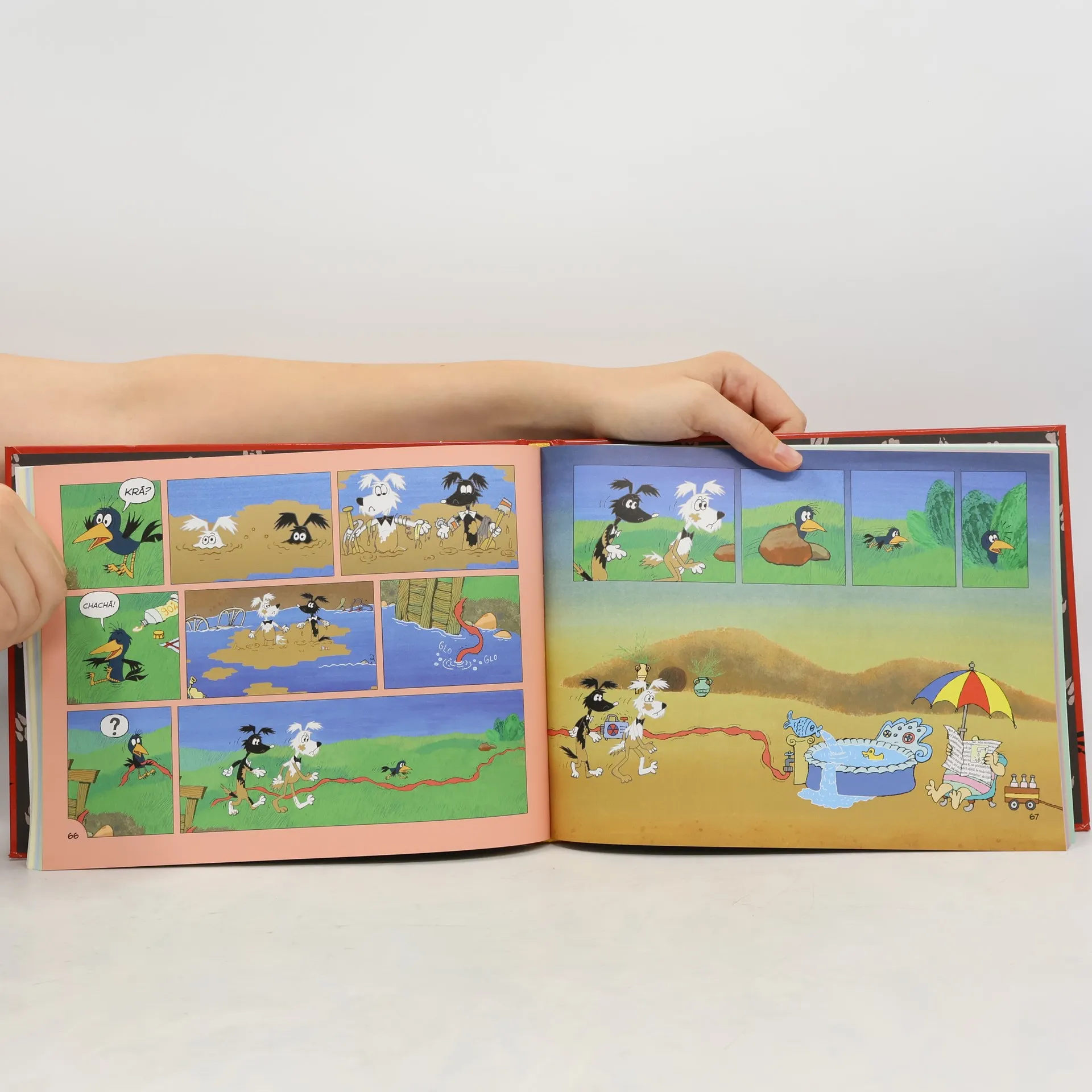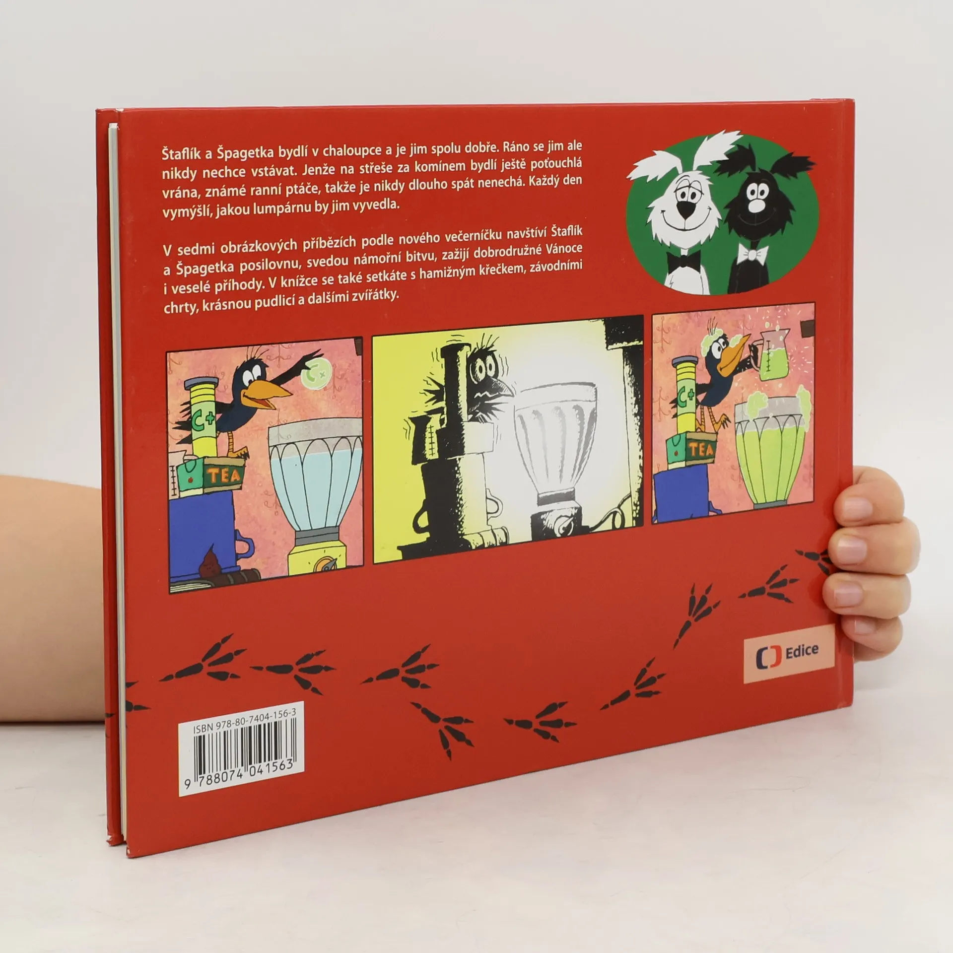 Podle večerníčku Martina Otevřela a Jiřího Munka, s obrázky Zdeňka Smetany za autorské spolupráce Marii Axamitové, nakreslil a napsal Martin Otevřel. Štaflík a Špagetka bydlí v chaloupce a je jim spolu dobře. Ráno se jim ale nikdy nechce vstávat. Jenže na střeše za komínem bydlí ještě poťouchlá vrána, známé ranní ptáče, takže je nikdy dlouho spát nenechá. Každý den vymýšlí, jakou lumpárnu by jim vyvedla. V sedmi obrázkových příbězích podle nového večerníčku navštíví Štaflík a Špagetka posilovnu, svedou námořní bitvu, zažijí dobrodružné Vánoce i veselé příhody. V knížce se také setkáte s hamižným křečkem, závodními chrty, krásnou pudlicí a dalšími zvířátky.