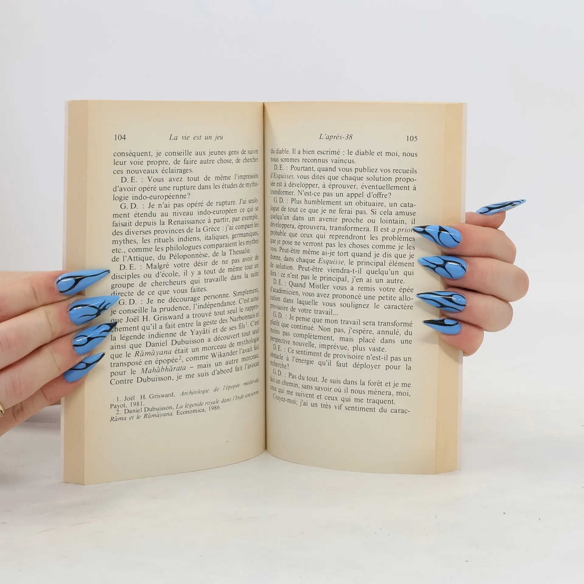 Georges Dumézil a toujours déclaré qu'un savant doit s'effacer derrière son œuvre. D'où son refus constant d'écrire ses mémoires ou de se livrer à la confidence autobiographique. Il a pourtant accepté de se raconter, de faire le récit de sa carrière universitaire, de sa vie intellectuelle et donc de sa vie tout court. Salué depuis de nombreuses années comme l'auteur d'une des œuvres les plus puissantes dans le domaine des sciences humaines, il donne ici de nouveaux éclairages sur son travail et sur les conditions dans lesquelles il s'est développé et imposé. Ce faisant, il offre à l'historien un témoignage capital sur la vie des idées en France au vingtième siècle. Il n'hésite pas à parler aussi de ses amis - de Pierre Gaxotte à Miche Foucault -, de ses goûts littéraires et philosophiques, de ses tentations politiques de jeunesse et de son détachement d'aujourd'hui. Mais surtout, il donne à un large public de non-spécialistes une voie d'accès à son œuvre, dont il fait comprendre la portée et les enjeux.