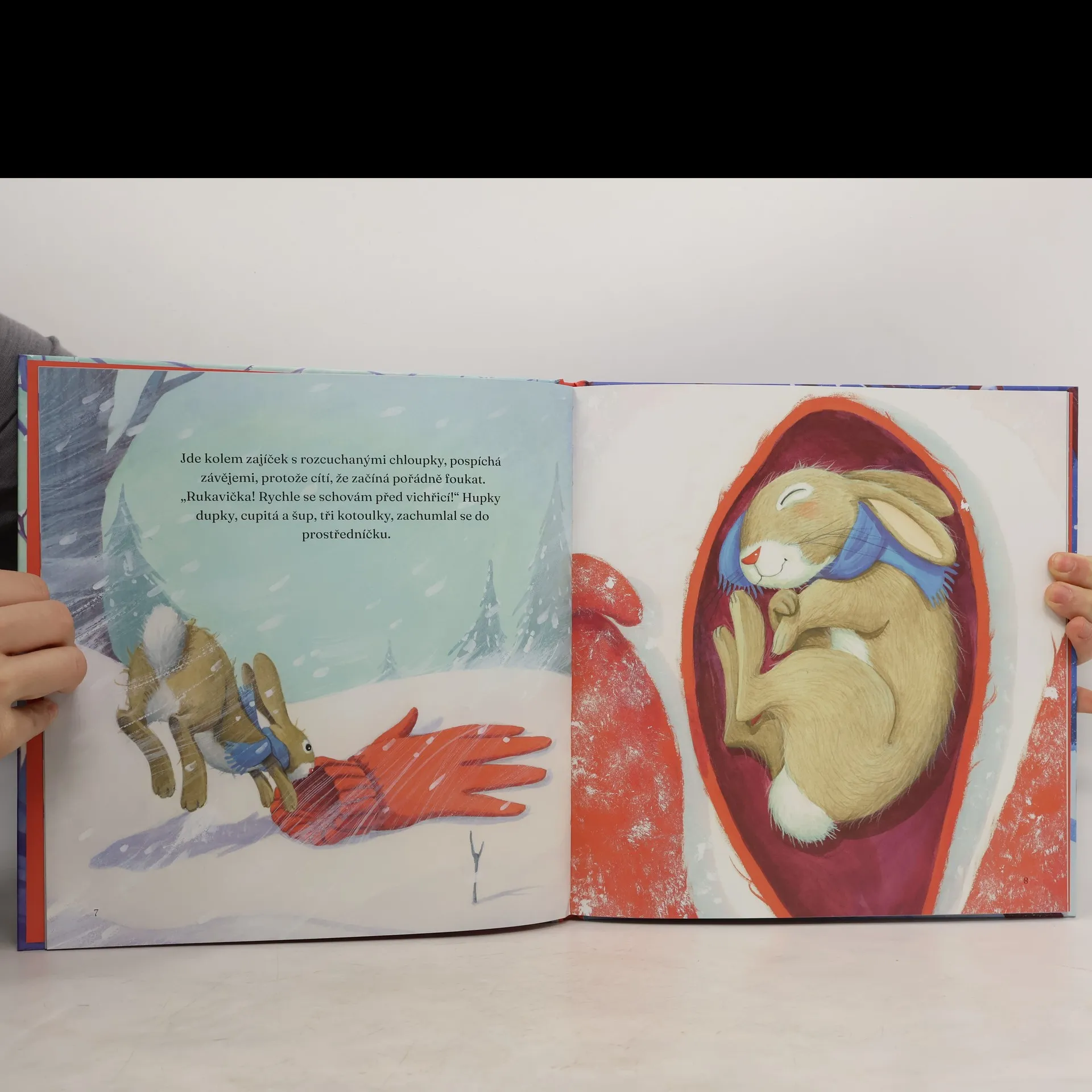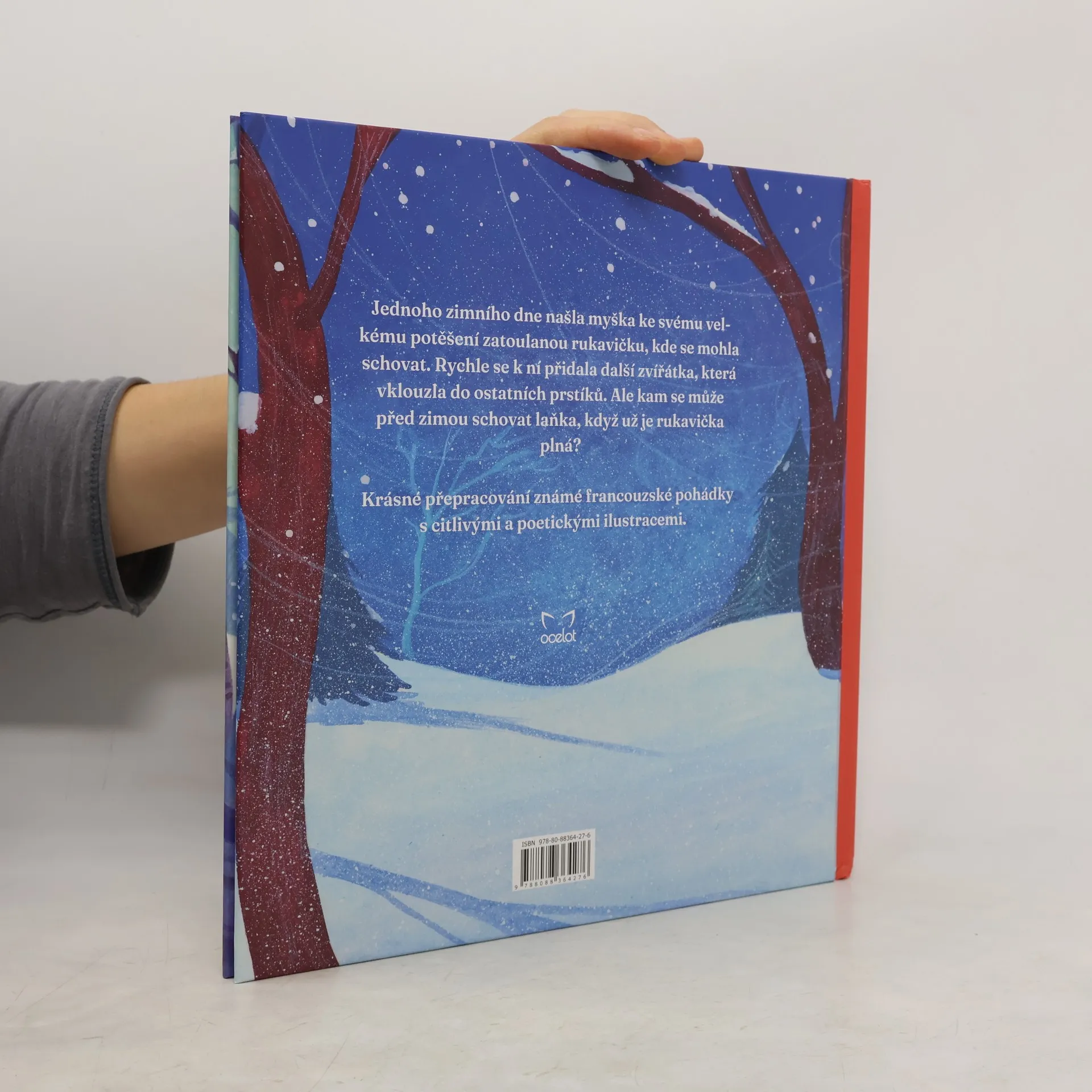 Jednoho zimního dne našla myška ke svému velkému potěšení zatoulanou rukavičku, kde se mohla schovat. Rychle se k ní přidala další zvířátka, která vklouzla do ostatních prstíků. Ale kam se může před zimou schovat laňka, když už je rukavička plná?Krásné přepracování známé francouzské pohádky s citlivými a poetickými ilustracemi.