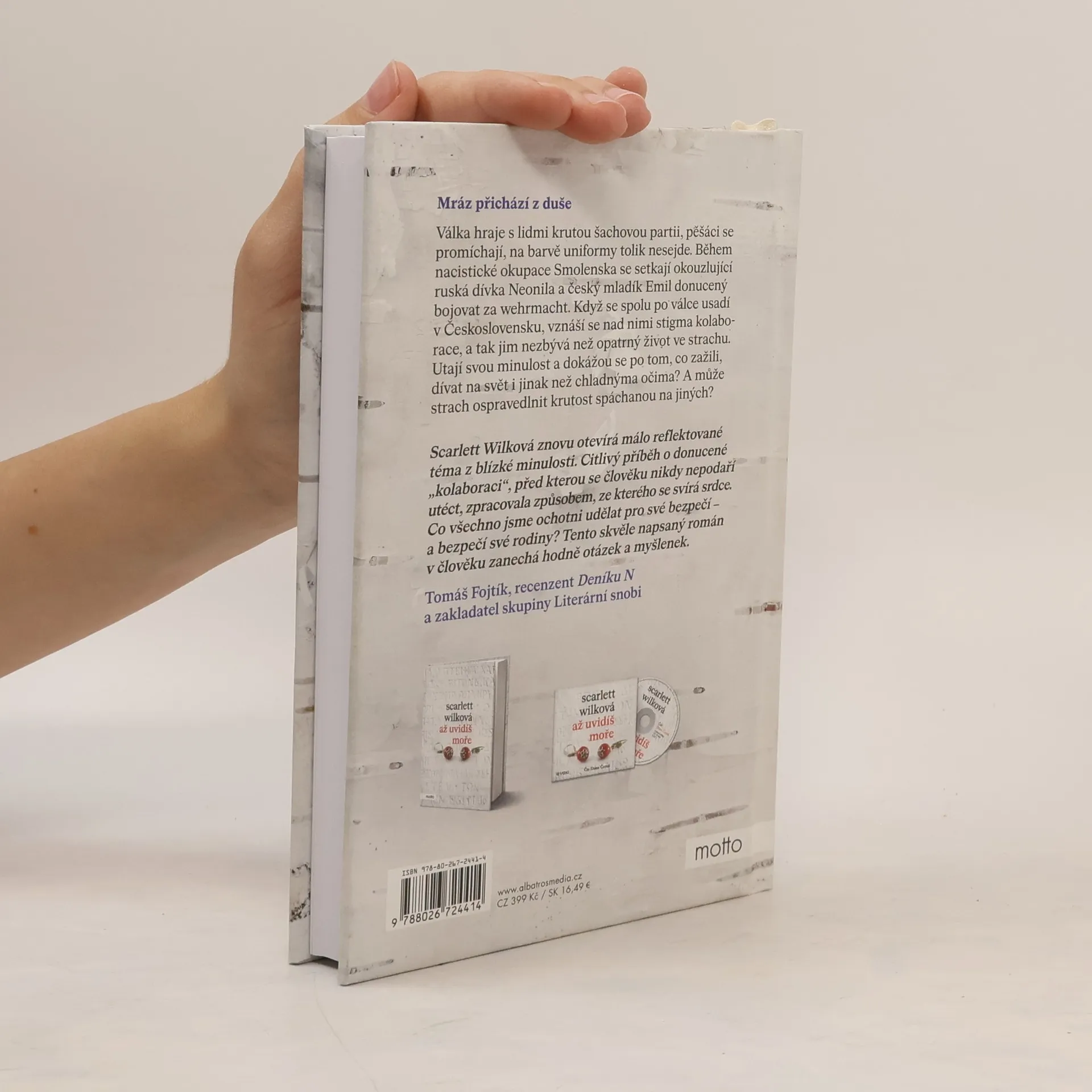 Mráz přichází z duše. Historický román od autorky bestselleru Až uvidíš moře.Válka hraje s lidmi krutou šachovou partii, pěšáci se promíchají, na barvě uniformy tolik nesejde. Během nacistické okupace Smolenska se setkají okouzlující ruská dívka Neonila a český mladík Emil donucený bojovat za wehrmacht. Když se spolu po válce usadí v Československu, vznáší se nad nimi stigma kolaborace, a tak jim nezbývá než opatrný život ve strachu. Utají svou minulost a dokážou se po tom, co zažili, dívat na svět i jinak než chladnýma očima? A může strach ospravedlnit krutost spáchanou na jiných? Scarlett Wilková přichází s druhým románem, v němž opět otevírá citlivé a málo reflektované téma novodobých dějin.