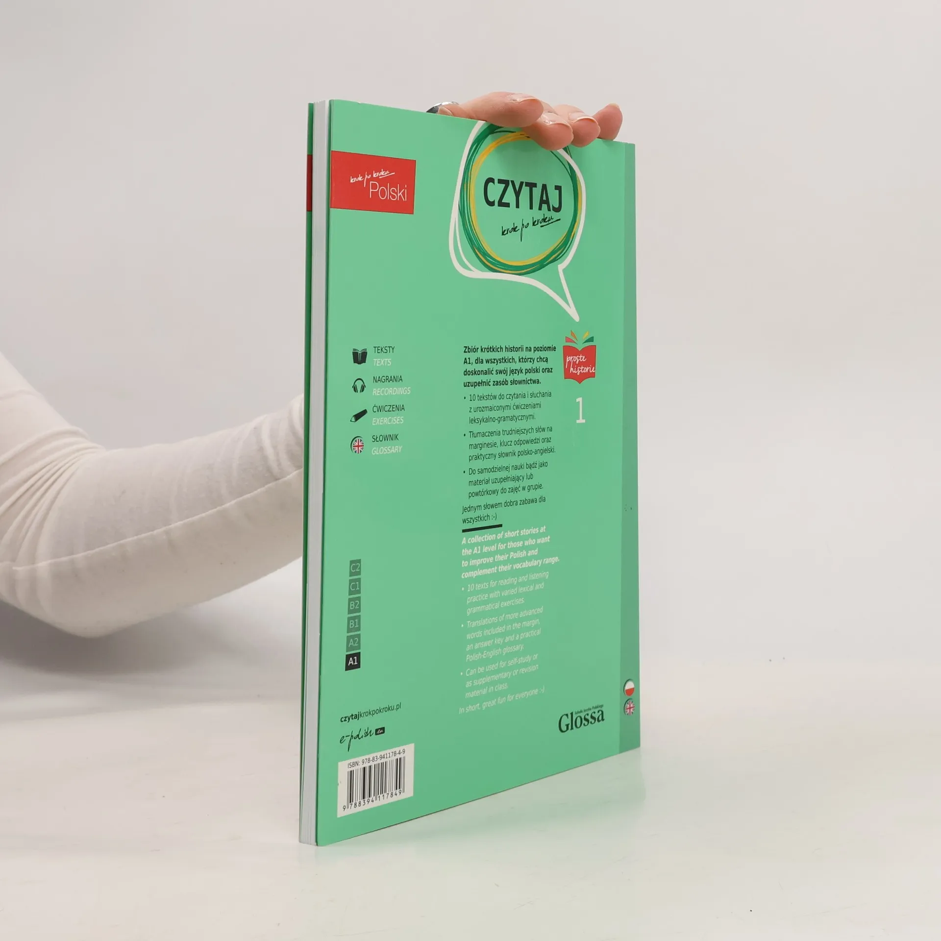 Zbiór krótkich historii na poziomie A1, dla wszystkich, którzy chcą doskonalić swój język polski oraz uzupełnic zasób słownictwa.• 10 tekstów do czytania i słuchania z urozmaiconymi ćwiczenia leksykalno-gramatyczymi.• Tlumaczenia trudniejszych słów na marginesie, klucz odpowiedzi oraz praktyczny słownik polsko-angielski.• Do samodzielnej nauki bądź jako materiał uzupełniający lub powtórkowy do zajęć w grupie. Jednym słowem dobra zabawa dla wzsystkich. :-)-----A collection of short stories at the A1 level for those who want to improve their Polish and complement their vocabulary range.• 10 texts for reading and listening practice with varied lexical and grammatical exercises. • Translations of more advanced words included in the margin, an answer keys and a practical Polish-English glossary.• Can be used for self-study or as supplementary or revision material in class.In short, great fun for everyone!