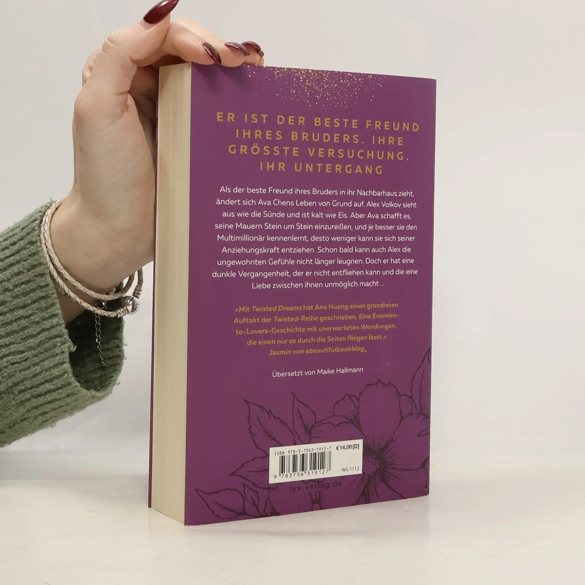 Er ist der beste Freund ihres Bruders. Ihre größte Versuchung. Ihr Untergang. Als der beste Freund ihres Bruders in ihr Nachbarhaus zieht, ändert sich Ava Chens Leben von Grund auf. Alex Volkov sieht aus wie die Sünde und ist kalt wie Eis. Aber Ava schafft es, seine Mauern Stein um Stein einzureißen, und je besser sie den Multimillionär kennenlernt, desto weniger kann sie sich seiner Anziehungskraft entziehen. Schon bald kann auch Alex die ungewohnten Gefühle nicht länger leugnen. Doch er hat eine dunkle Vergangenheit, der er nicht entfliehen kann und die eine Liebe zwischen ihnen unmöglich macht ... „Mit TWISTED DREAMS hat Ana Huang einen grandiosen Auftakt der Twisted-Reihe geschrieben. Eine Enemies-to-Lovers-Geschichte mit unerwarteten Wendungen, die einen nur so durch die Seiten fliegen lässt.“ JASMIN von ABEAUTIFULBOOKBLOG_ Auftakt der prickelnden und romantischen TWISTED -Reihe von Bestseller-Autorin Ana Huang