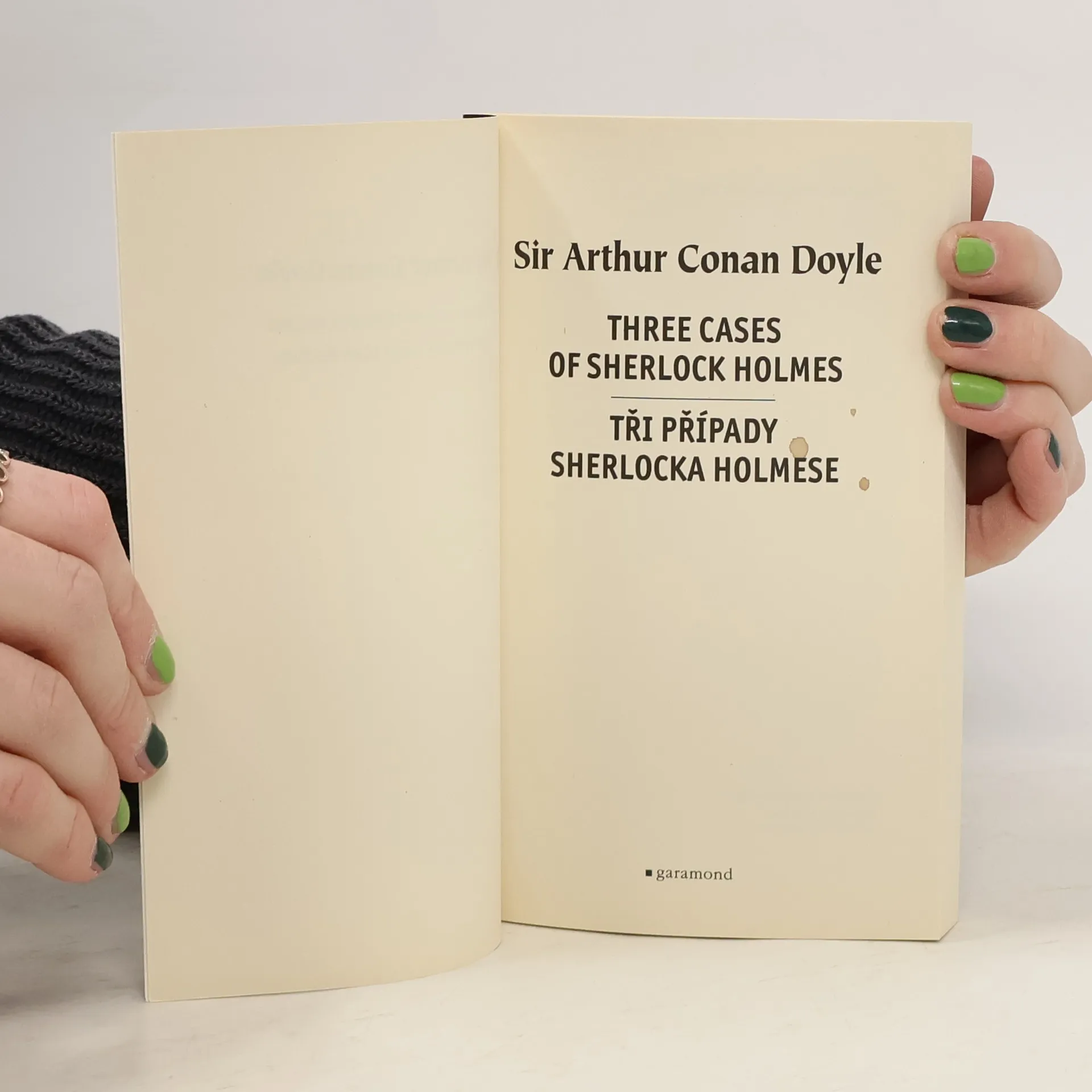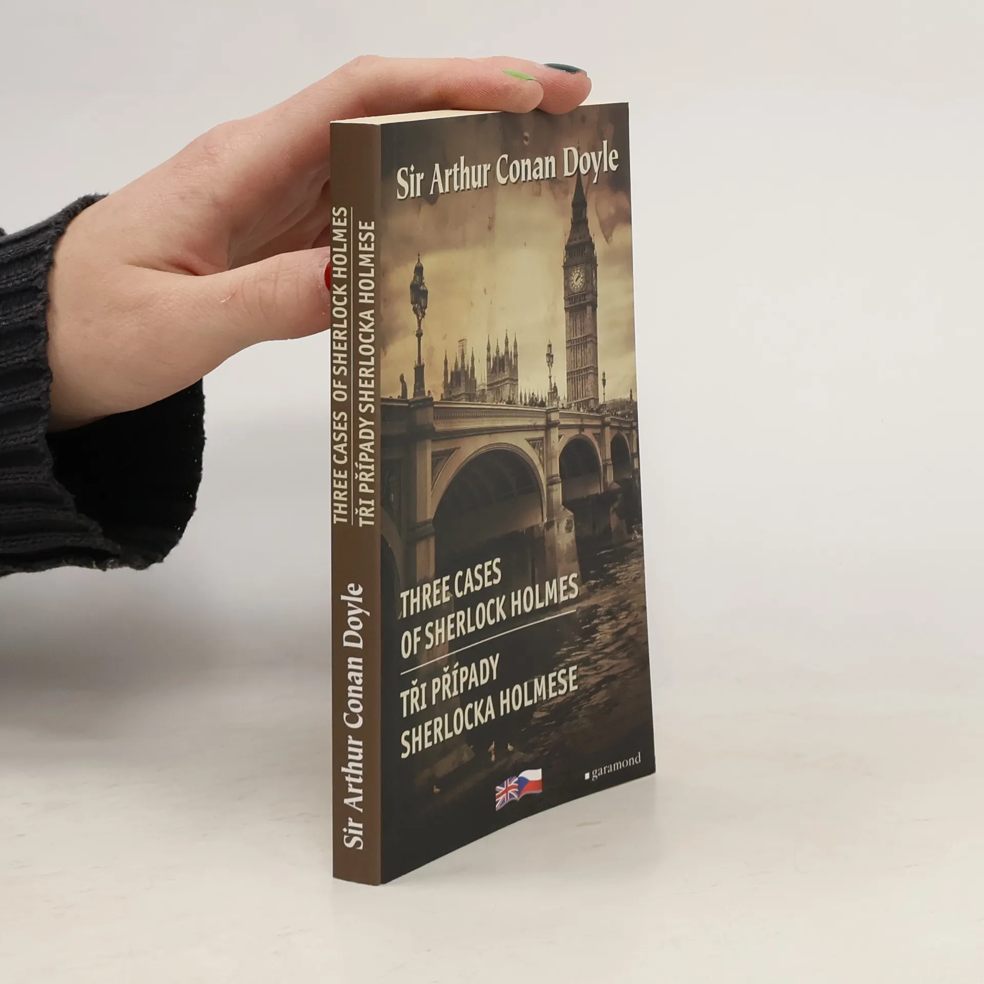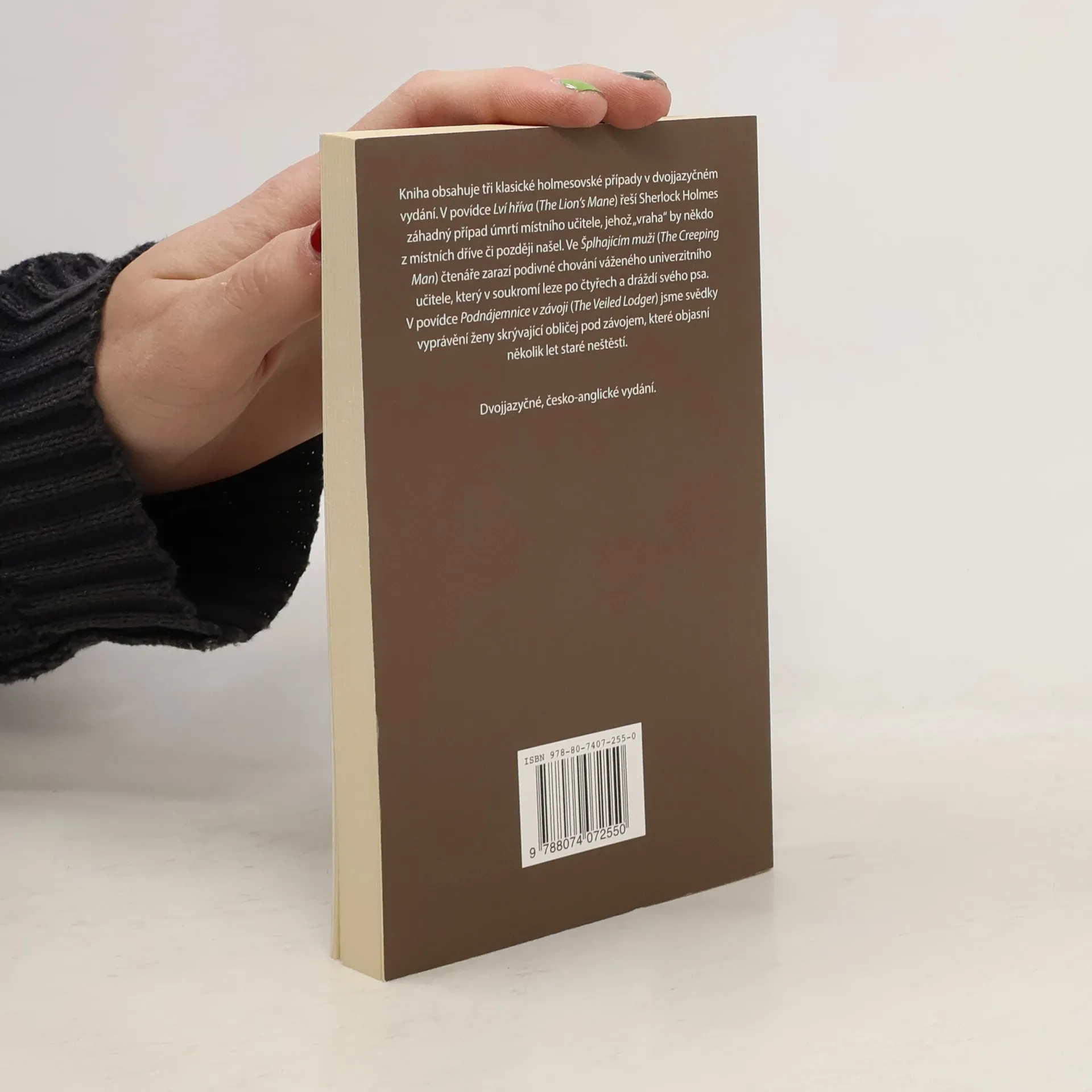 Brilantní vydání tří povídek Arthura Conana Doyla s Sherlockem Holmesem v "hlavní roli" - Šplhající muž, Lví hříva a Podnájemnice v závoji. Na levé stránce text v originálu - na stránce pravé český překlad. Opatřeno komentářem.