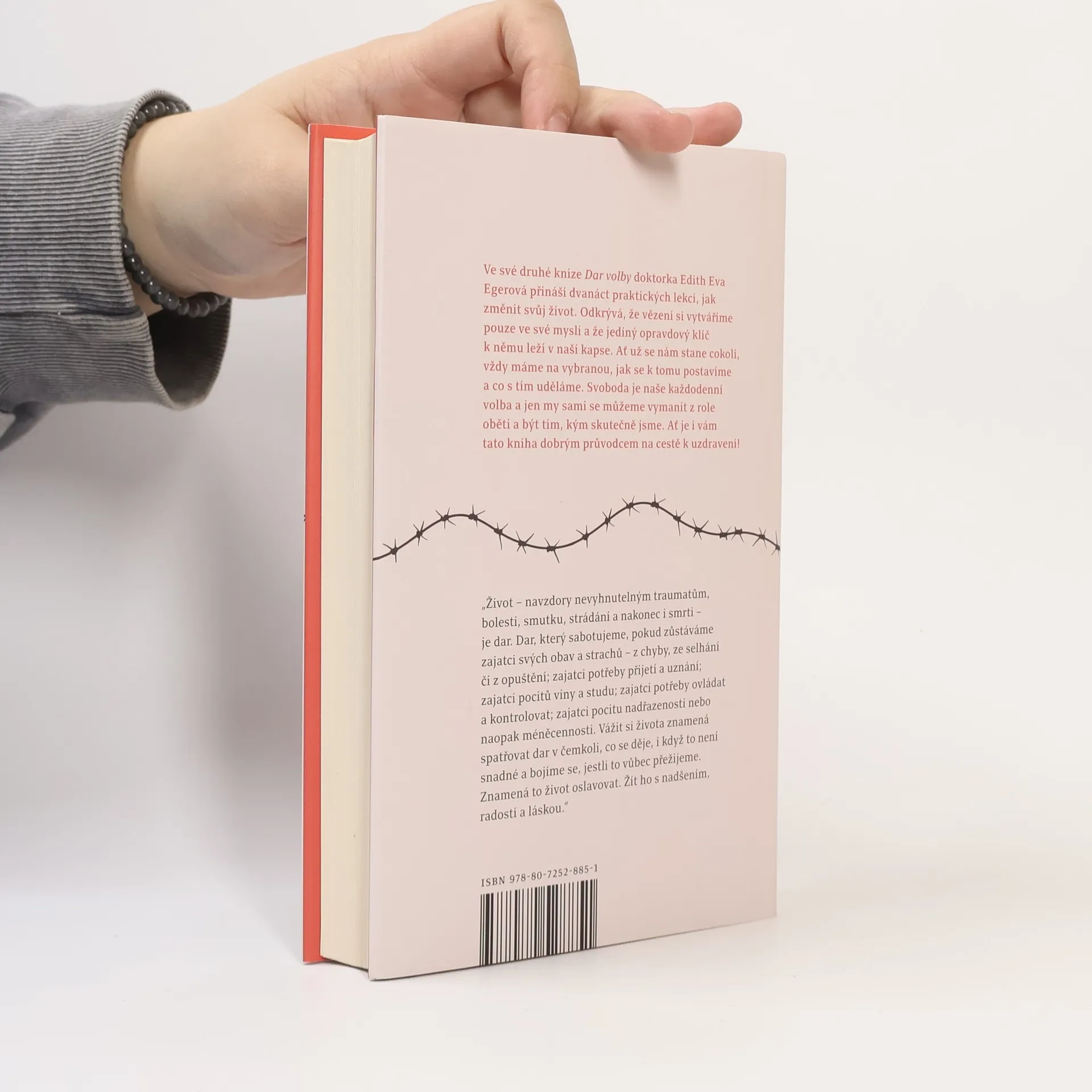 Ve své druhé knize Dar volby doktorka Edith Eva Egerová přináší dvanáct praktických lekcí, jak změnit svůj život. Odkrývá, že vězení si vytváříme pouze v naší mysli a že jediný opravdový klíč k němu leží v naší kapse. Ať už se nám stane cokoli, vždy máme na vybranou, jak se k tomu postavíme a co s tím uděláme. Svoboda je naše každodenní volba a jen my sami se můžeme vymanit z role oběti a být tím, kým skutečně jsme. Ať je i vám tato kniha dobrým průvodcem na cestě k uzdravení! „Život – navzdory nevyhnutelným traumatům, bolesti, smutku, strádání a nakonec i smrti – je dar. Dar, který sabotujeme, pokud zůstáváme zajatci svých obav a strachů – z chyby, ze selhání či z opuštění. Vážit si života znamená spatřovat dar v čemkoli, co se děje, i když to není snadné a bojíme se, jestli to vůbec přežijeme. Znamená to život oslavovat. Žít ho s nadšením, radostí a láskou.“