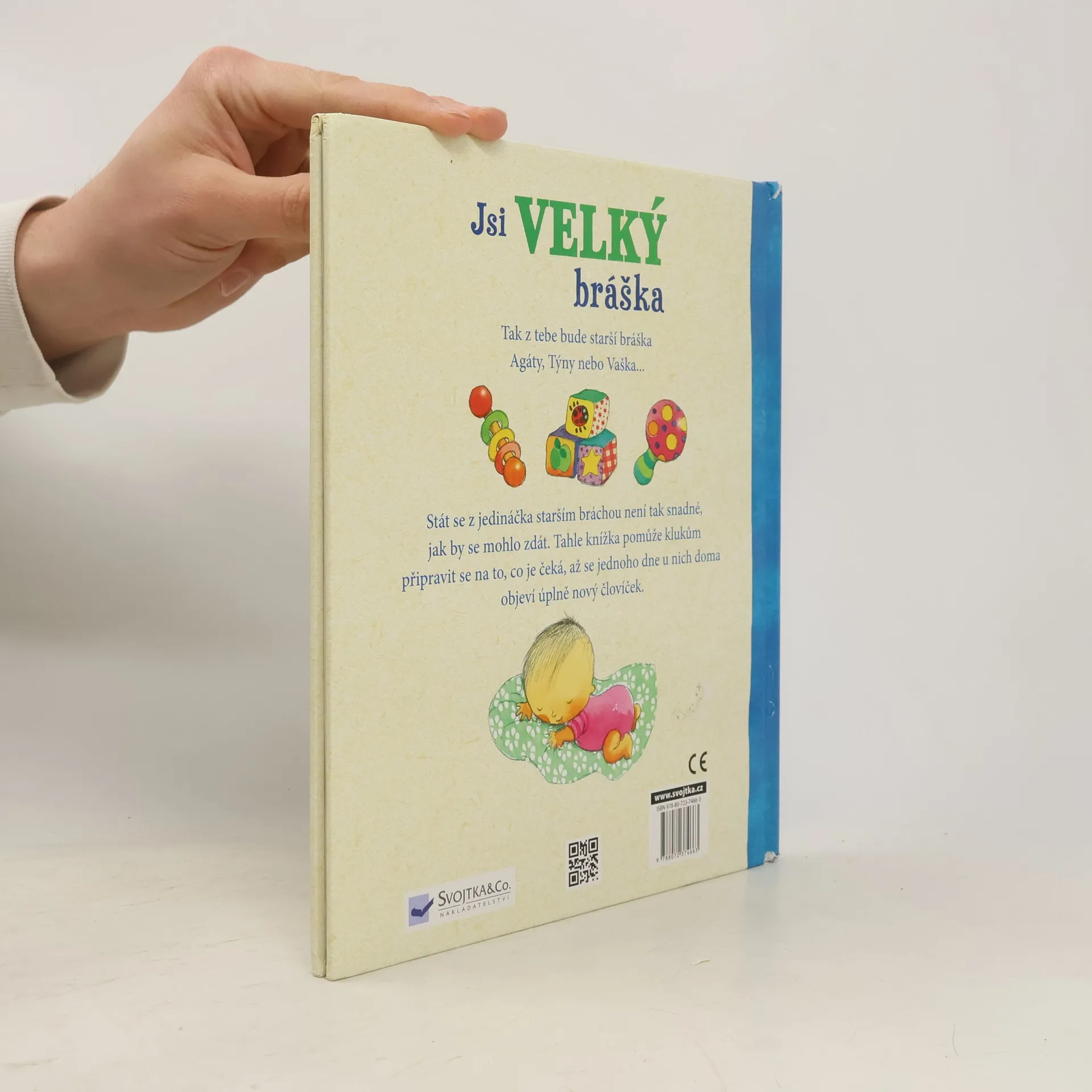 Tak z tebe bude starší bráška Agáty, Týny nebo Vaška ... Mít mladšího brášku nebo sestřičku je radost – ale taky velká změna. Spousta věcí bude najednou jinak. A stát se z jedináčka starším bráchou není tak snadné, jak by se mohlo zdát. Tahle knížka s celostránkovými barevnými ilustracemi a jednoduchým textem pomůže klukům připravit se na to, co je čeká, až se jednoho dne u nich doma objeví úplně nový človíček. Protože být „velkým“ bráchou je moc príma.
