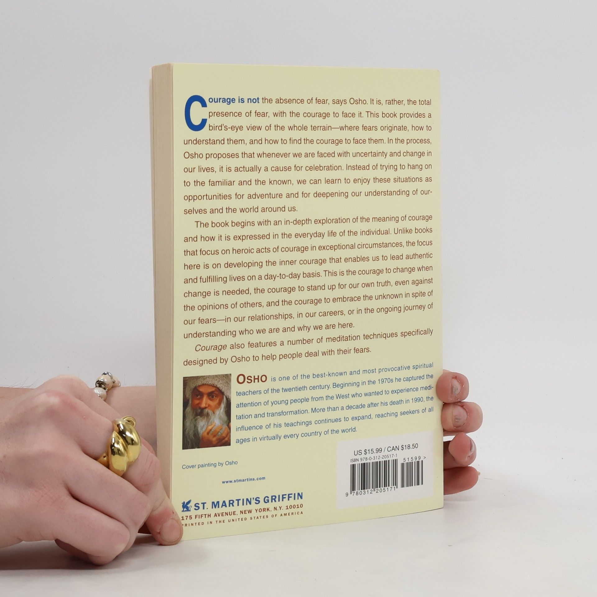 Courage is not the absence of fear, says Osho. It is, rather, the total presence of fear, with the courage to face it. This book provides a bird's-eye view of the whole terrain-where fears originate, how to understand them, and how to find the courage to face them. In the process, Osho proposes that whenever we are faced with uncertainty and change in our lives, it is actually a cause for celebration. Instead of trying to hang on to the familiar and the known, we can learn to enjoy these situations as opportunities for adventure and for deepening our understanding of ourselves and the world around us. The book begins with an in-depth exploration of the meaning of courage and how it is expressed in the everyday life of the individual. Unlike books that focus on heroic acts of courage in exceptional circumstances, the focus here is on developing the inner courage that enables us to lead authentic and fulfilling lives on a day-to-day basis. This is the courage to change when change is needed, the courage to stand up for our own truth, even against the opinions of others, and the courage to embrace the unknown in spite of our fears-in our relationships, in our careers, or in the ongoing journey of understanding who we are and why we are here. Courage also features a number of meditation techniques specifically designed by Osho to help people deal with their fears.