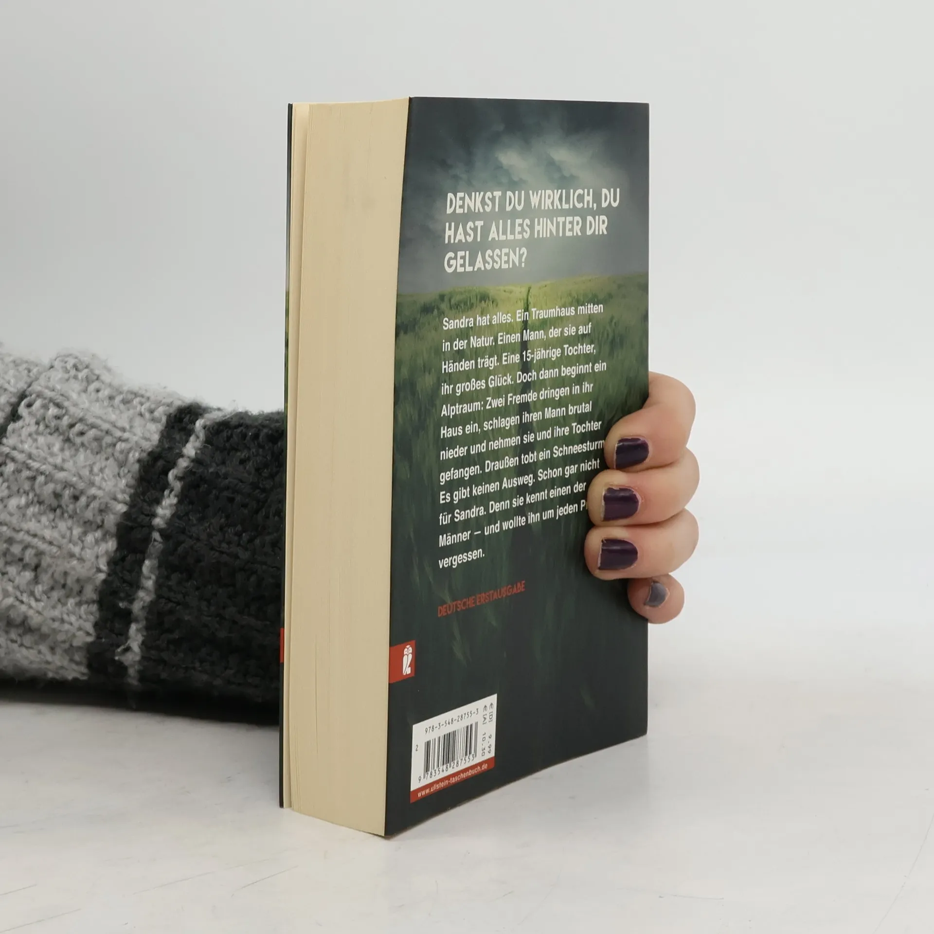 Sandra hat alles. Ein Traumhaus mitten in der Natur. Einen Mann, der sie auf Händen trägt. Eine 15-jährige Tochter, ihr großes Glück. Bis aus dem Traum ein Alptraum wird: Zwei Fremde dringen in ihr Haus ein, schlagen ihren Mann brutal nieder und nehmen Mutter und Tochter als Geiseln. Draußen tobt ein Schneesturm. Es gibt keinen Ausweg. Schon gar nicht für Sandra. Denn sie kennt einen der Männer — und wollte ihn um jeden Preis vergessen.