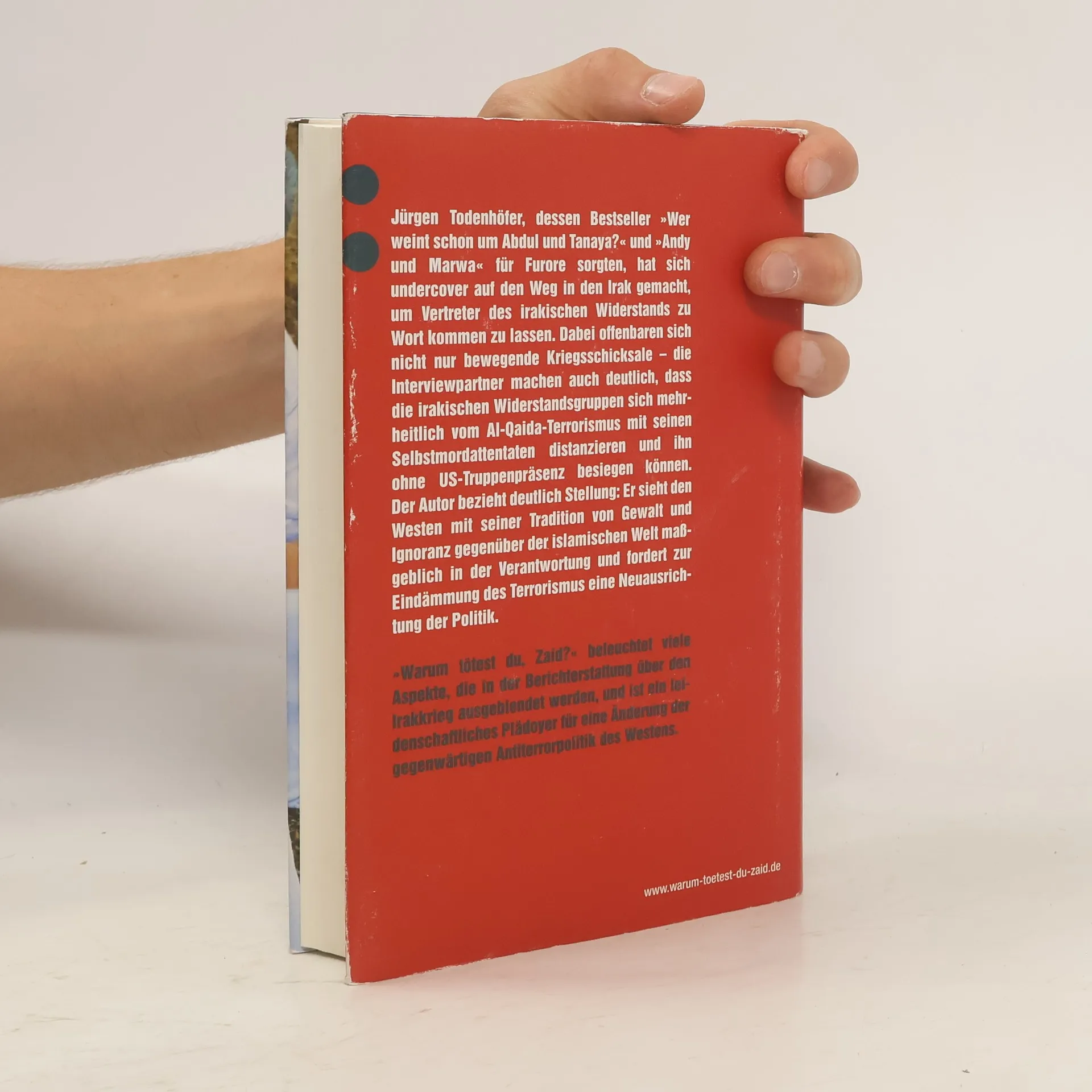 Authentisch und engagiert: Jürgen Todenhöfer hat unter gefährlichsten Bedingungen vor Ort recherchiert In der Geschichte des jungen Widerstandskämpfers Zaid spiegelt sich die Geschichte eines Volkes wider, das für seine Freiheit und Würde kämpft. Jürgen Todenhöfer begegnet Menschen, die gegen die Besatzungstruppen und den Terror von Al-Qaida kämpfen. Er trifft den 22-jährigen Zaid, der in diesem Krieg fast alles verloren hat, und der sich wie die Mehrheit der irakischen Bevölkerung dem Widerstand angeschlossen hat, und erzählt seine erschütternde Geschichte. Das Buch tritt an gegen die milliardenschwere Propaganda-Maschinerie der US-Administration, die ein verzerrtes Bild der Lage im Irak zeichnet. Jürgen Todenhöfer will der Wahrheit eine Chance geben – und der Gerechtigkeit für ein gequältes Volk.