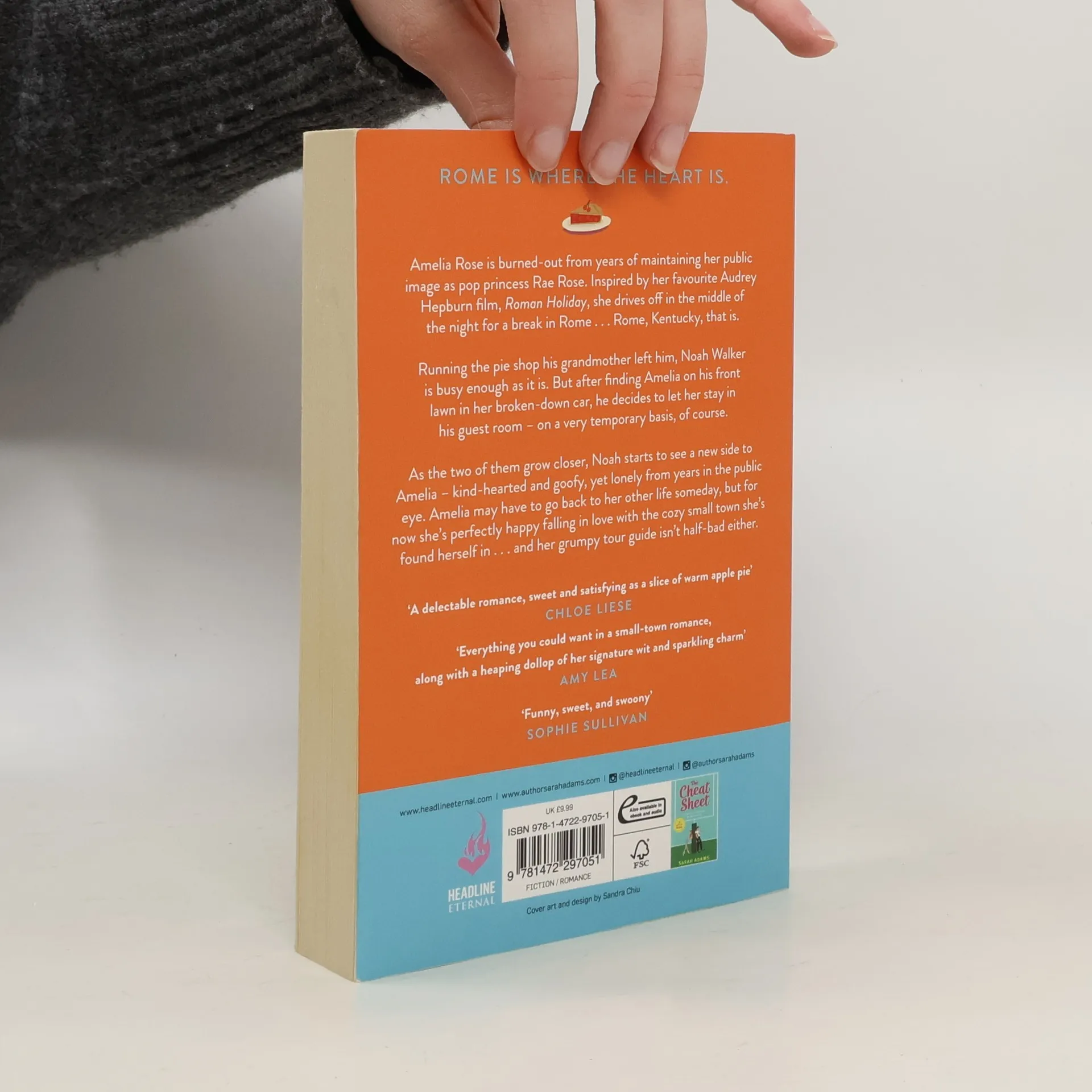 Amelia Rose, known as Rae Rose to her adoring fans, is burned-out from years of maintaining her "princess of pop" image. Inspired by her favorite Audrey Hepburn film, Roman Holiday, she drives off in the middle of the night for a break in Rome . . . Rome, Kentucky, that is. When Noah Walker finds Amelia on hisfront lawn in her broken-down car, he makes it clear he doesn't have the time or patience for celebrity problems. He's too busy running the pie shop his grandmother left him and reminding his nosy but lovable neighbors to mind their own damn business. Despite his better judgment, he lets her stay in his guest room—but only until her car is fixed—then she's on her own. Then Noah starts to see a different side of Rae Rose—she's Amelia: kindhearted and goofy, yet lonely from years in the public eye. He can't help but get close to her. Soon she'll have to return to her glamorous life on tour, but until then, Noah will show Amelia all the charming small-town experiences she's been missing, and she'll help him open his heart to more. Amelia can't resist falling for the cozy town and her grumpy tour guide, but even Audrey had to leave Rome eventually.
