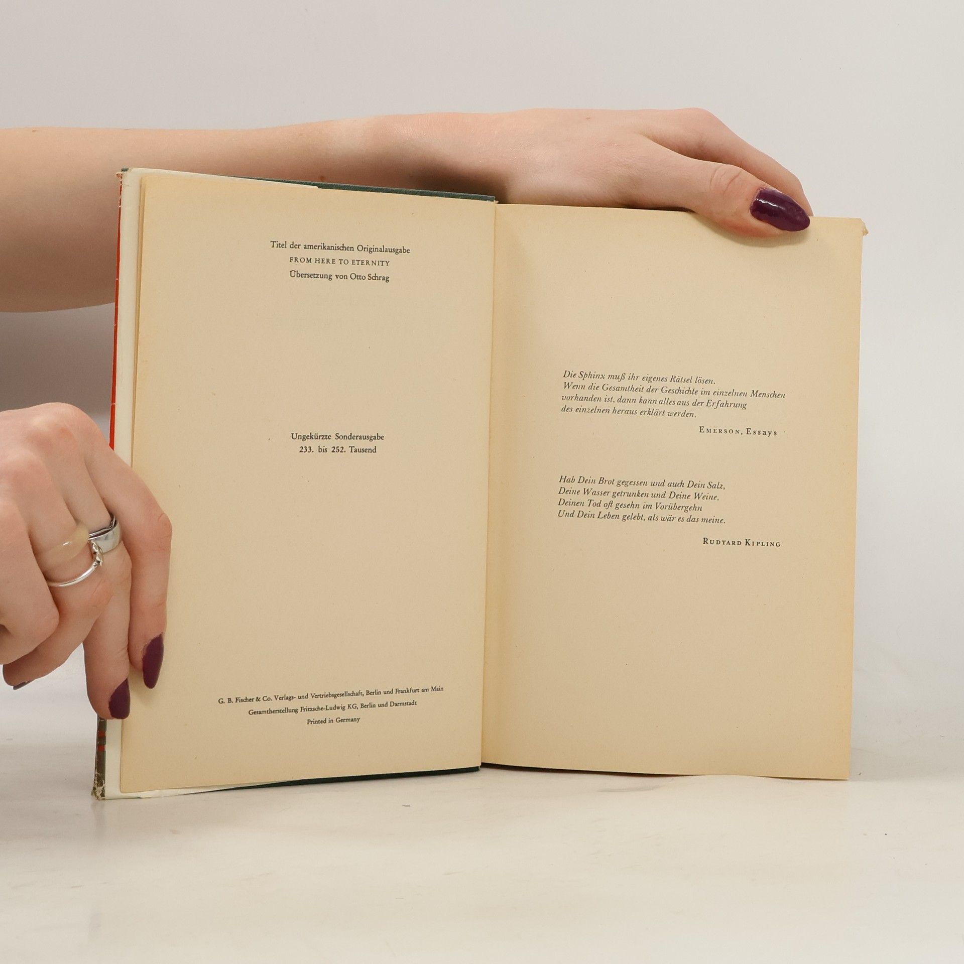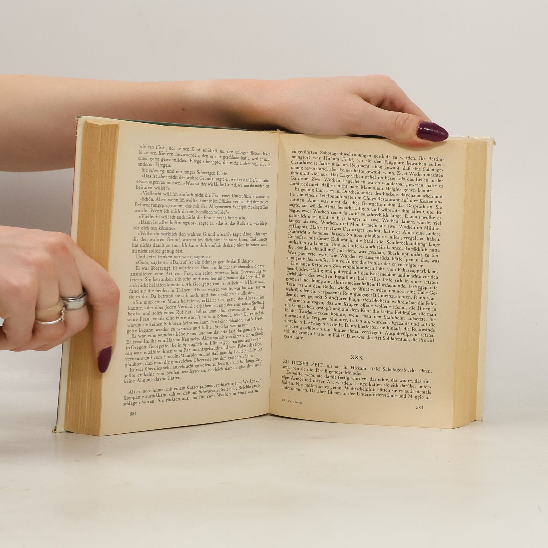 Verdammt in alle Ewigkeit erzählt die Geschichte des Soldaten Prewitt, der kurz vor dem japanischen Angriff auf Pearl Harbour nach Hawaii kommt und brutal geschunden wird, weil er glaubt, auch als Soldat noch gewisse Rechte zu haben, nach einer Messerstecherei verwundet bei einer Freundin untertaucht und schließlich, mehr aus Versehen, erschossen wird. Mit der Veröffentlichung seines Romanerstlings 'From Here to Eternity' entfesselte James Jones 1951 heftige Diskussionen in Amerika. Dort, wie auch in Deutschland, wo der S. Fischer Verlag das Buch noch im selben Jahr herausbrachte, übertraf die schonungslos realistische Schilderung des Soldatenlebens bei weitem das Maß, das der Leser in jenen Jahren vertrug. Aber die erzählerischen Qualitäten von 'Verdammt in alle Ewigkeit' verhalfen dem Buch zu seinem Siegeszug um die Welt, auf dem ihm wenig später der Film folgte. Heute zählt der Roman zu den Klassikern der amerikanischen Nachkriegsliteratur.