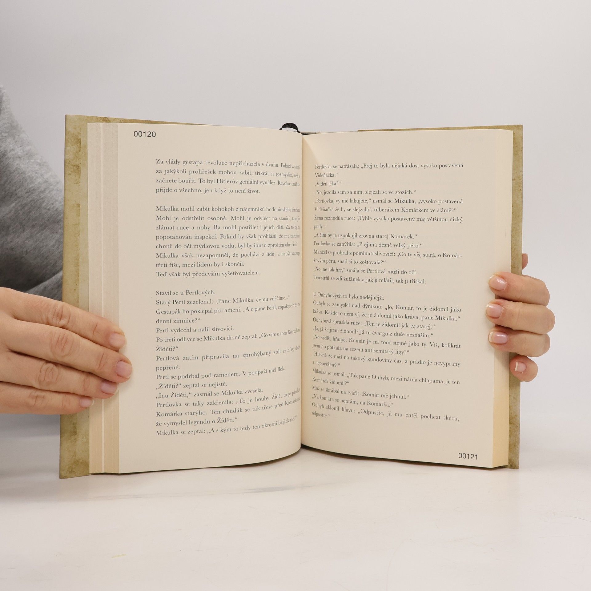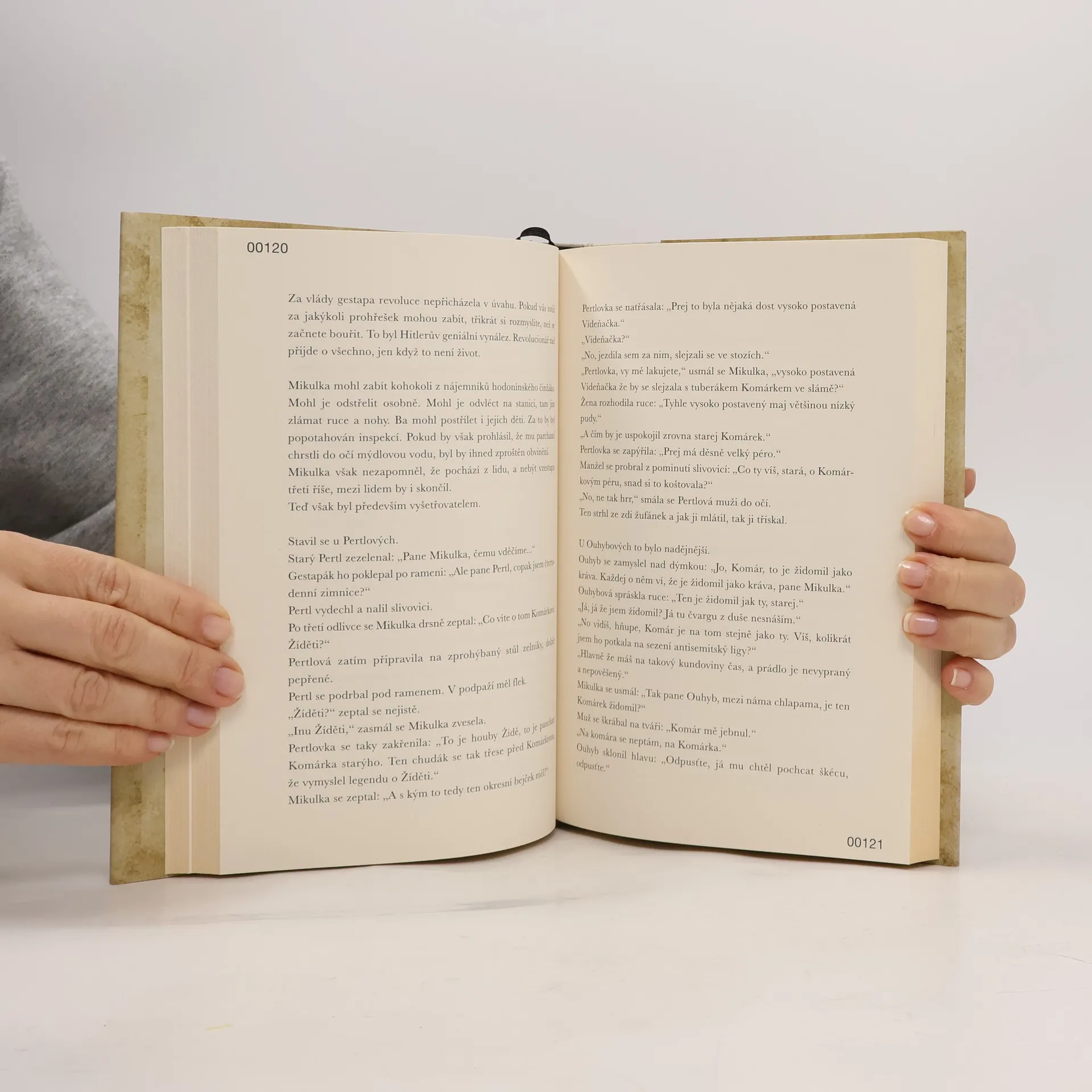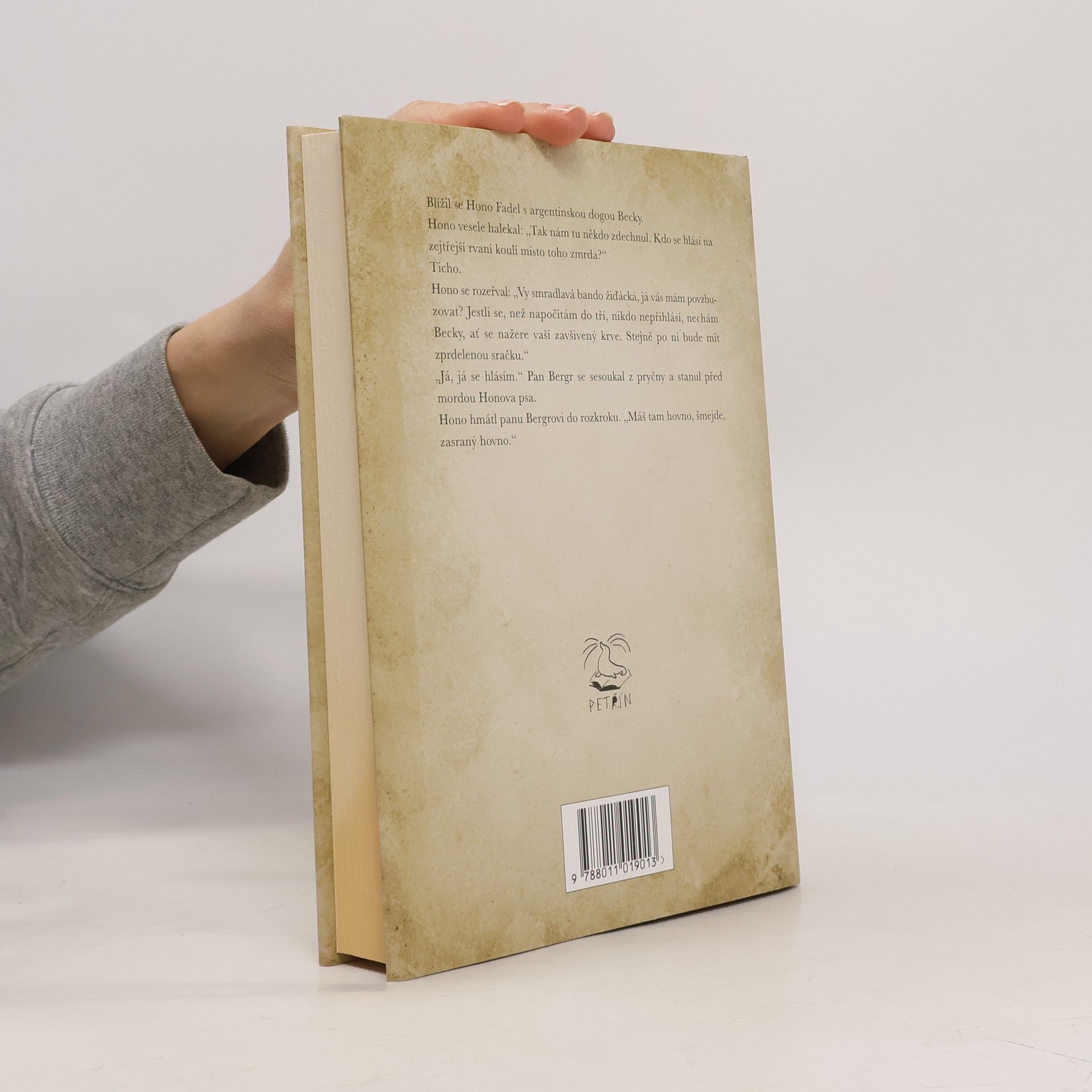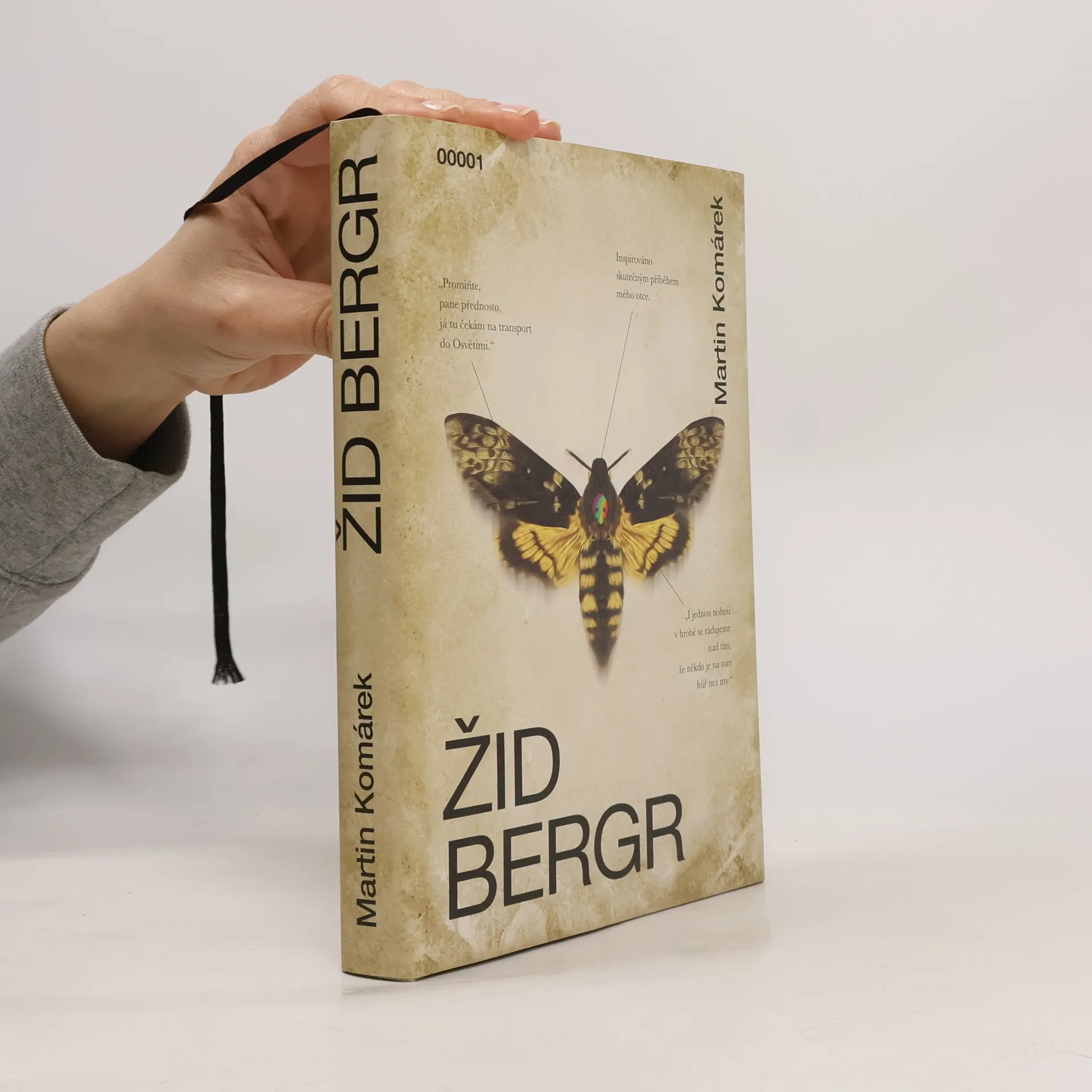 Blížil se Hono Fadel s argentinskou dogou Becky. Hono vesele halekal: "Tak nám tu někdo zdechnul. Kdo se hlásí na zítřejší rvaní koulí místo toho zmrda?"Ticho. Hono se rozeřval: "Vy smradlavá bando žiďácká, já vás mám povzbuzovat?Jestli se, než napočítám do tří, nikdo nepřihlásí, nechám Becky, ať se nažere vaší zavšivený krve. Stejně po ní bude mít zprdelenou sračku." " Já, já se hlásím." Pan Bergr se sesoukal z pryčny a stanul před mordou Honova psa. Hono hmátl panu Bergovi do rozkroku. "Máš tam hovno, šmejde, zasraný hovno."Novinář Martin Komárek je v Mladé frontě Dnes a nyní v Deníku autorem výrazných komentářů. Proslul i jako satirik i fejetonista. O románu Kniha Bergr říká: „Je tam veškerá úzkost, kterou jsem pociťoval od dětství. Je tam úzkost židovského národa. Stažené hrdlo mého otce. Teprve, když jsem to psal a prožíval, pochopil jsem tátu. A musel jsem celou tu hrůzu vyjádřit obrazem dosud nevídaným.“