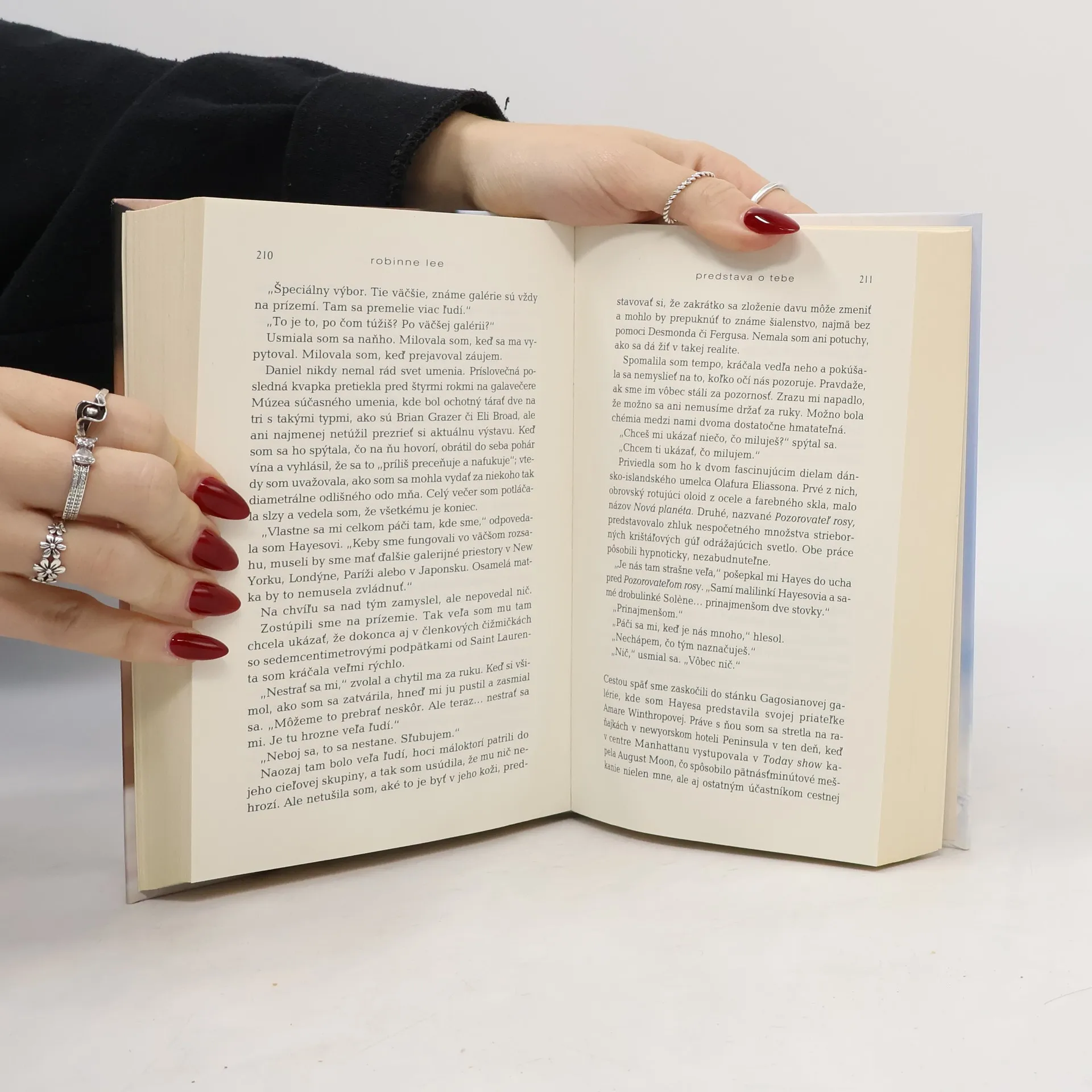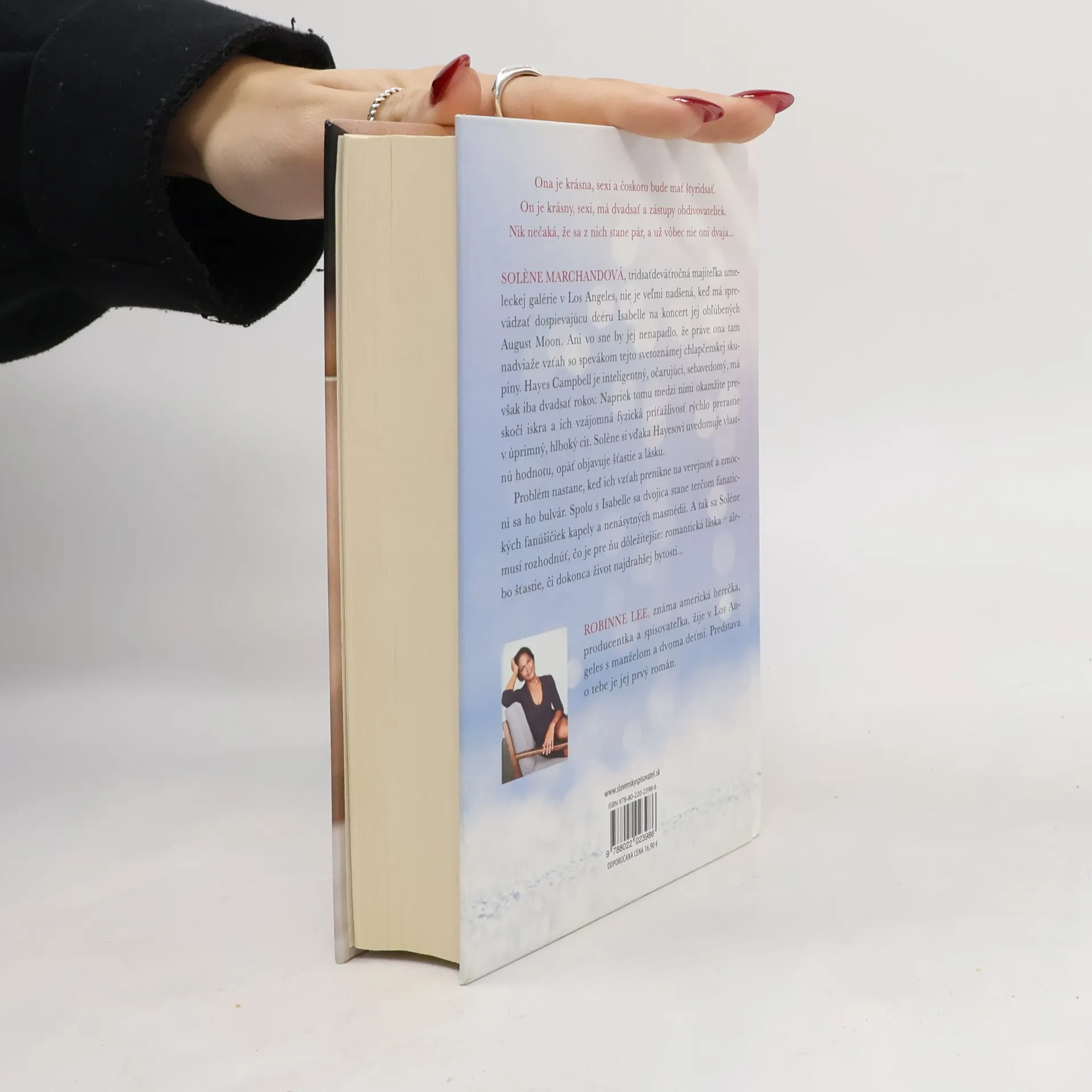 Ona je krásna, sexy a čoskoro bude mať štyridsať. On je krásny, sexy, má dvadsať a zástupy obdivovateliek. Nik nečaká, že sa z nich stane pár, a už vôbec nie oni dvaja... Solene Marchandová, tridsaťdeväťročná majiteľka umeleckej galérie v Los Angeles, nie je veľmi nadšená, keď má sprevádzať dospievajúcu dcéru Isabelle na koncert jej obľúbených August Moon. Ani vo sne by jej nenapadlo, že práve ona tam nadviaže vzťah so spevákom tejto svetoznámej chlapčenskej skupiny. Hayes Campbell je inteligentný, očarujúci, sebavedomý, má však iba dvadsať rokov. Napriek tomu medzi nimi okamžite preskočí iskra a ich vzájomná fyzická príťažlivosť rýchlo prerastie v úprimný, hlboký cit. Solene si vďaka Hayesovi uvedomuje vlastnú hodnotu, opäť objavuje šťastie a lásku. Problém nastane, keď ich vzťah prenikne na verejnosť a zmocní sa ho bulvár. Spolu s Isabelle sa dvojica stane terčom fanatických fanúšičiek kapely a nenásytných masmédií. A tak sa Solene musí rozhodnúť, čo je pre ňu dôležitejšie: romantická láska - alebo šťastie, či dokonca život najdrahšej bytosti... Robinne Lee, známa americká herečka, producentka a spisovateľka, žije v Los Angeles s manželom a dvoma deťmi. Predstava o tebe je jej prvý román.