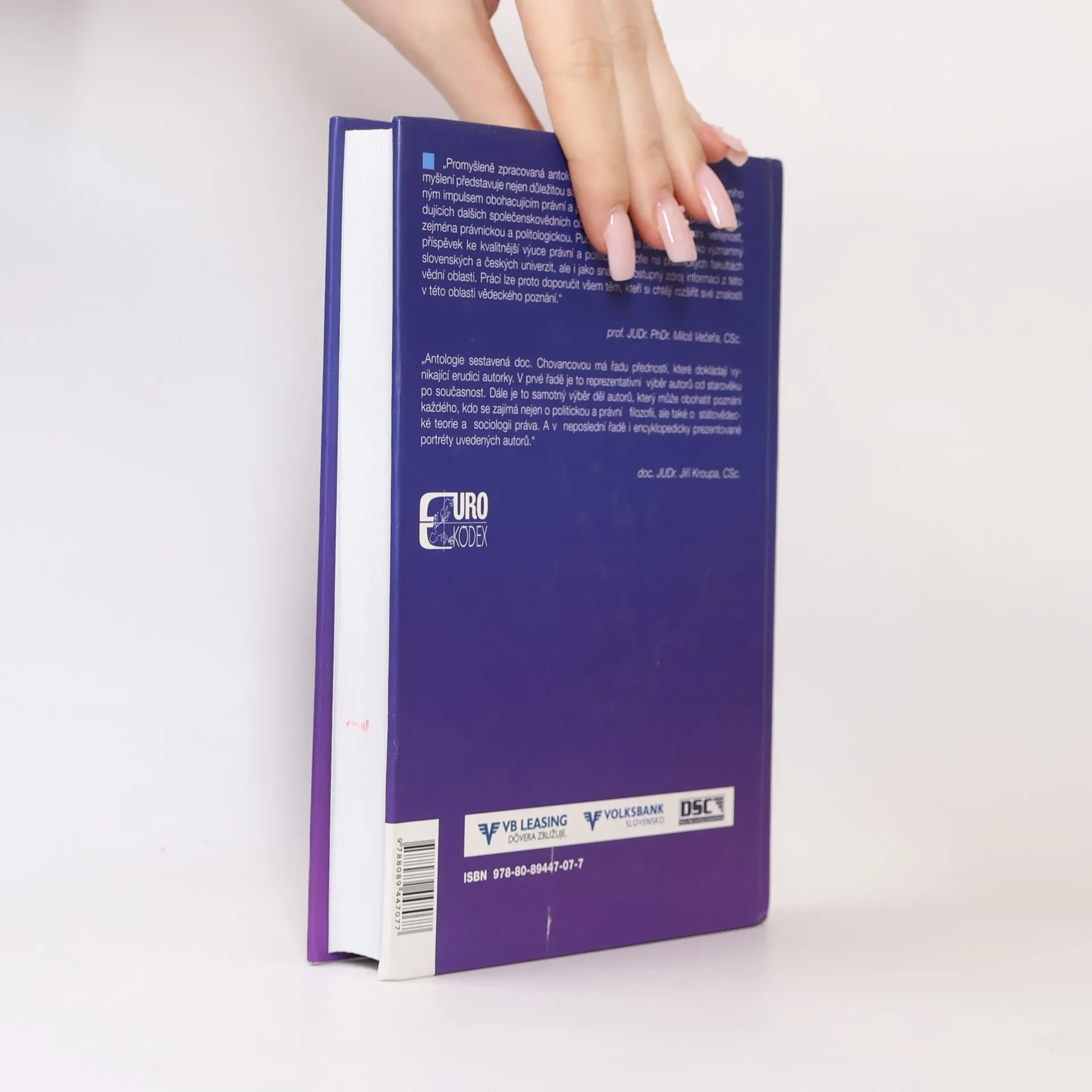 Kniha sa opiera o originály alebo preklady diel významných právnych teoretikov, právnych filozofov, prostredníctvom ktorých máme priblížený vývoj politického a právneho myslenia od najstarších čias až po súčasnosť. Vyberáme z obsahu: Platón: Ústava Aristoteles: Politika, Etika Nikomachova Augustinus Aurelius: O štáte božom Tomáš Akvinský: Suma teológie Niccolo Macchiavelli: Úvahy o vláde Thomas Hobbes: Leviathan neboli o podstatě, řízení a moci církevního a občanskeého John Locke: Dvě pojednávní o vládě Charles de Secondat Montesquieu: Duch zákonov David Hume: O práve a politike Jean Jacques Rousseau: O společenské smlouvě neboli o zásadách štátního práva Rudolf von Ihering: Boj za právo Hans Kelsen: Všeobecná teorie norem H.L.A. Hart: Pojem práva John Rawls: Teorie spravedlnosti, Politický liberalizmus Ronald Dworkin: Když sa práva berou vážně a ďalšie