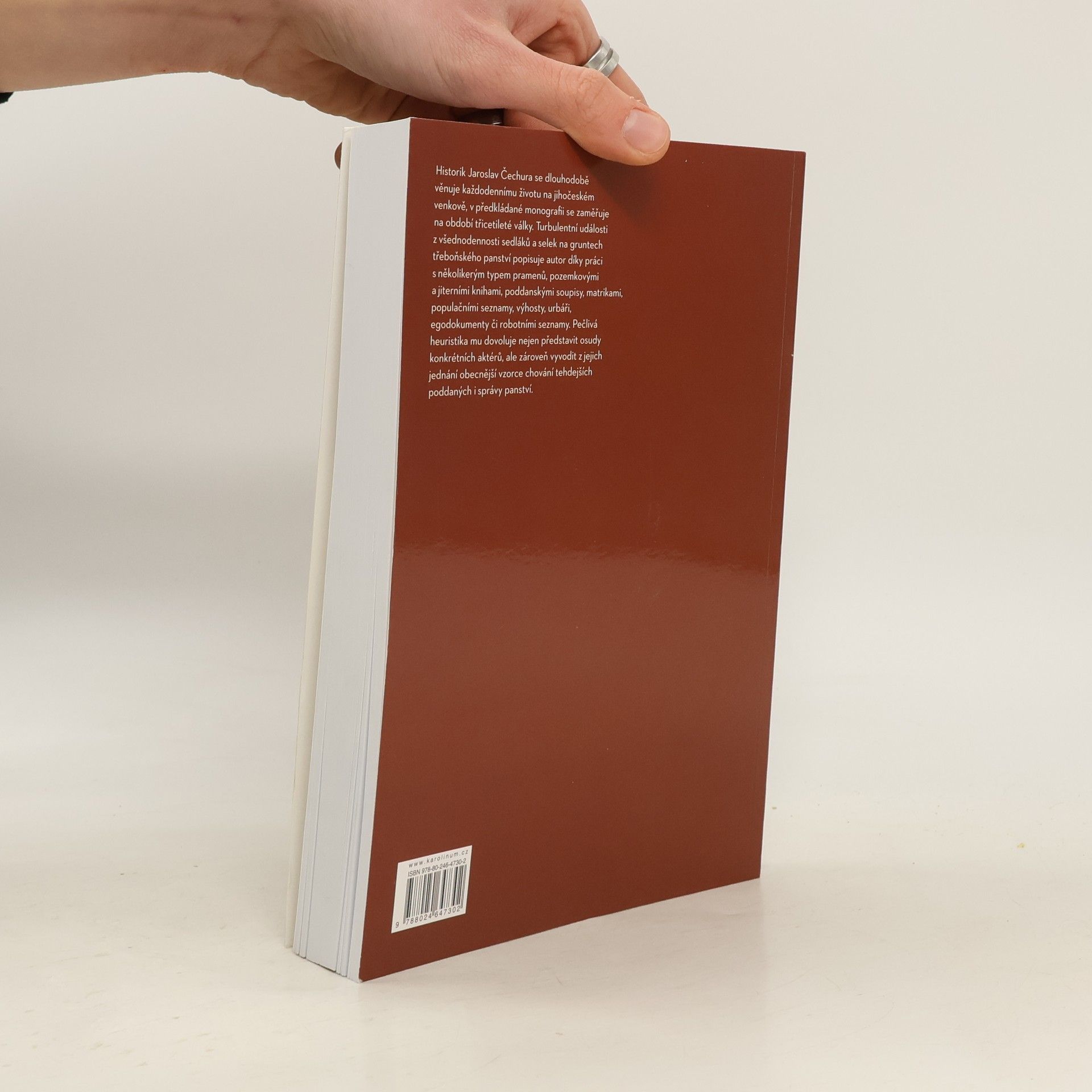 Historik Jaroslav Čechura se dlouhodobě věnuje každodennímu životu na jihočeském venkově, v předkládané monografii se zaměřuje na období třicetileté války. Turbulentní události z všednodennosti sedláků a selek na gruntech třeboňského panství popisuje autor díky práci s několikerým typem pramenů, pozemkovými a jiterními knihami, poddanskými soupisy, matrikami, populačními seznamy, výhosty, urbáři, egodokumenty či robotními seznamy. Pečlivá heuristika mu dovoluje nejen představit osudy konkrétních aktérů, ale zároveň vyvodit z jejich jednání obecnější vzorce chování tehdejších poddaných i správy panství.