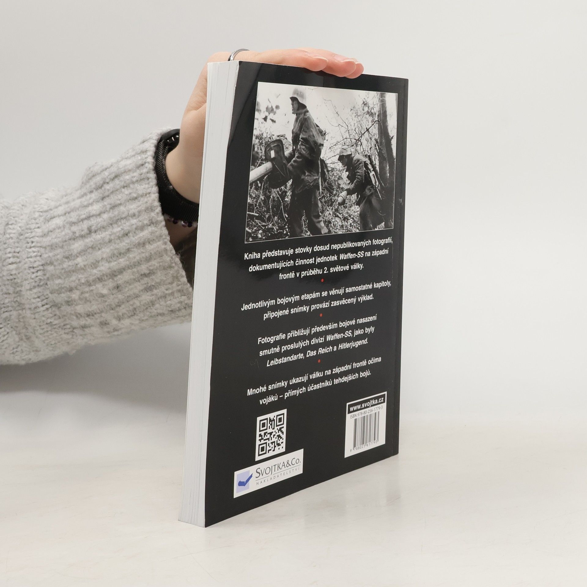 Kniha představuje stovky dosud nepublikovaných fotografií, dokumentujících činnost jednotek Waffen-SS na západní frontě v průběhu 2. světové války. Jednotlivým bojovým etapám se věnují samostatné kapitoly, připojené snímky provází zasvěcený výklad. Fotografie přibližují především bojové nasazení smutně proslulých divizí Waffen-SS, jako byly Laibstandarte, Das Reich a Hitlerjugend. Mnohé snímky ukazují válku na západní frontě očima vojáků - přímých účastníků tehdejších bojů.