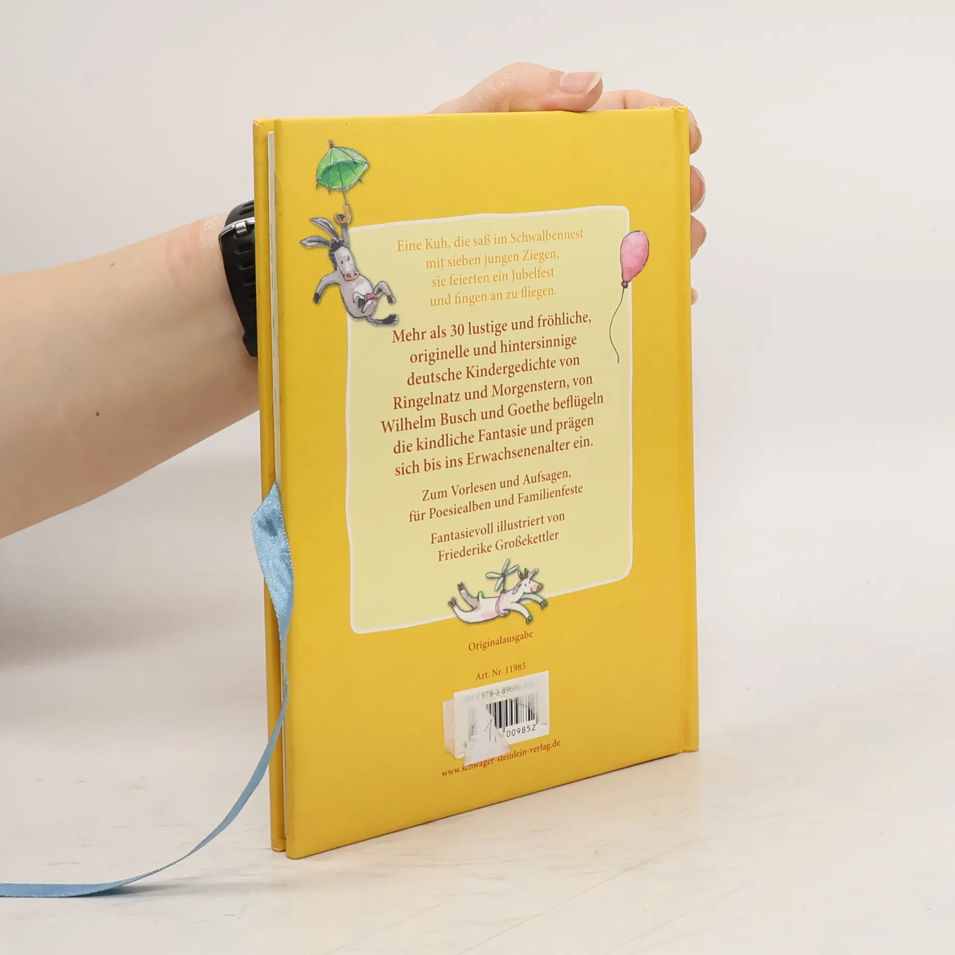 Mehr als 30 lustige und fröhliche, originelle und hintersinnige deutsche Kindergedichte von Ringelnatz und Morgenstern, von Wilhelm Busch und Goethe beflügeln die kindliche Fantasie und prägen sich bis ins Erwachsenenalter ein. Zum Vorlesen und Aufsagen, für Poesiealben und Familienfeste. Fantasievoll illustriert von Friederike Großekettler.