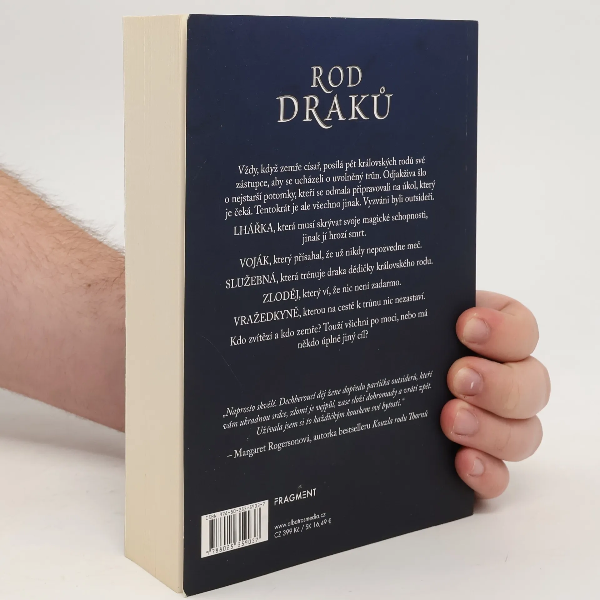 Dechberoucí fantasy, kterou žene dopředu partička outsiderů, kteří vám ukradnou srdce, zlomí je vejpůl, zase složí dohromady a vrátí zpět. Vždy, když zemře císař, posílá pět královských rodů své zástupce, aby se ucházeli o uvolněný trůn. Odjakživa šlo o nejstarší potomky, kteří se odmala připravovali na úkol, který je čeká. Tentokrát je ale všechno jinak. Vyzváni byli outsideři: lhářka, voják, služebná, zloděj a vražedkyně. Kdo získá trůn a kdo zemře? Touží všichni vyhrát, nebo má někdo úplně jiný cíl? Vždy, když zemře císař, posílá pět královských rodů své zástupce, aby se ucházeli o uvolněný trůn. Odjakživa šlo o nejstarší potomky, kteří se odmala připravovali na úkol, který je čeká. Tentokrát je ale všechno jinak. Vyzváni byli outsideři. LHÁŘKA, která musí skrývat svoje magické schopnosti, jinak jí hrozí smrt. VOJÁK, který přísahal, že už nikdy nepozvedne meč. SLUŽEBNÁ, která trénuje draka dědičky královského rodu. ZLODĚJ, který ví, že nic není zadarmo. VRAŽEDKYNĚ, kterou na cestě k trůnu nic nezastaví. Kdo zvítězí a kdo zemře? Touží všichni po moci, nebo má někdo úplně jiný cíl? „Naprosto skvělé. Dechberoucí děj žene dopředu partička outsiderů, kteří vám ukradnou srdce, zlomí je vejpůl, zase složí dohromady a vrátí zpět. Užívala jsem si to každičkým kouskem své bytosti.“ – Margaret Rogersonová, autorka bestselleru Kouzla rodu Thornů