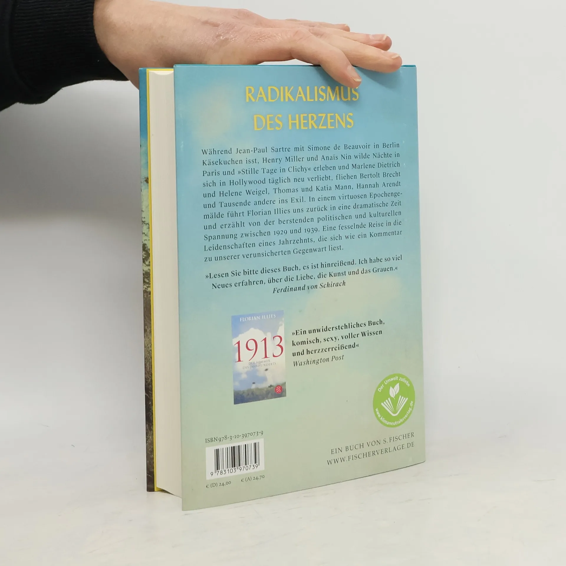 Lesen Sie bitte dieses Buch, es ist hinreißend. Ich habe so viel Neues erfahren, über die Liebe, die Kunst und das Grauen. In einem virtuosen Epochengemälde erweckt Florian Illies die dreißiger Jahre, ein Jahrzehnt voller politischer und kultureller Spannungen. Während Jean-Paul Sartre und Simone de Beauvoir in Berlin Käsekuchen genießen, erleben Henry Miller und Anaïs Nin wilde Nächte in Paris. F. Scott Fitzgerald und Ernest Hemingway stürzen sich in leidenschaftliche Affären in New York, während Bertolt Brecht und Helene Weigel ins Exil fliehen. Diese Zeit markiert den Aufstieg der Nationalsozialisten in Deutschland, die Bücher verbrennen und Gewalt gegen Juden ausüben. 1933 endet die Ära der „Goldenen Zwanziger“ abrupt. Illies führt uns zurück zu einer singulären politischen Katastrophe und erzählt von den größten Liebespaaren der Kulturgeschichte. In Berlin, Paris, im Tessin und an der Riviera stemmen sich die Helden der Zeit gegen den drohenden Untergang. Diese mitreißend erzählte Reise in die Vergangenheit wirkt wie ein Kommentar zu unserer unsicheren Gegenwart: Liebe in Zeiten des Hasses. Eine Gesellschaftsgeschichte in Zweier- und Dreierbeziehungen. Indiskret, schonungslos und aufregend. Desillusionierend und anrührend zugleich. Ein Bravourstück.