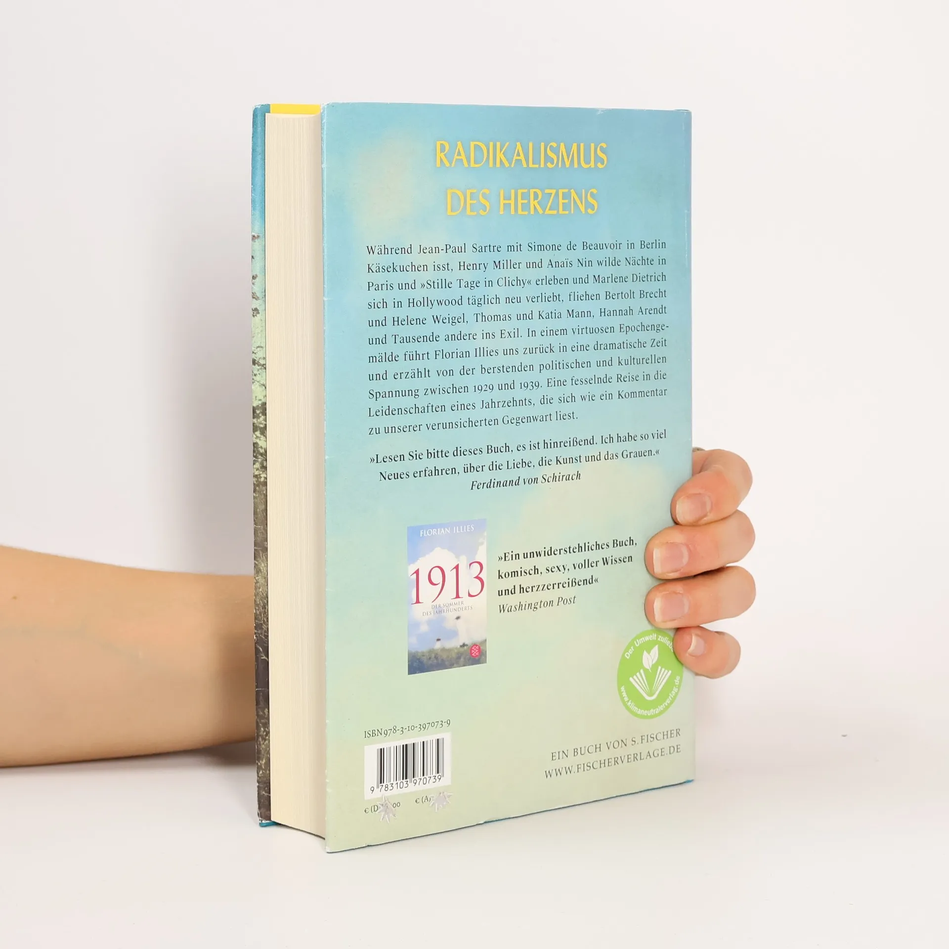 Lesen Sie bitte dieses Buch, es ist hinreißend. Ich habe so viel Neues erfahren, über die Liebe, die Kunst und das Grauen. In einem virtuosen Epochengemälde erweckt Florian Illies die dreißiger Jahre, ein Jahrzehnt voller politischer und kultureller Spannungen. Während Jean-Paul Sartre und Simone de Beauvoir in Berlin Käsekuchen genießen, erleben Henry Miller und Anaïs Nin wilde Nächte in Paris. F. Scott Fitzgerald und Ernest Hemingway stürzen sich in leidenschaftliche Affären in New York, während Bertolt Brecht und Helene Weigel ins Exil fliehen. Diese Zeit markiert den Aufstieg der Nationalsozialisten in Deutschland, die Bücher verbrennen und Gewalt gegen Juden ausüben. 1933 endet die Ära der „Goldenen Zwanziger“ abrupt. Illies führt uns zurück zu einer singulären politischen Katastrophe und erzählt von den größten Liebespaaren der Kulturgeschichte. In Berlin, Paris, im Tessin und an der Riviera stemmen sich die Helden der Zeit gegen den drohenden Untergang. Diese mitreißend erzählte Reise in die Vergangenheit wirkt wie ein Kommentar zu unserer unsicheren Gegenwart: Liebe in Zeiten des Hasses. Eine Gesellschaftsgeschichte in Zweier- und Dreierbeziehungen. Indiskret, schonungslos und aufregend. Desillusionierend und anrührend zugleich. Ein Bravourstück.
